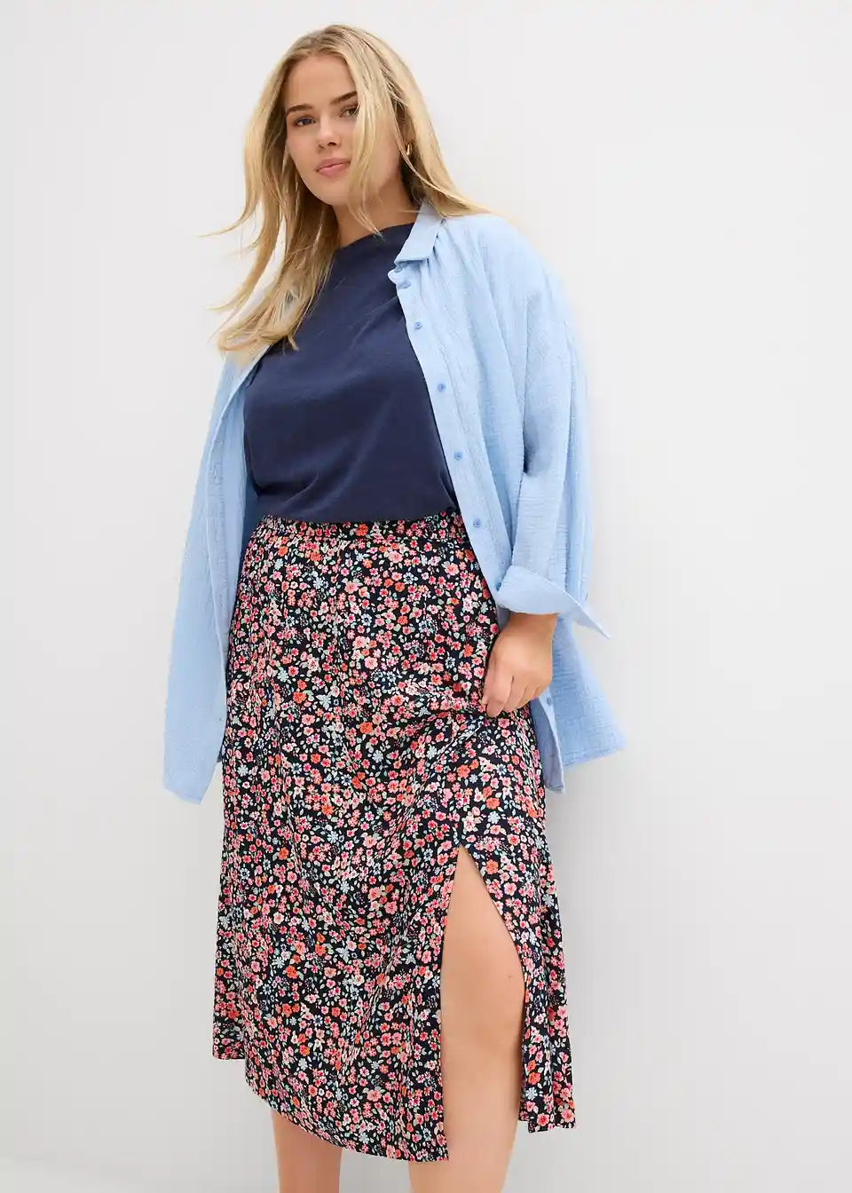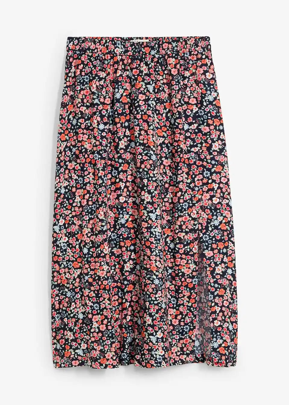 Midirock aus Viskose mit seitlichem Schlitz und elastischem Komfortbund.