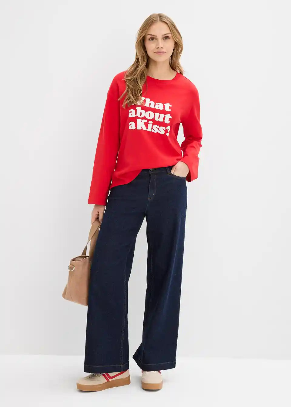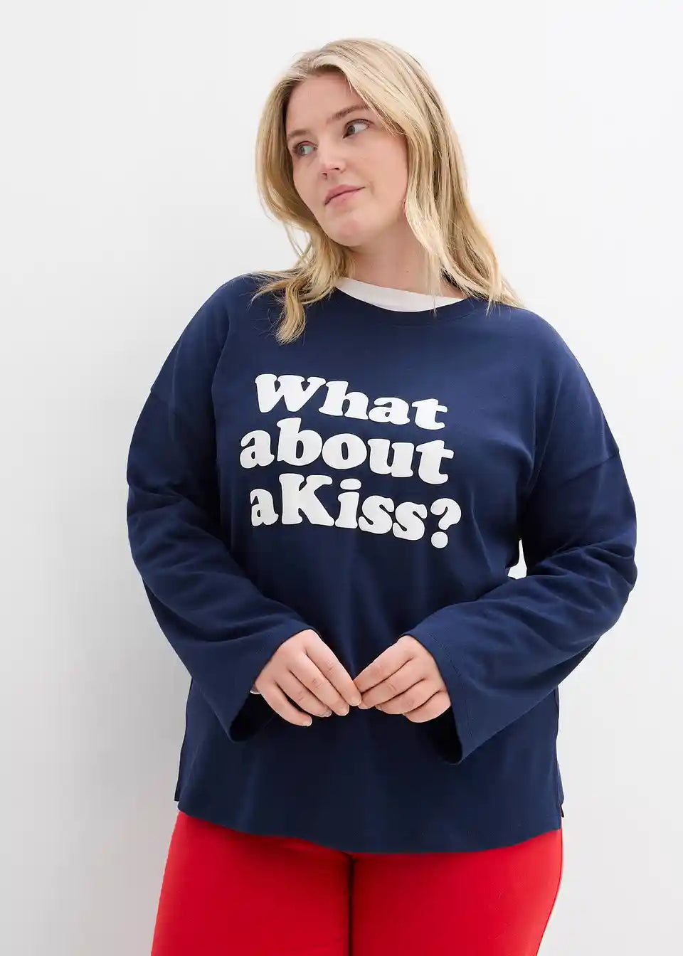 Weit geschnittenes Shirt mit überschnittener Schulter. Ein Rundhalsmodell aus reiner Baumwolle.