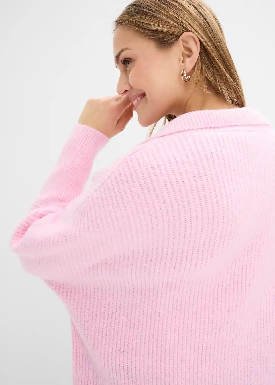 Oversized Pullover mit breitem Polokragen und einer V-Öffnung vorn. Mit Fledermausärmeln in 7/8-Länge.
