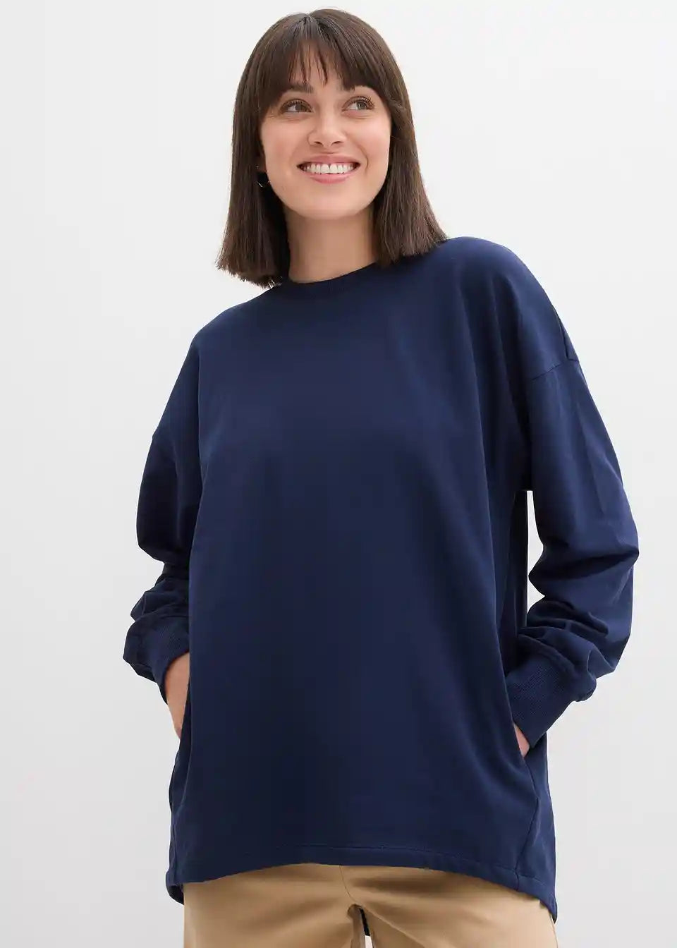 Sweatshirt mit überschnittener Schulter und vorverlegter Seitennaht. Weite Passform.