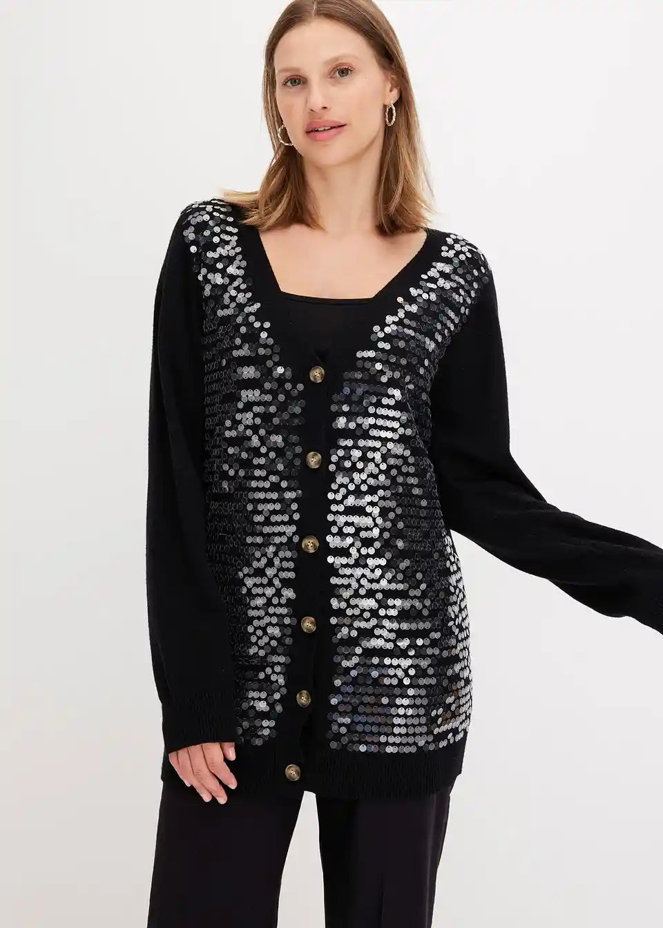 Modelgröße:Das Studio Model ist 1,75 m groß und trägt Größe 36/38.