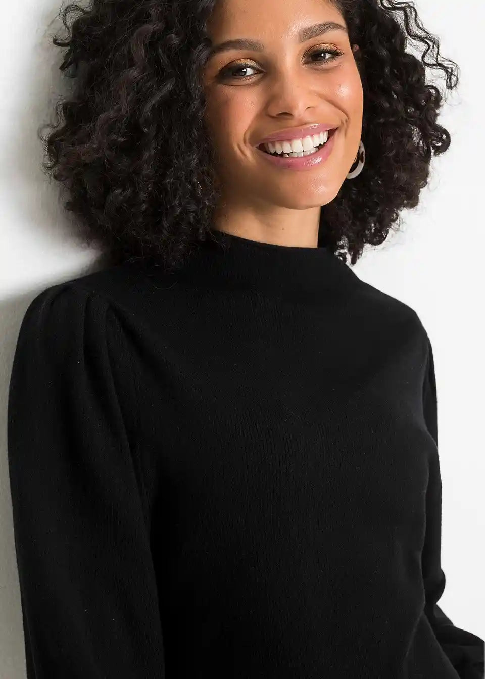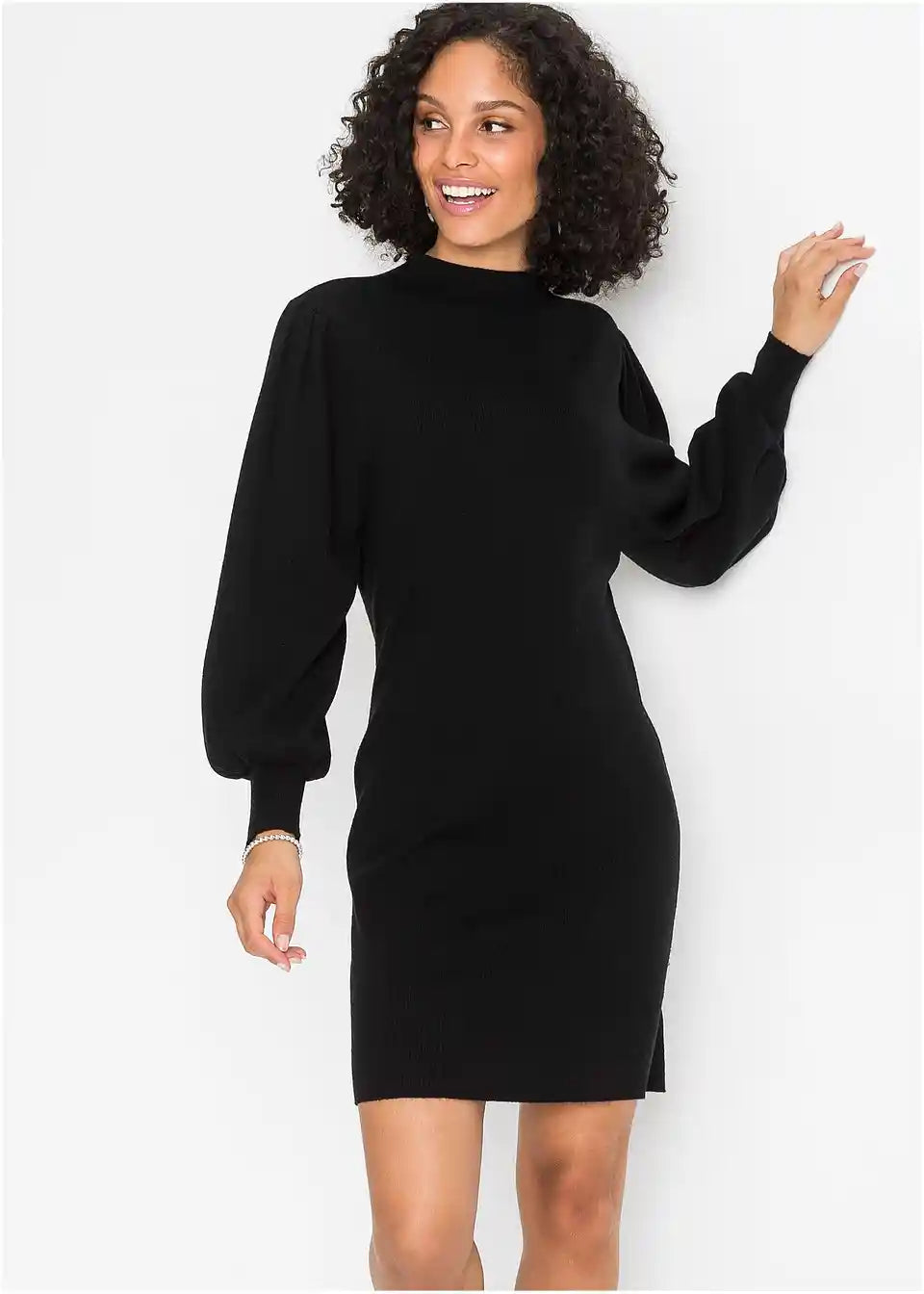 Figurformendes Kleid mit Ballonärmeln in Strick