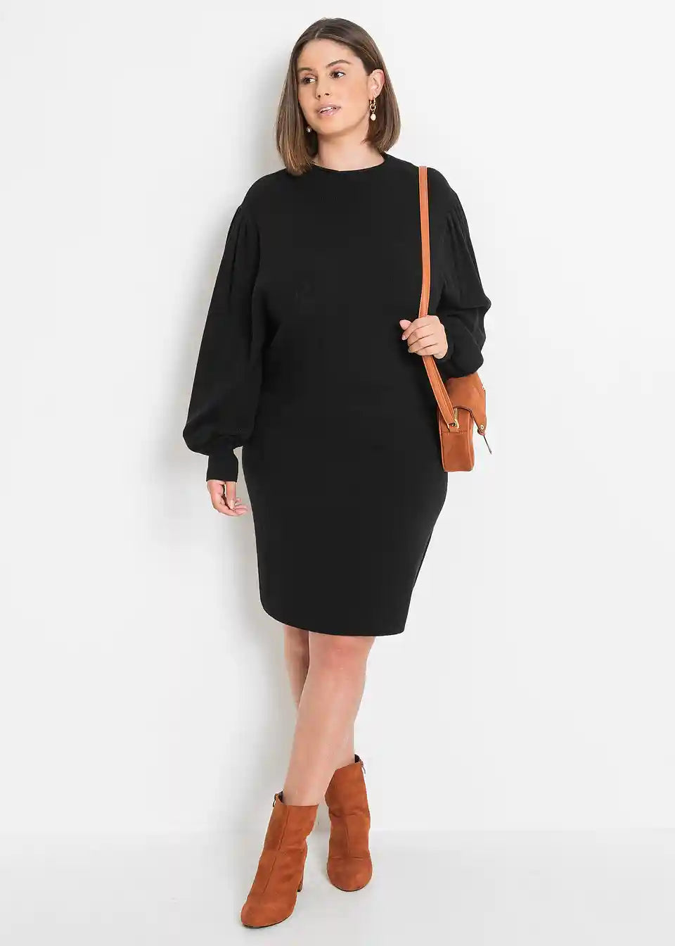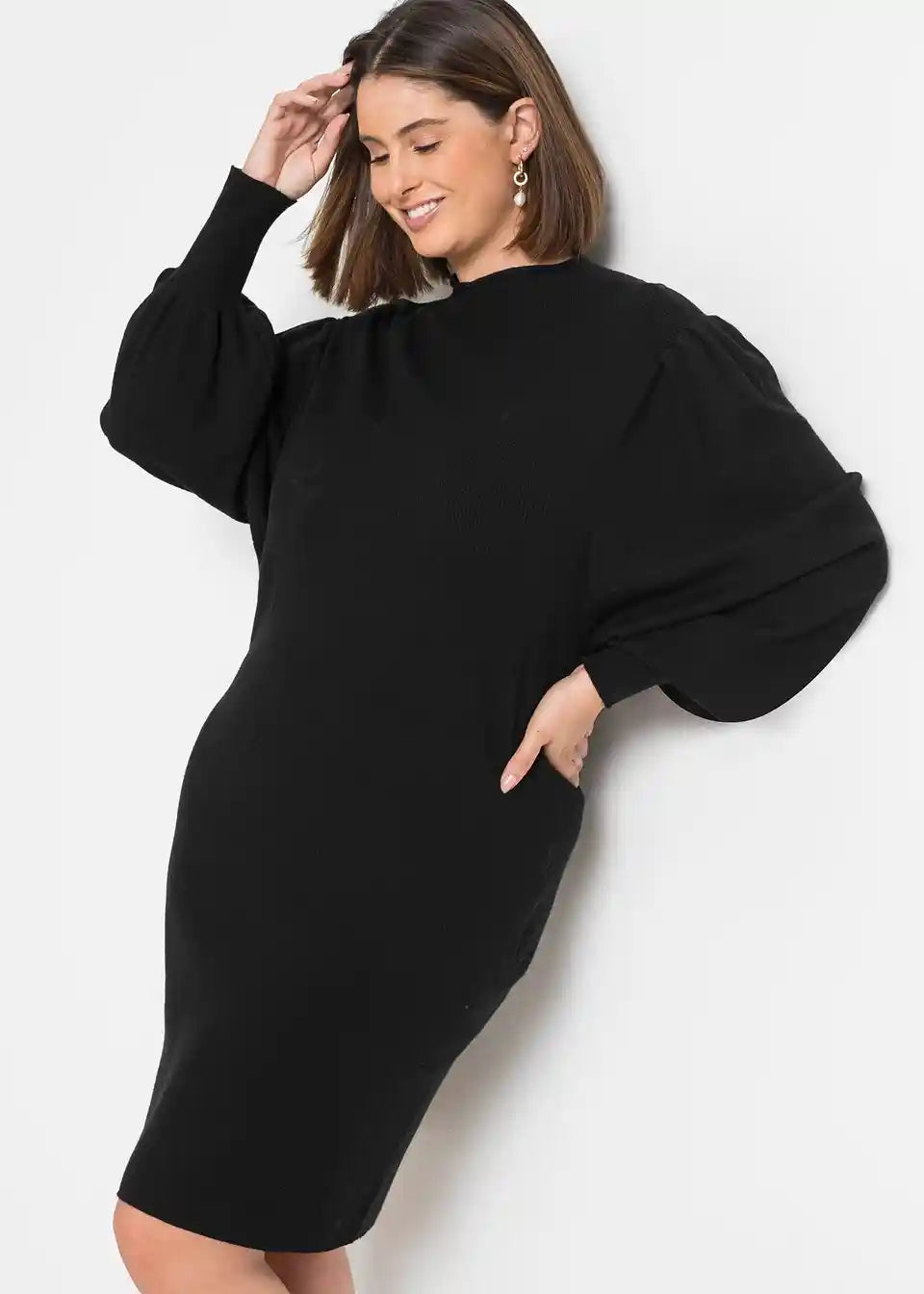 Figurformendes Kleid mit Ballonärmeln in Strick