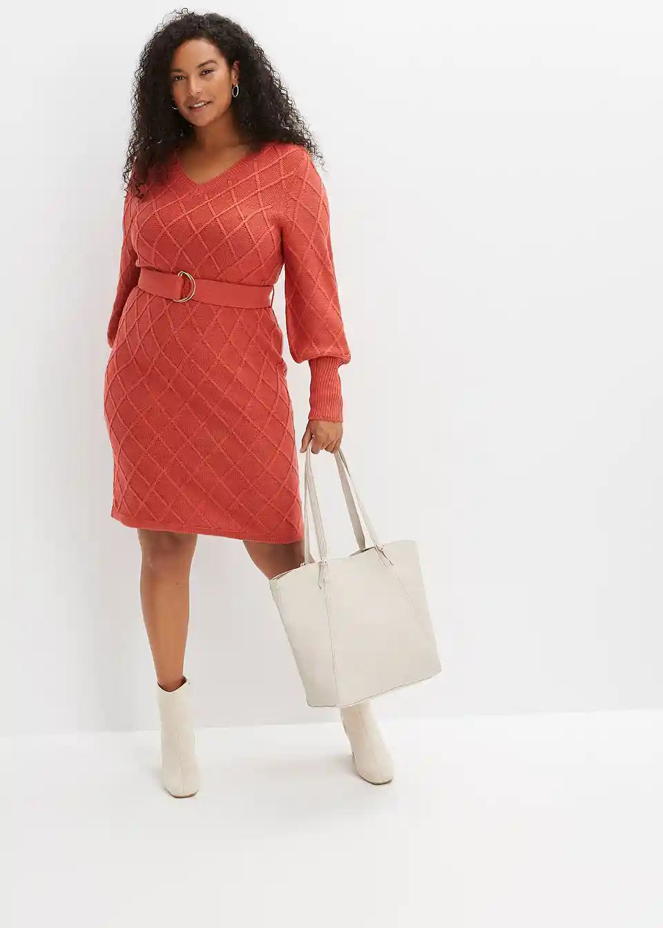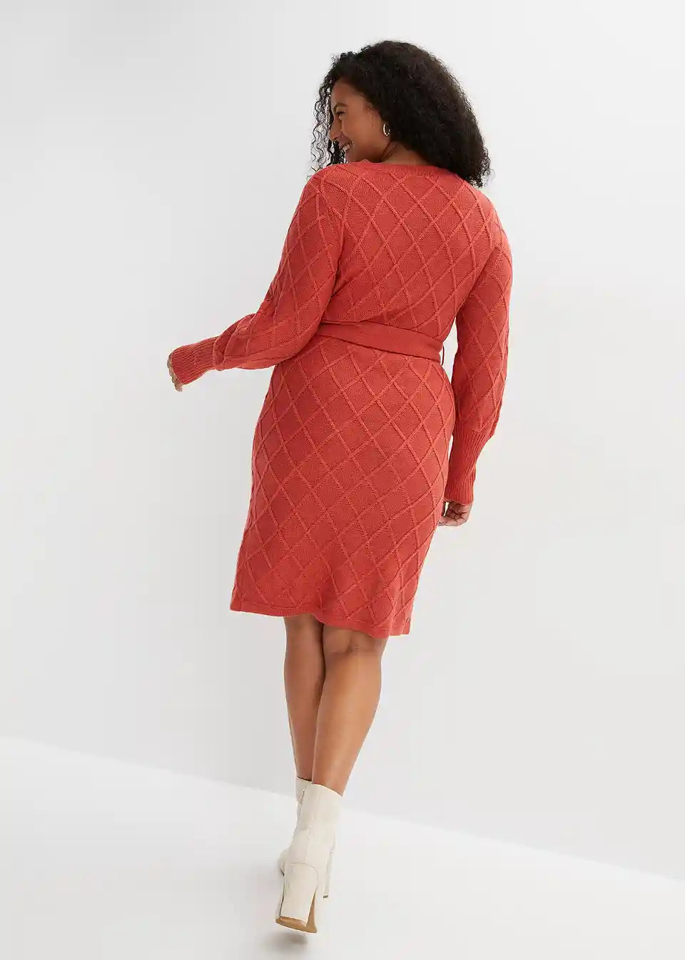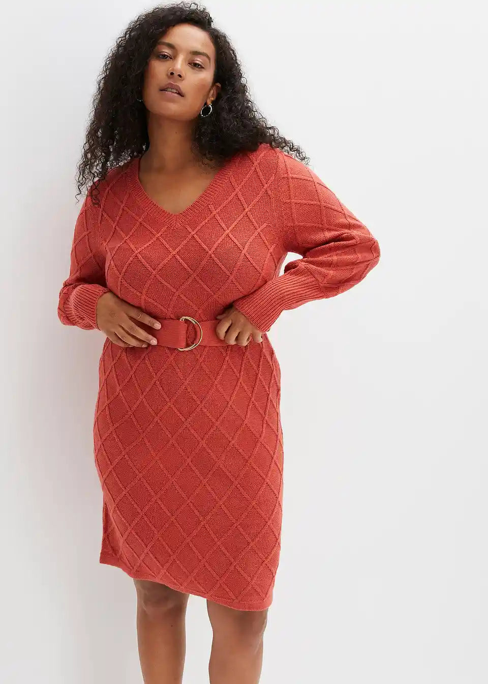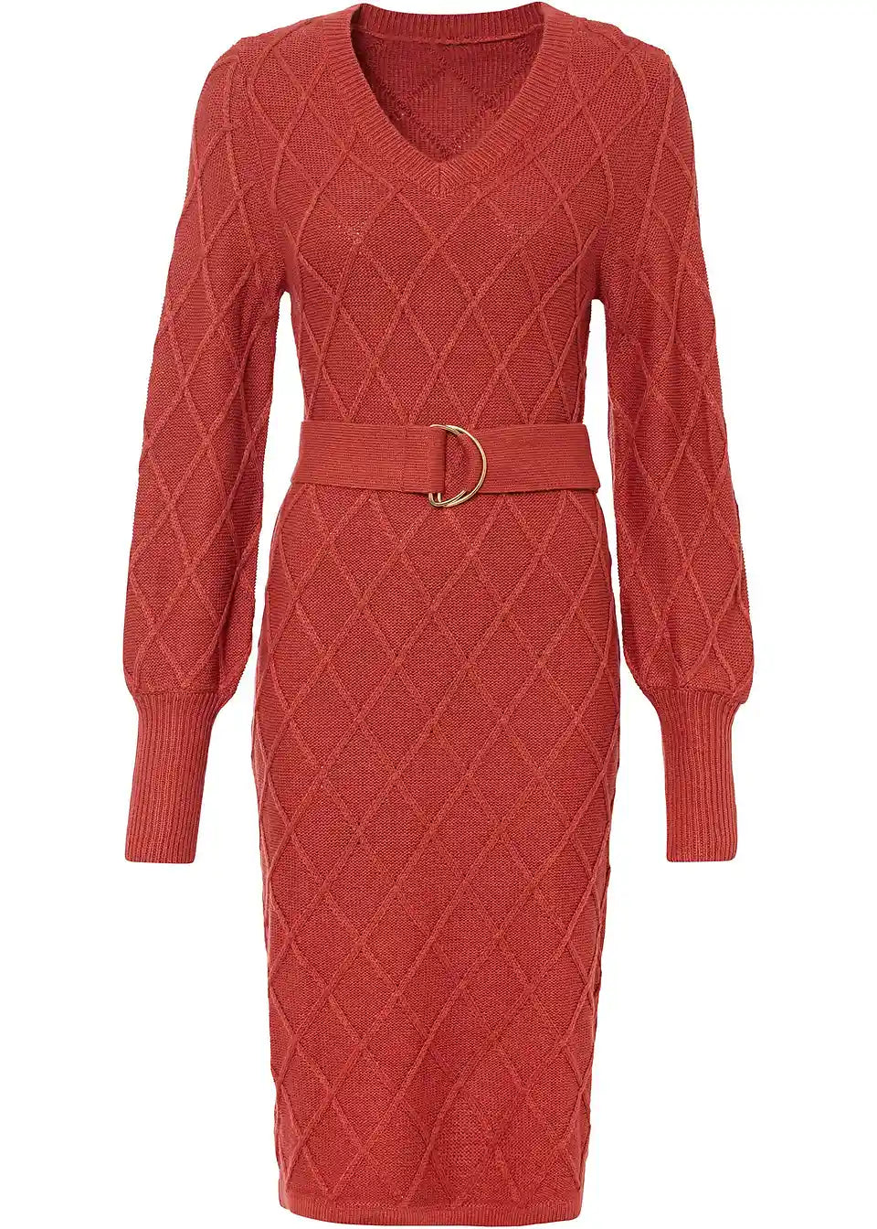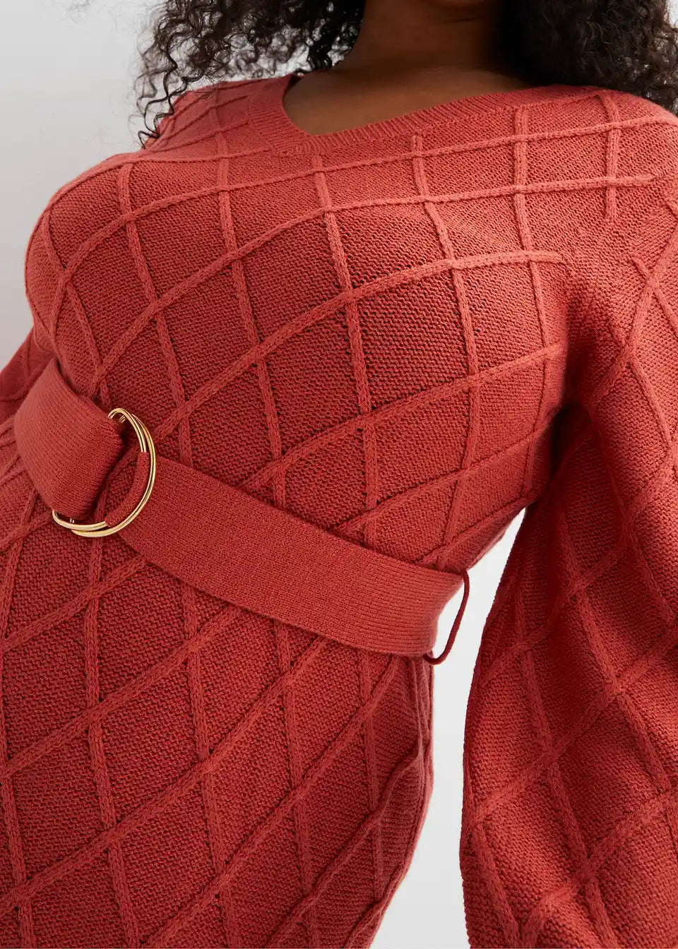 Modern und Feminin: Strickkleid mit Bindeband und Ringschnalle.