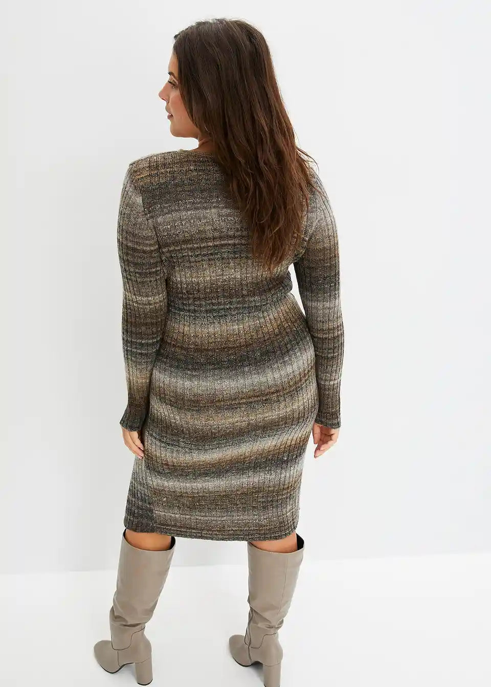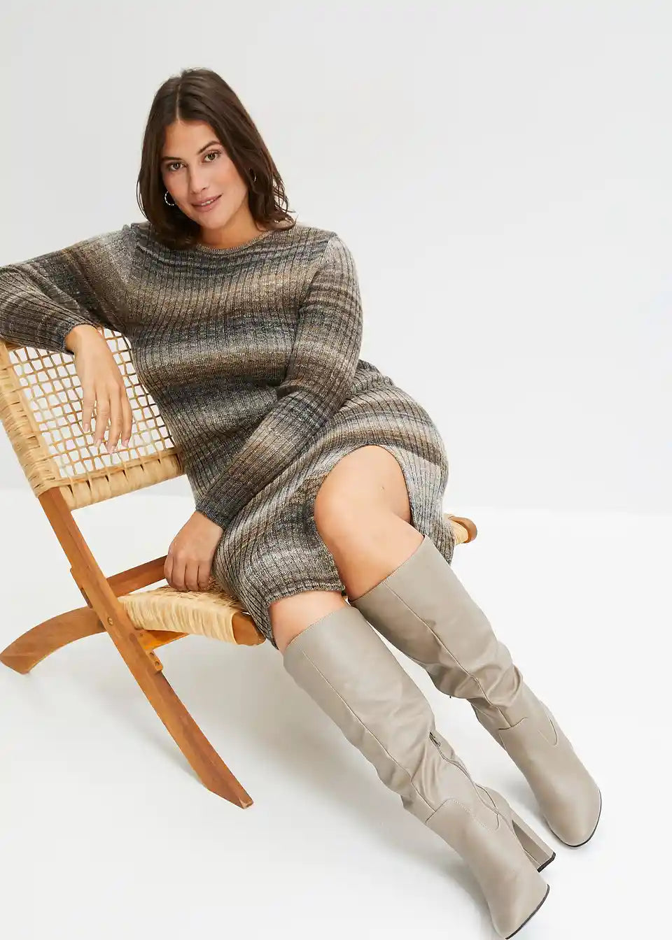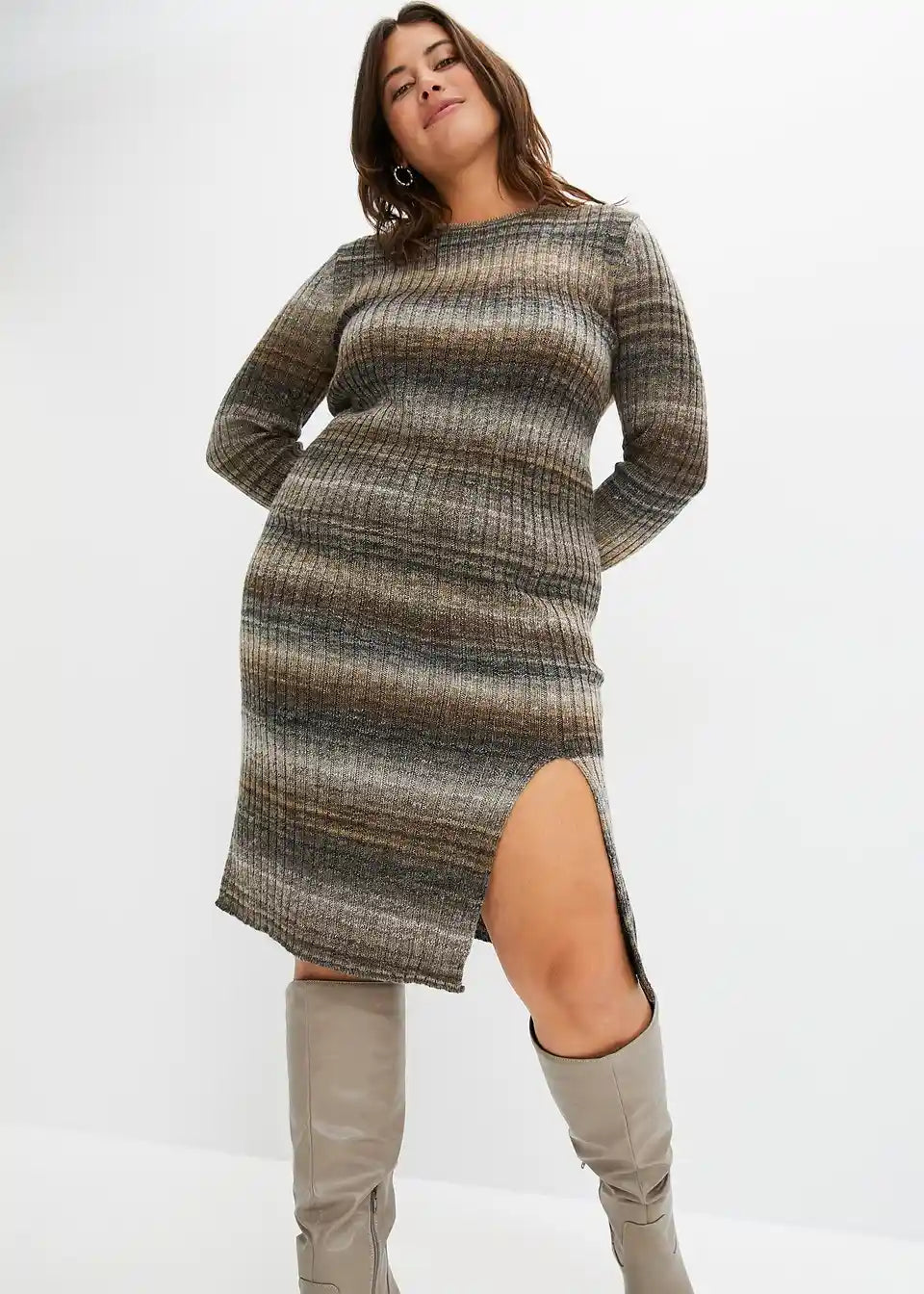 Modern und Feminin: figurbetontes Strickkleid mit langem Schlitz.
