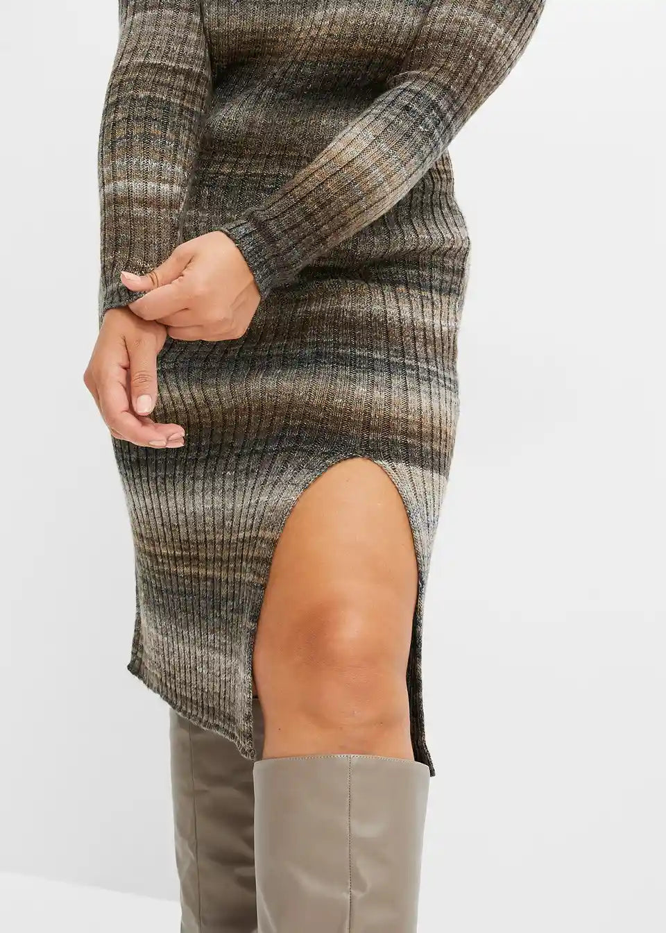 Strickkleid mit Rippmuster und Schlitz