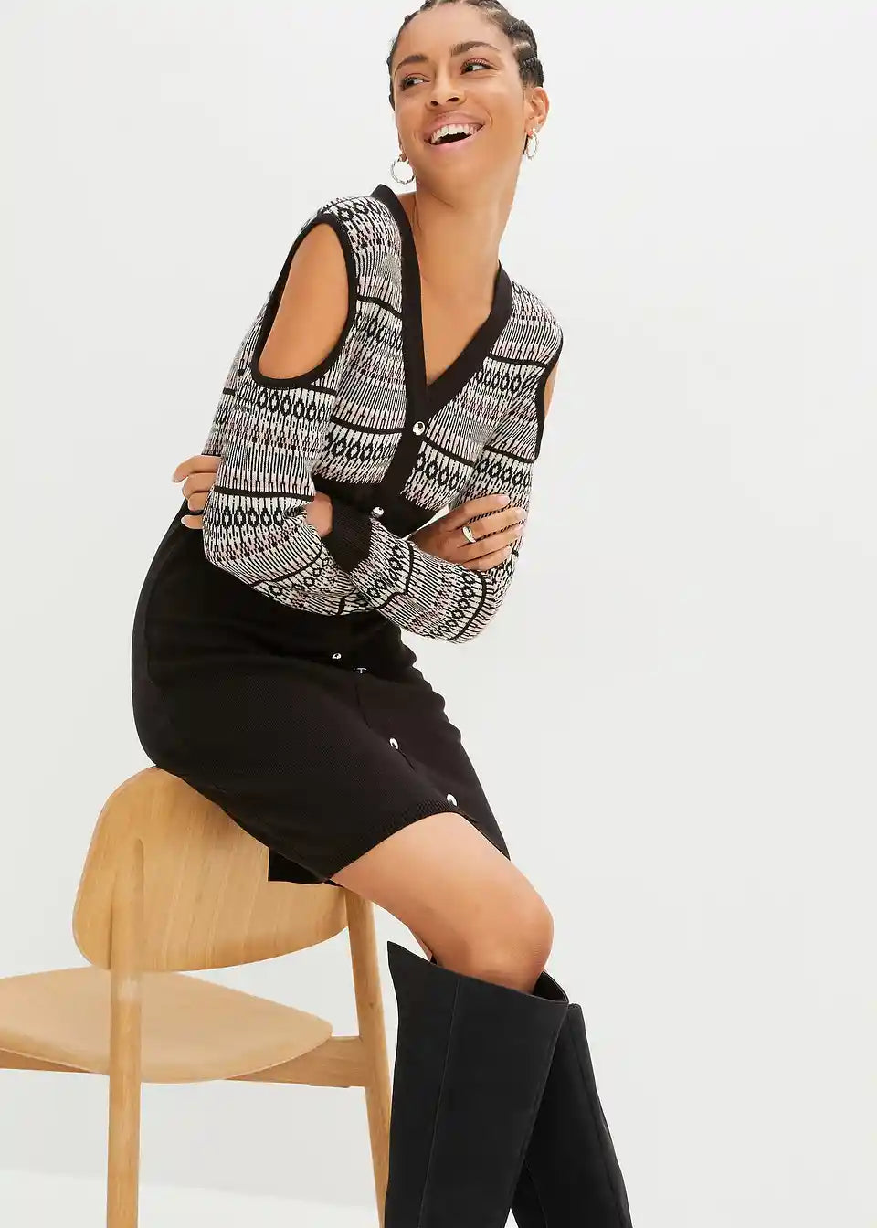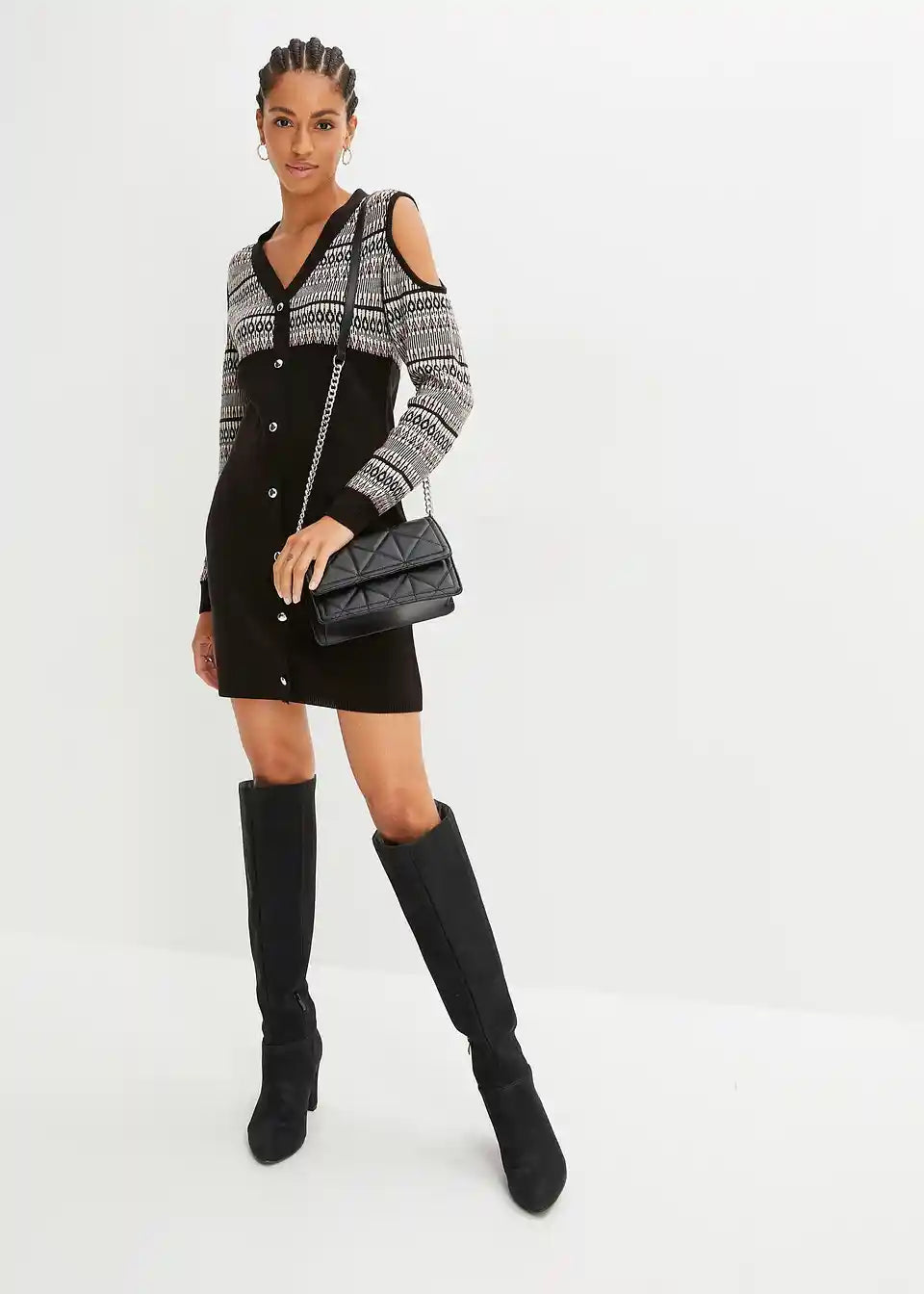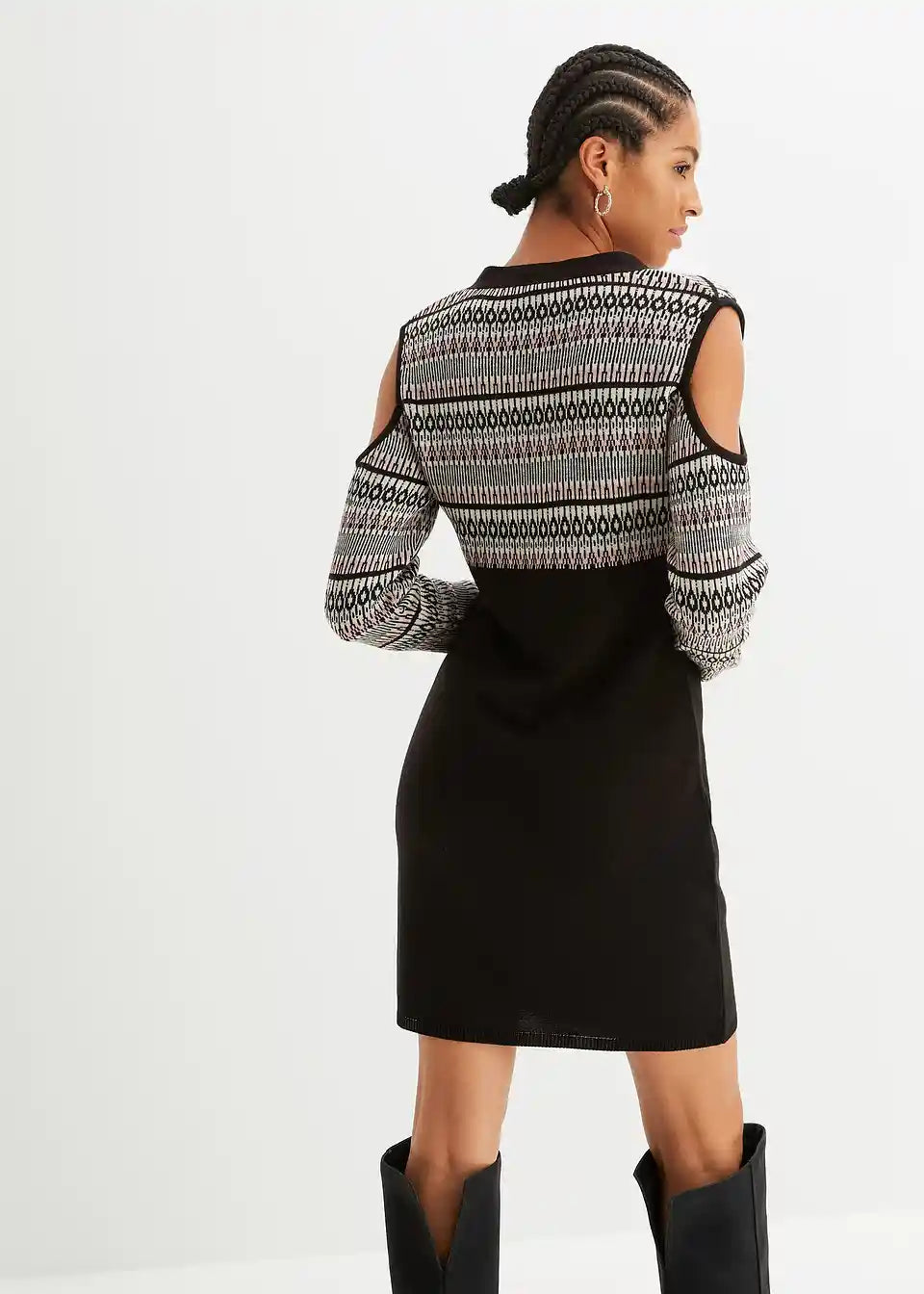 Modernes Strickkleid mit Cut-Outs und schönem Muster