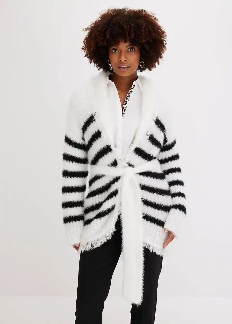 Modern und feminin: Strickjacke mit Fransen und Bindeband