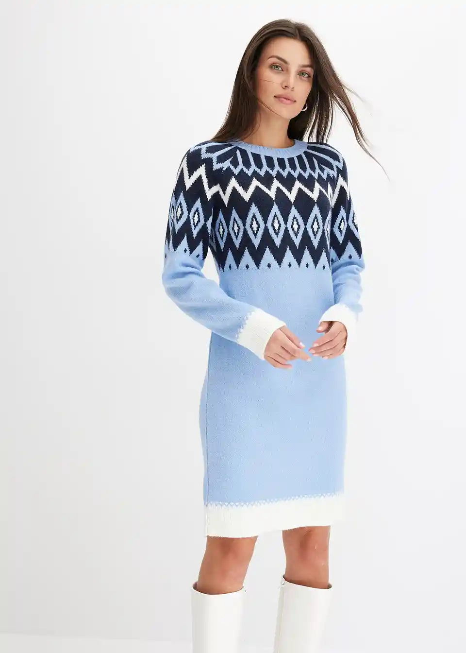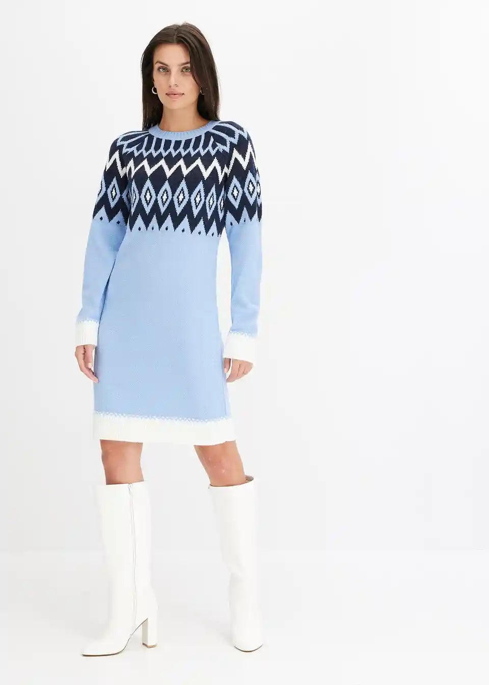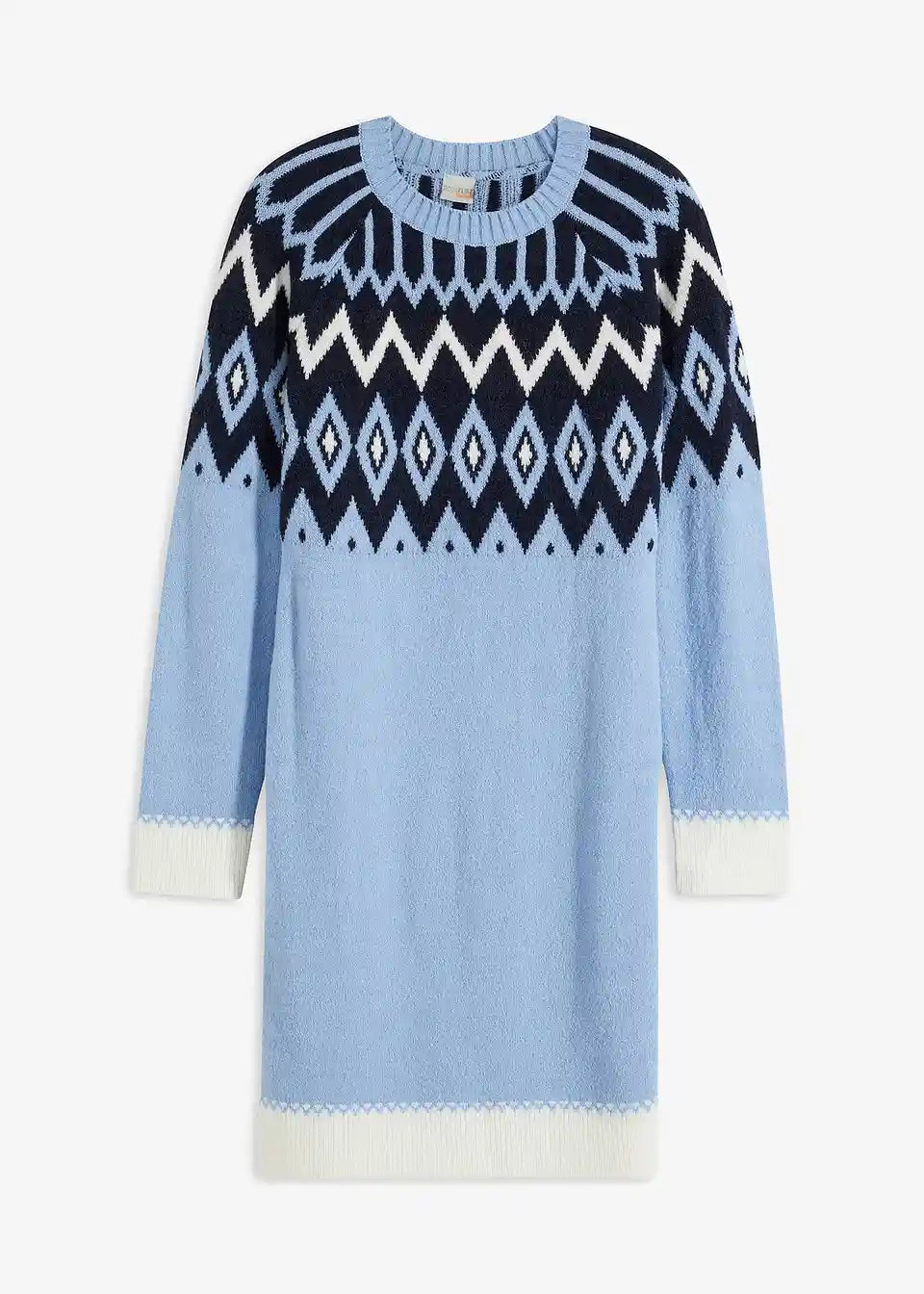 Modern und feminin: Strickkleid im modernen Schnitt mit Jacquard-Muster