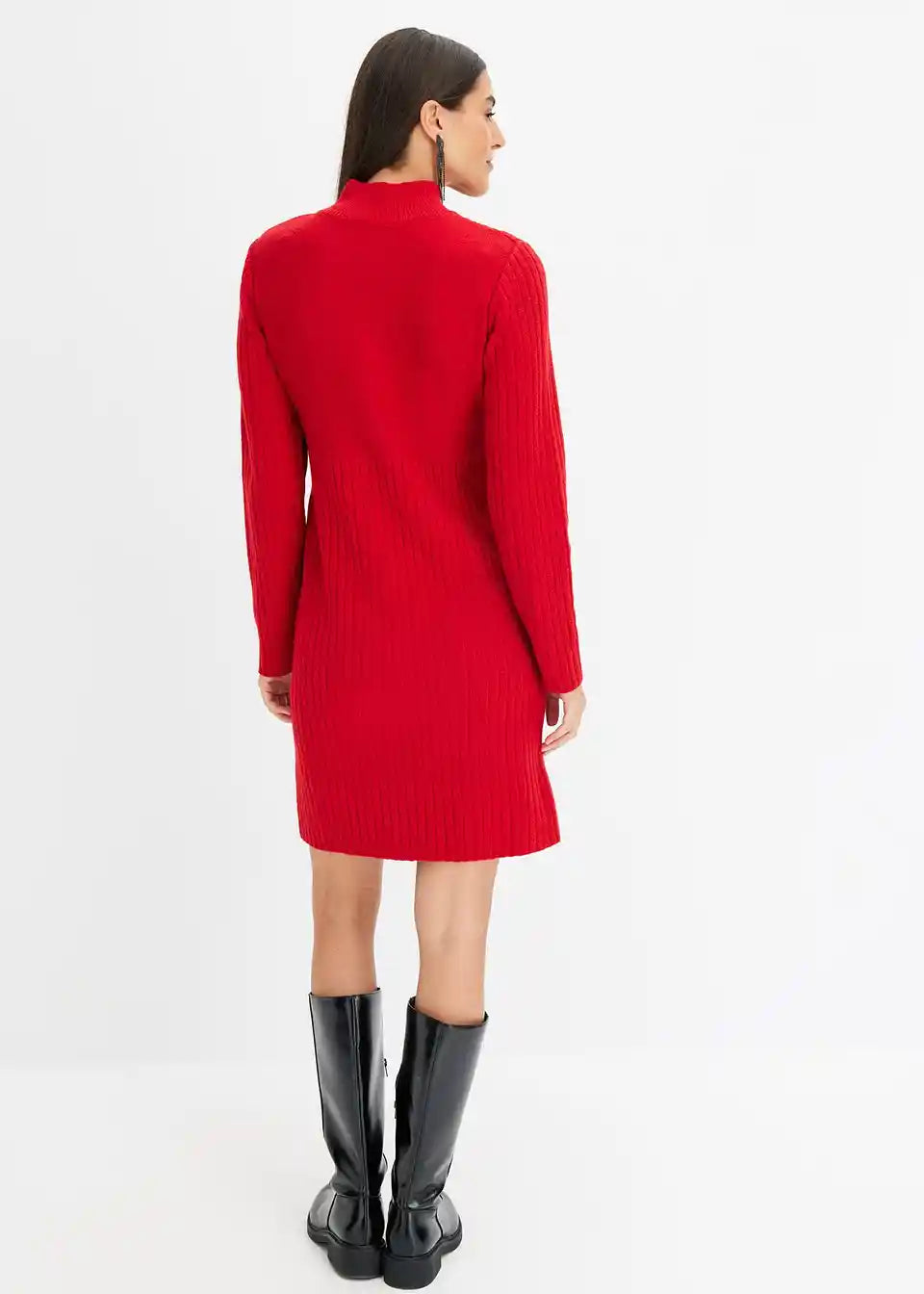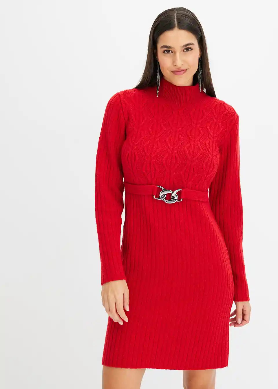 Modern und feminin: Strickkleid mit Stehkragen und Gürtel