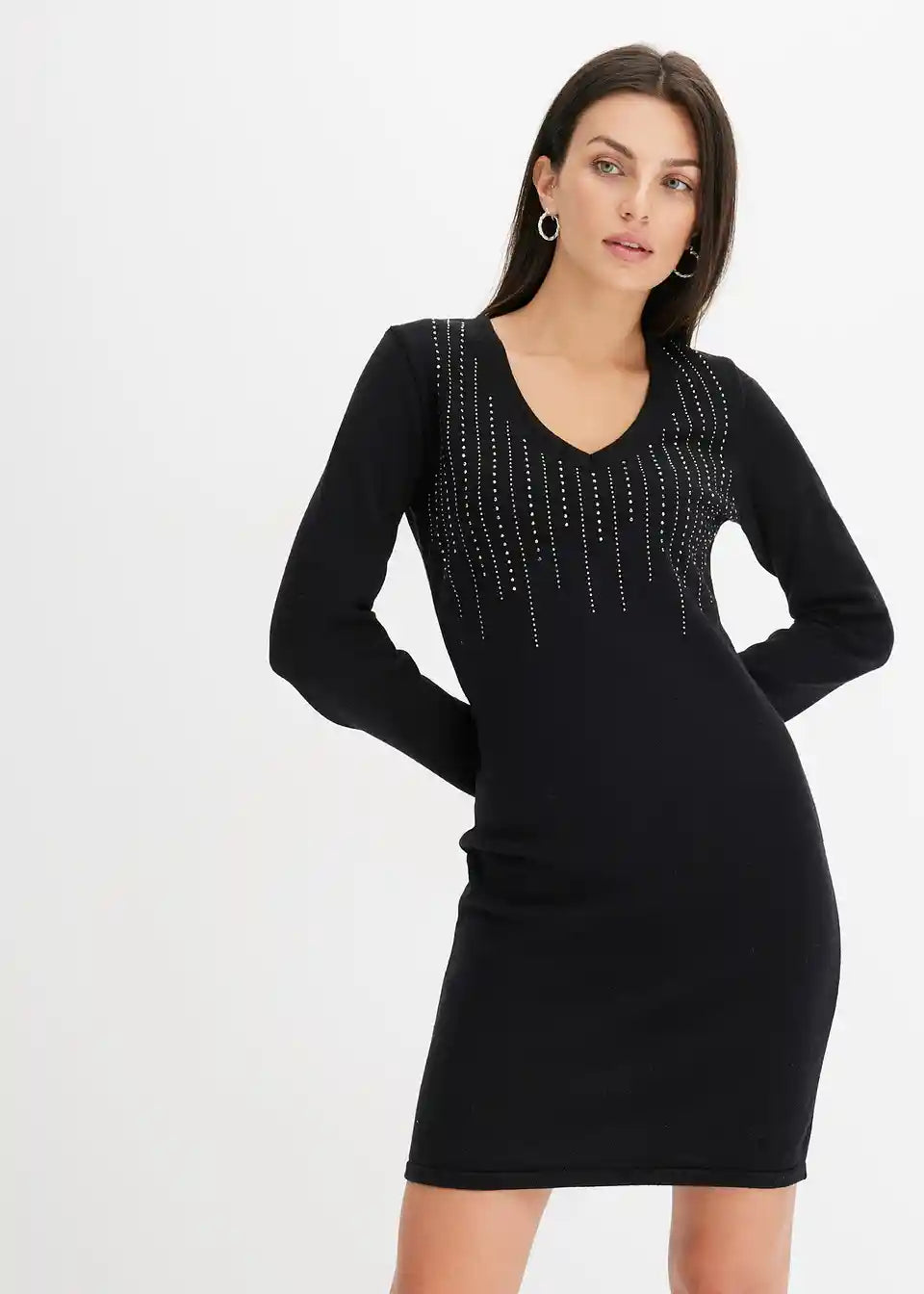 Modern und feminin: Strickkleid mit Strasssteinverzierung
