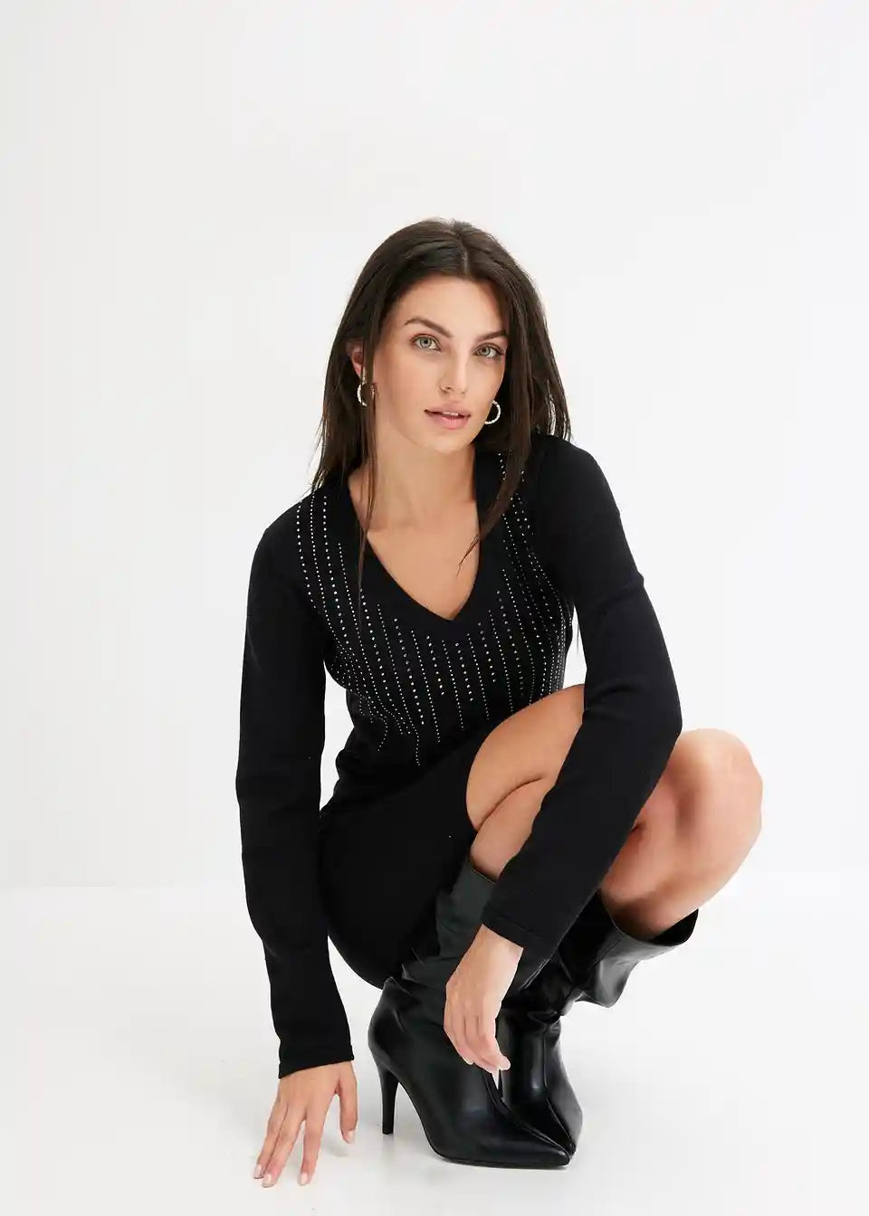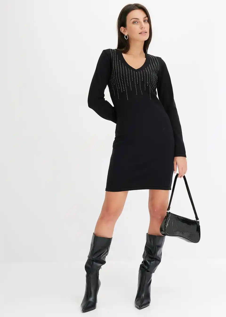 Strickkleid mit Strasssteinverzierungen