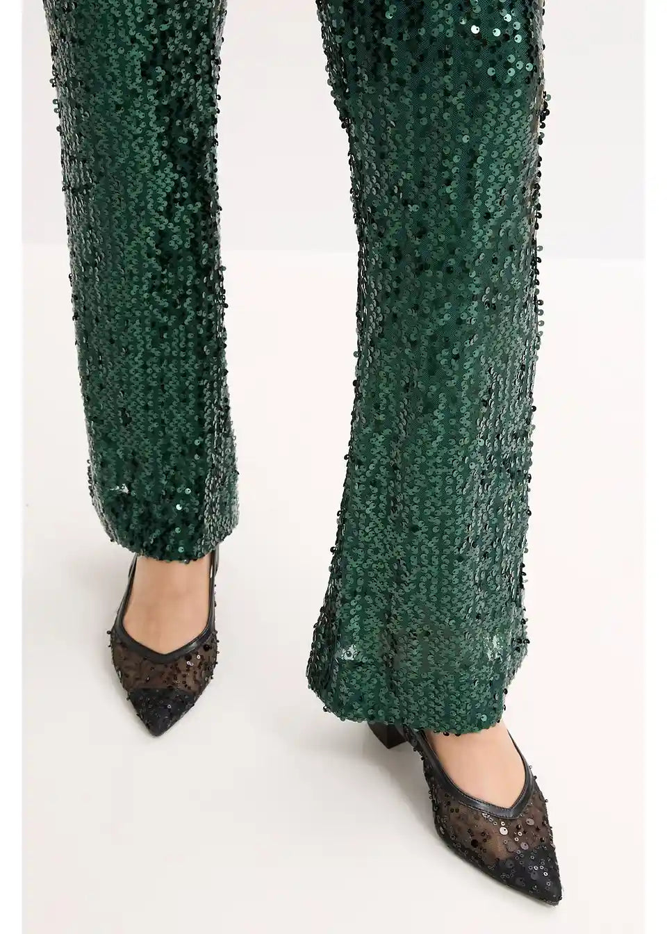 Modern und feminin: Lange Pailetten-Hose mit leichtem Schlag