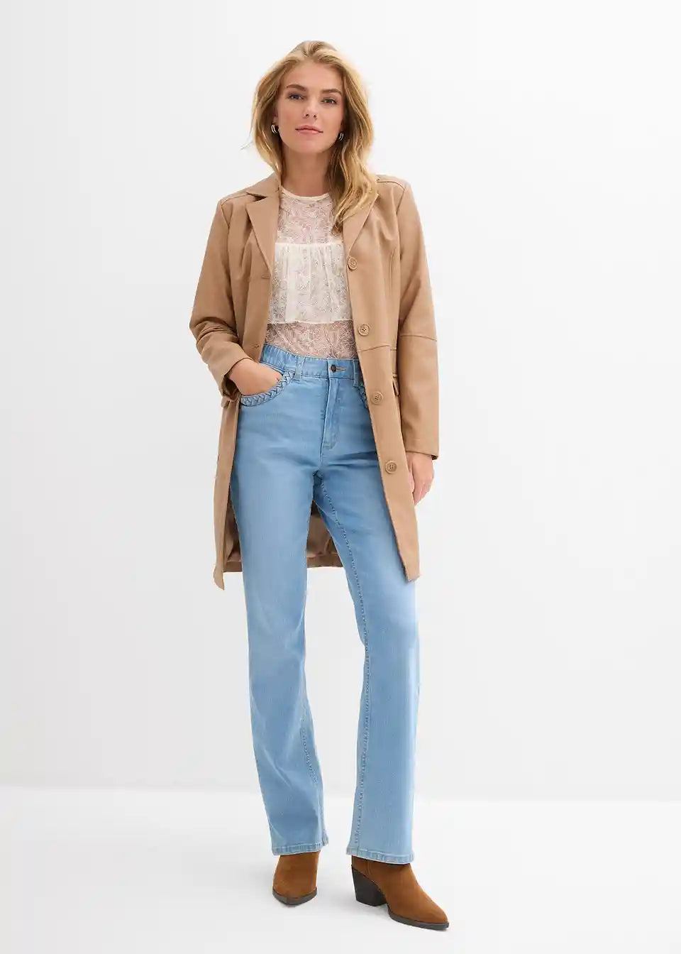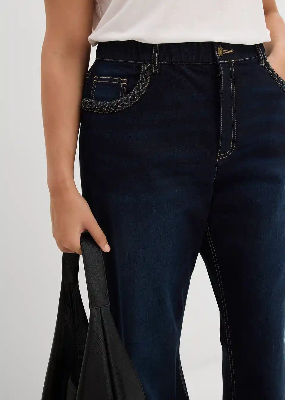 Gerade 5-Pocket-Jeans mit elastischem Bequembund aus festerem Denim.Hohe Bundhöhe mit Zip Fly und Knopf.