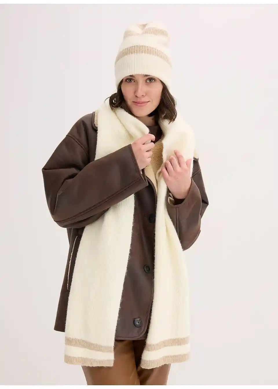 Hübsches Set aus Schal und Mütze mit Streifenmuster