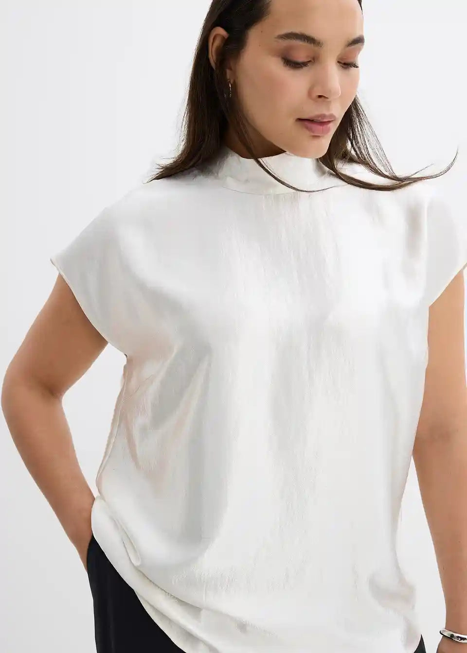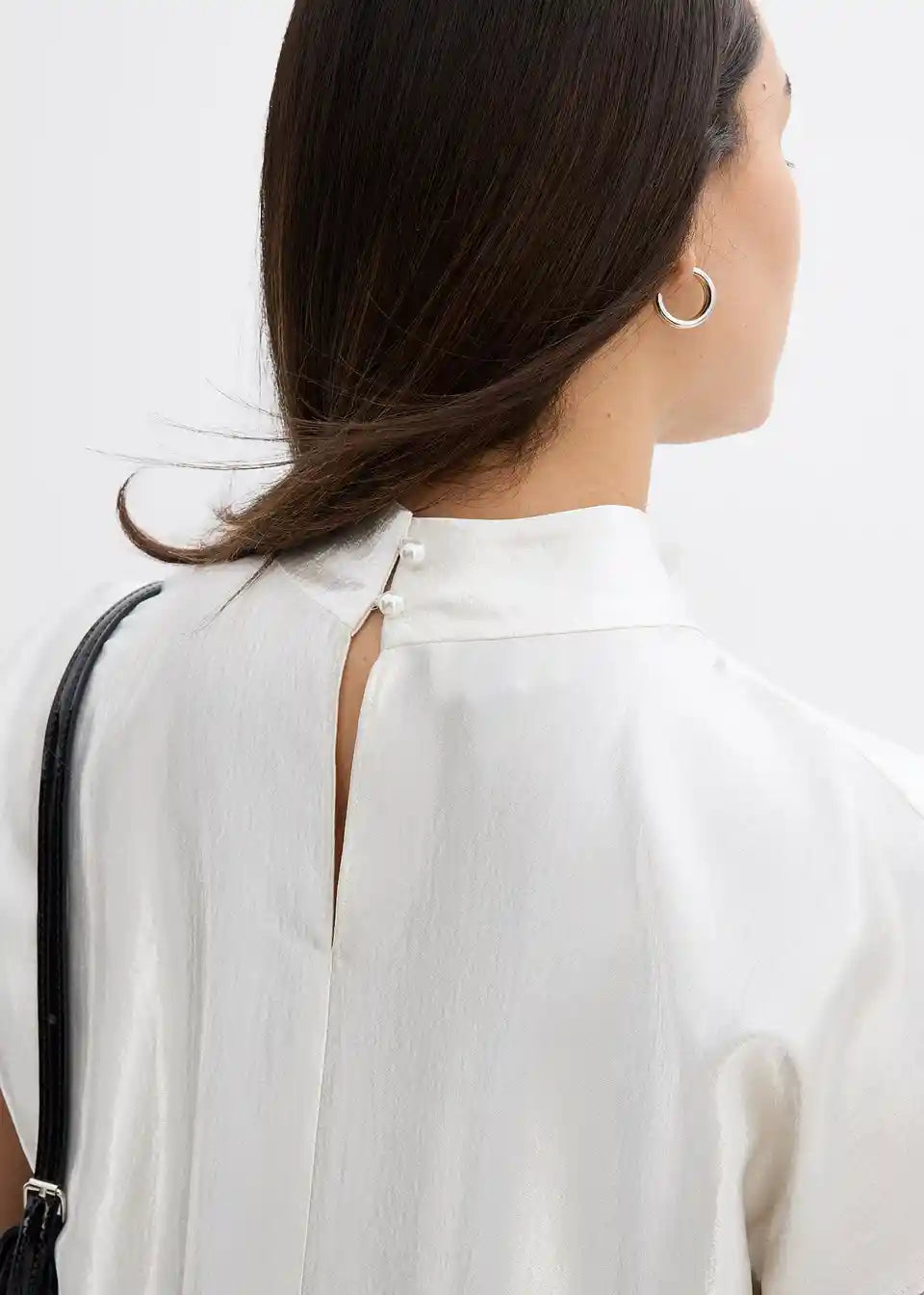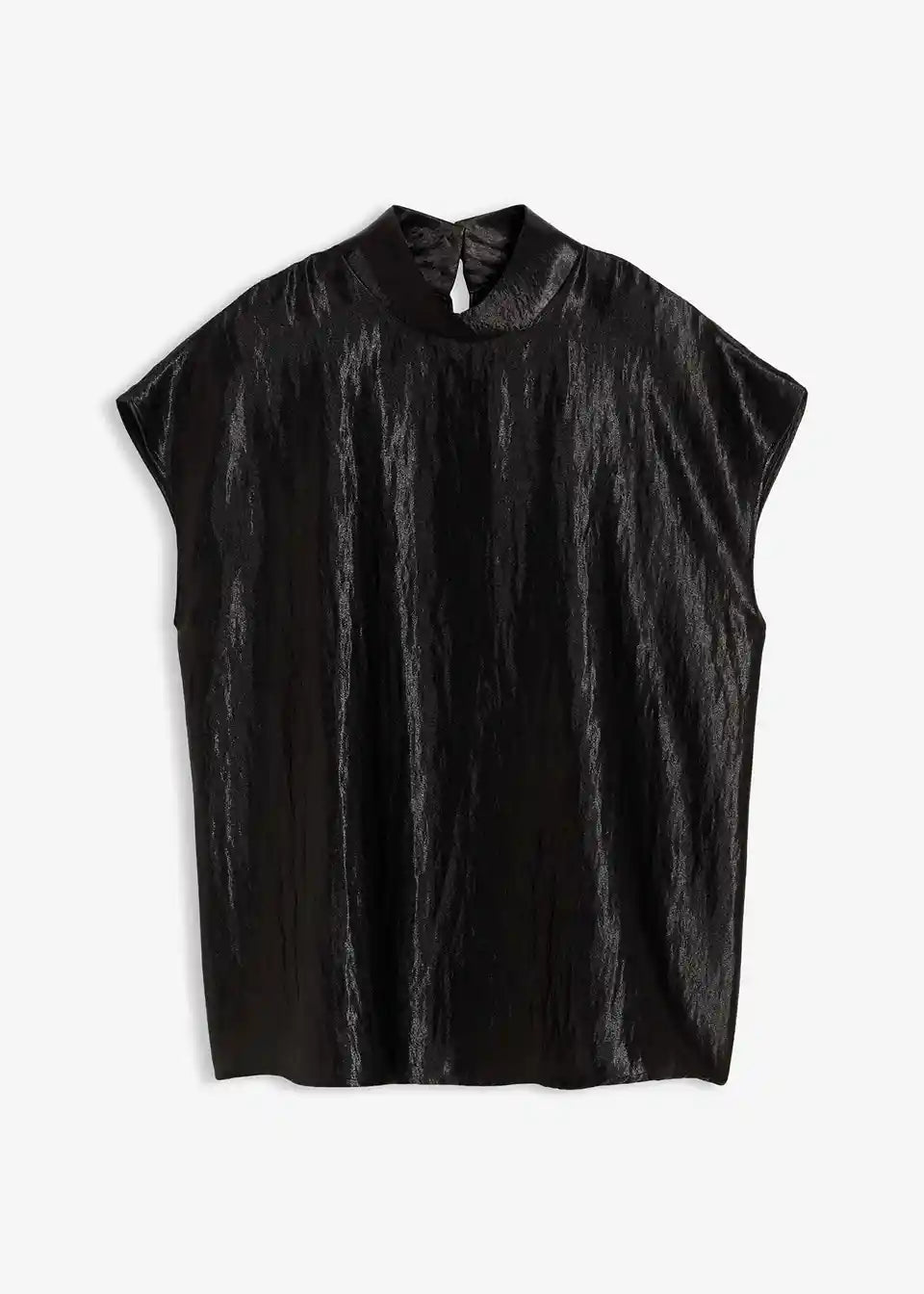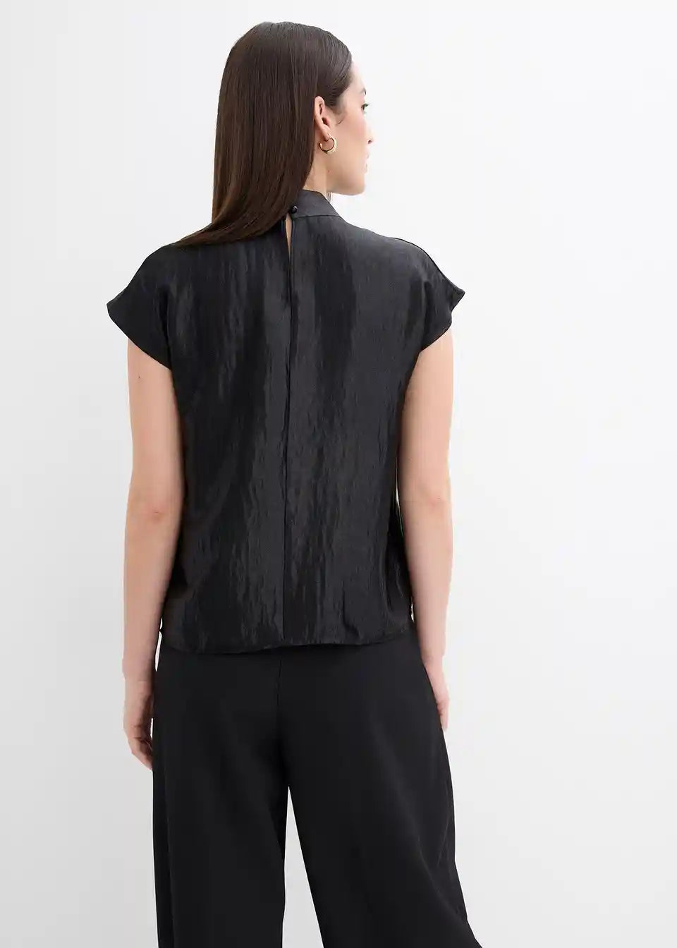 Ärmellose Bluse aus fließendem Stoff mit Knopfverschluss hinten