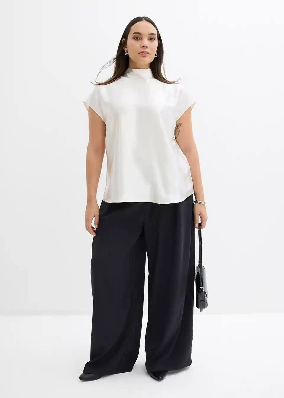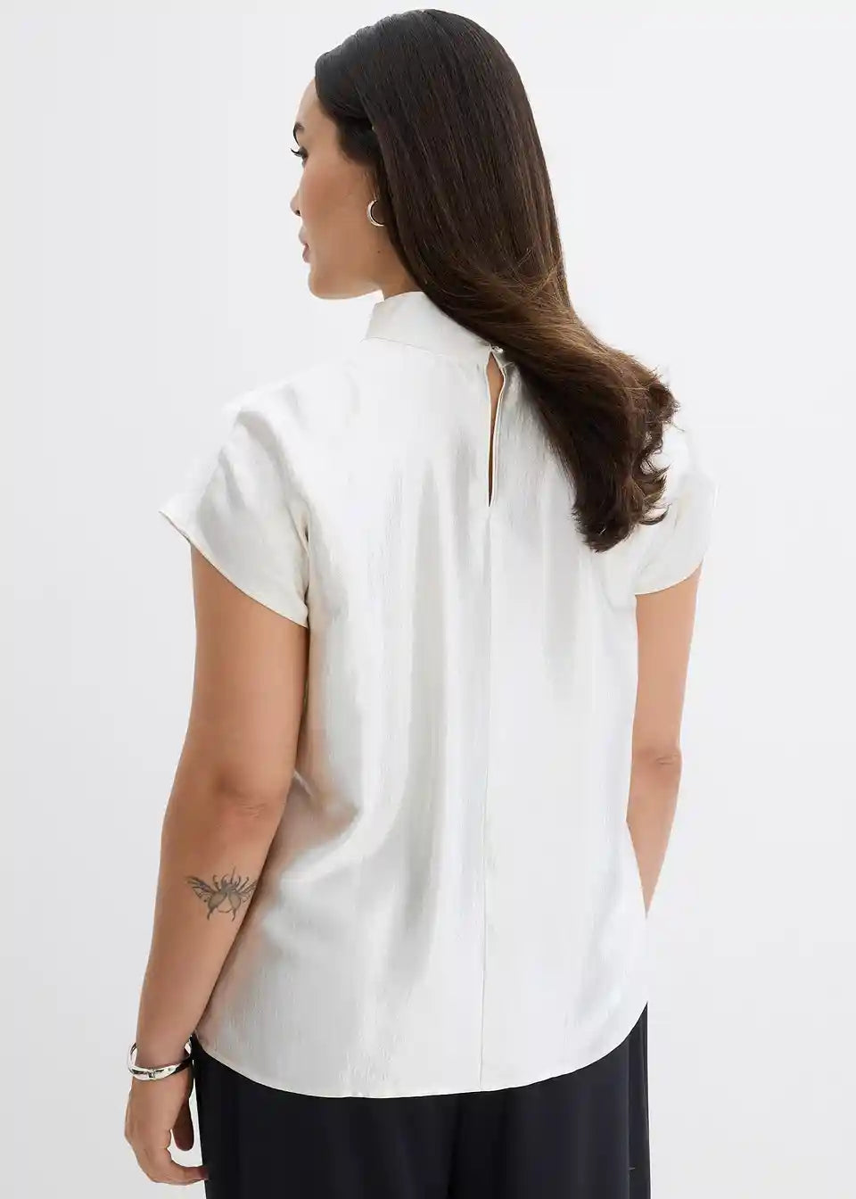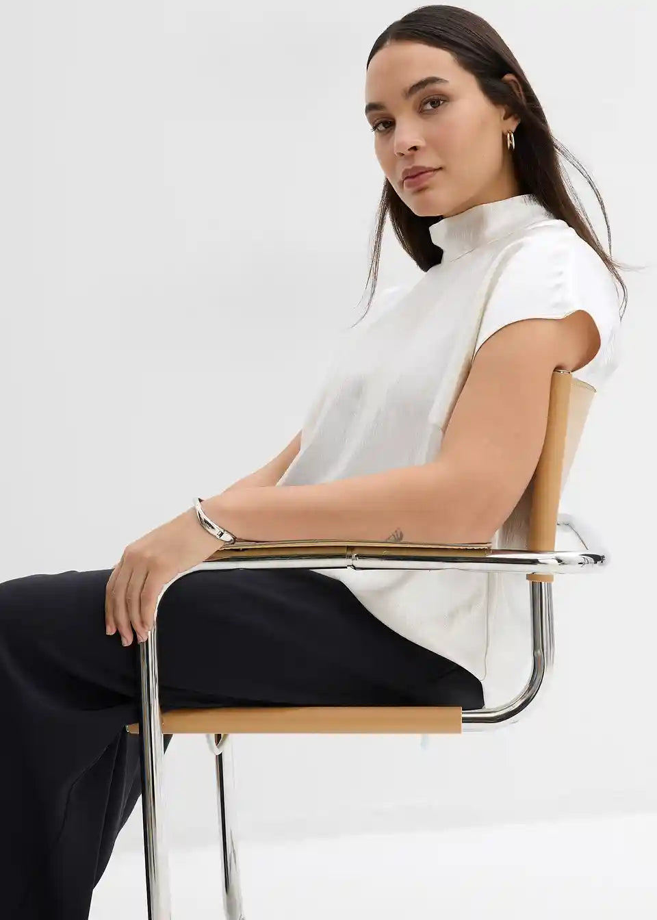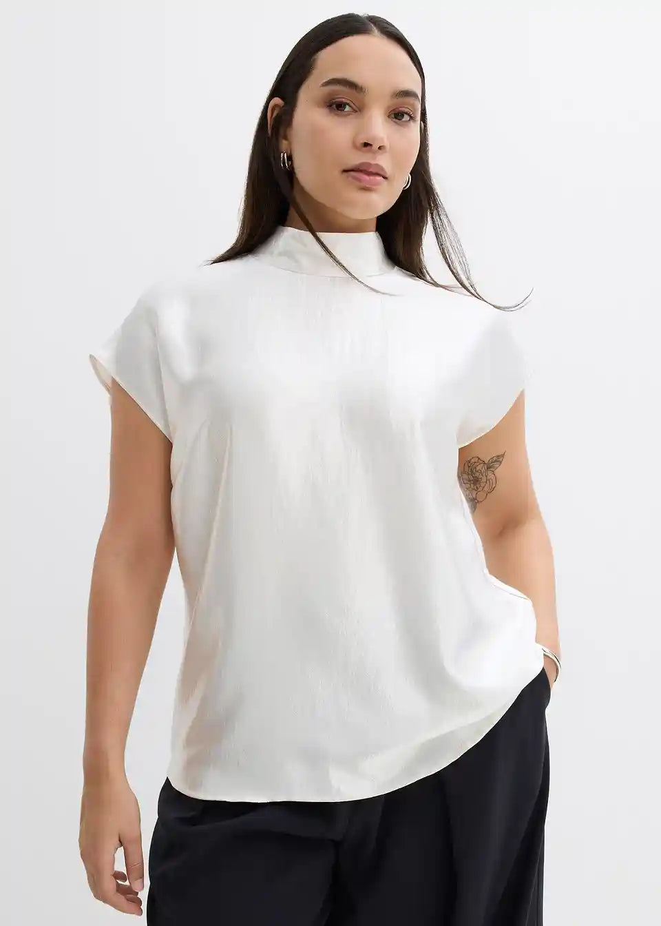 Ärmellose Bluse aus fließendem Stoff mit Knopfverschluss hinten