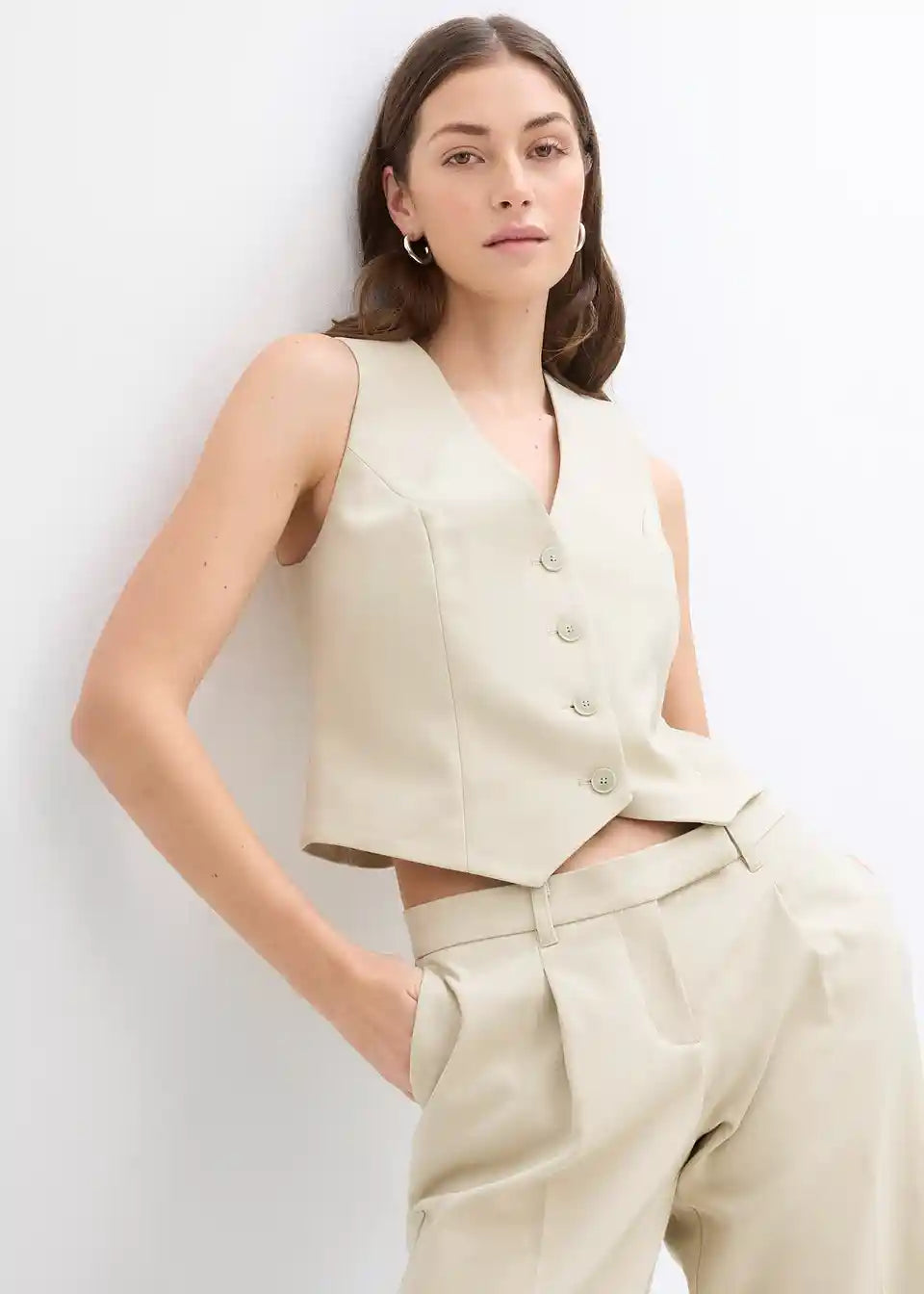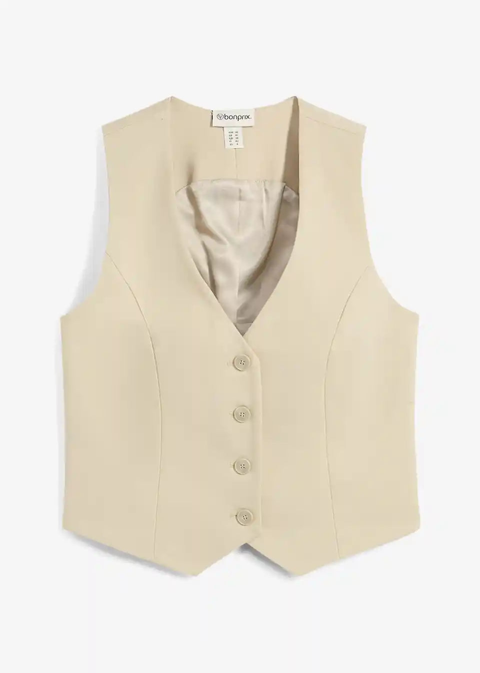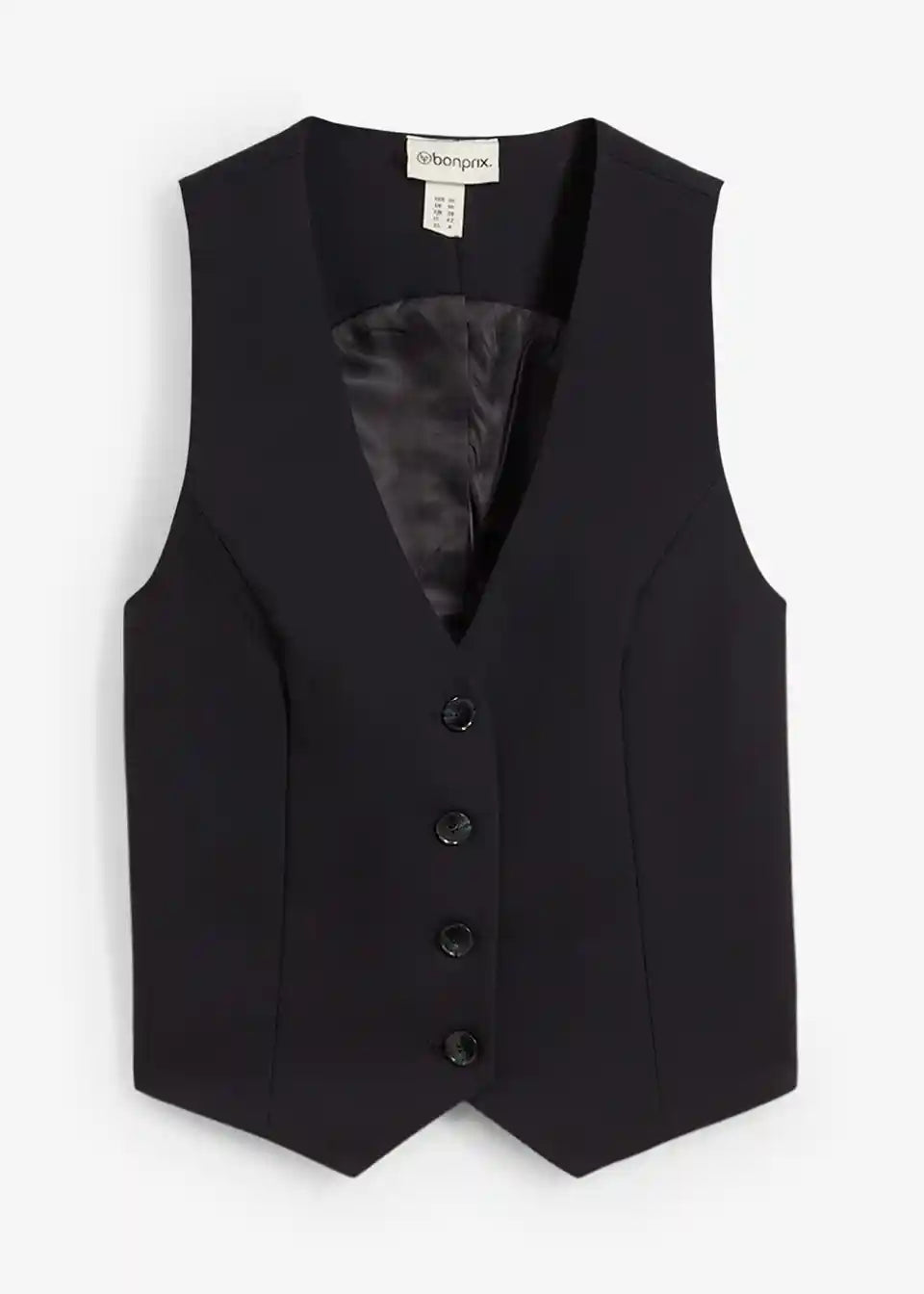 Elegante Weste mit einer Knopfleiste mit vier Knöpfen und seitlichen Abnähern