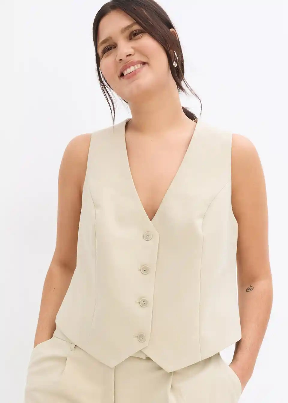 Elegante Weste mit einer Knopfleiste mit vier Knöpfen und seitlichen Abnähern