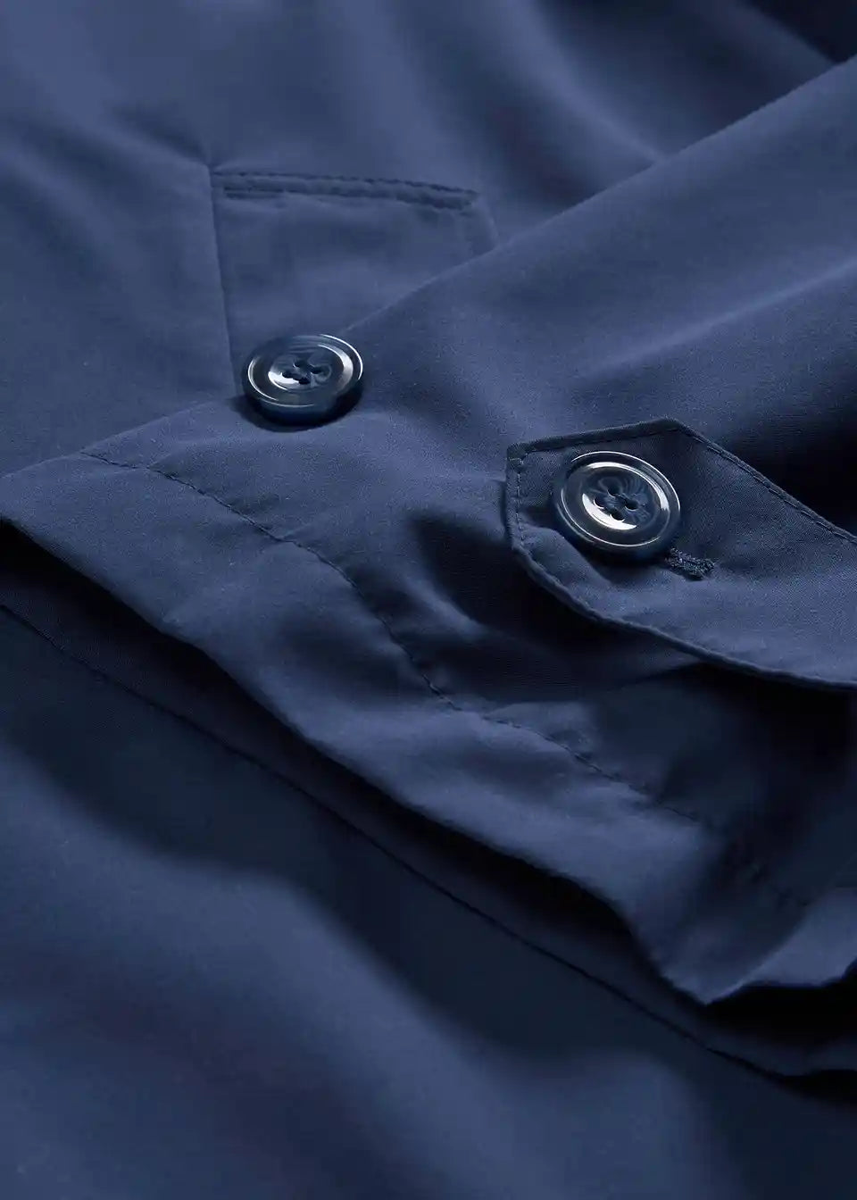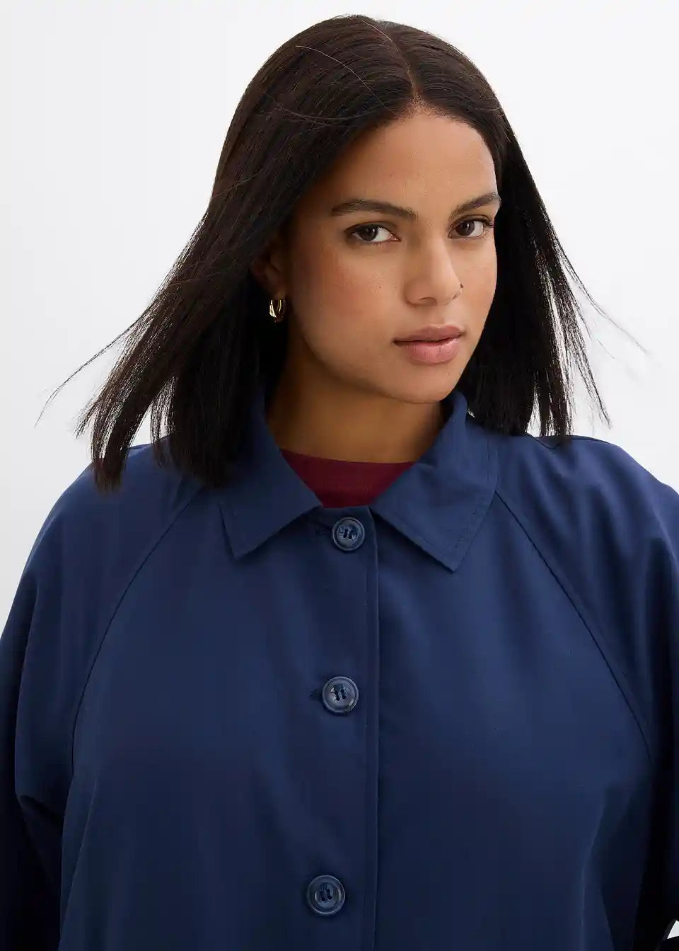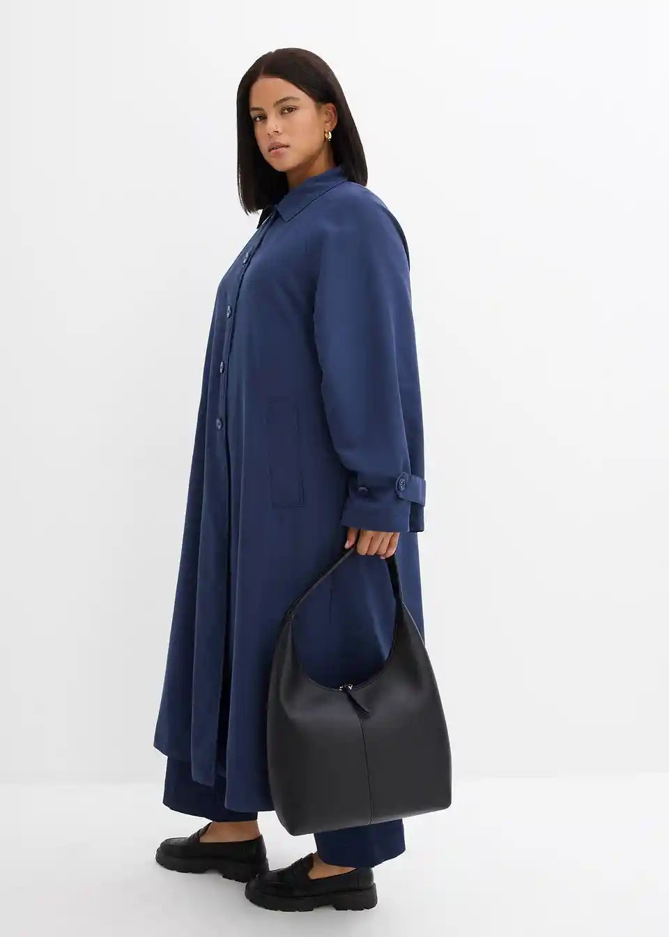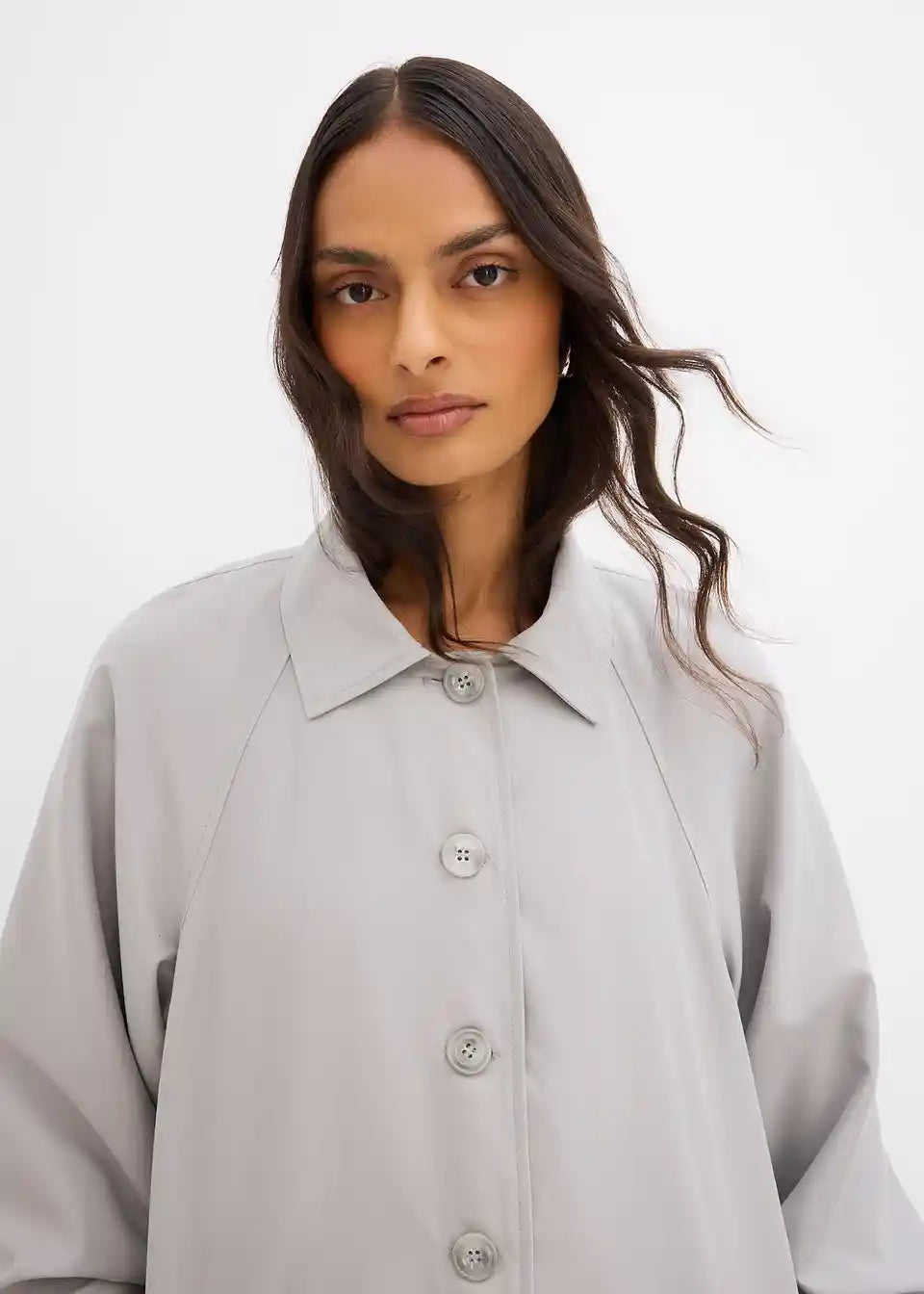 Wadenlanger, einreihiger Trenchcoat mit Kragen, verstellbaren Ärmelriegeln und seitlichen Leistentaschen.