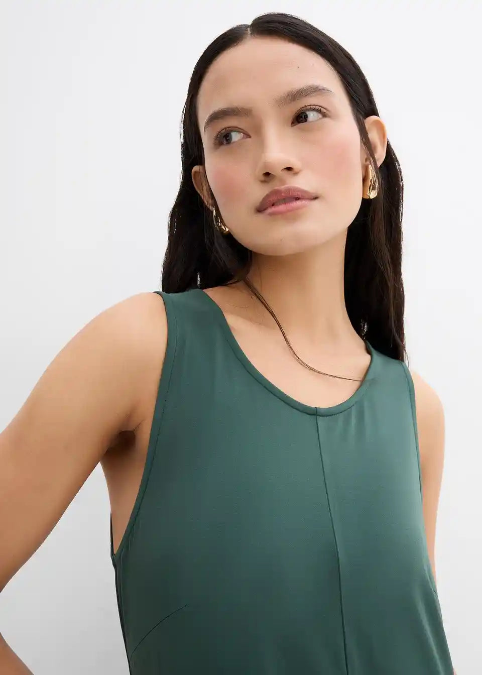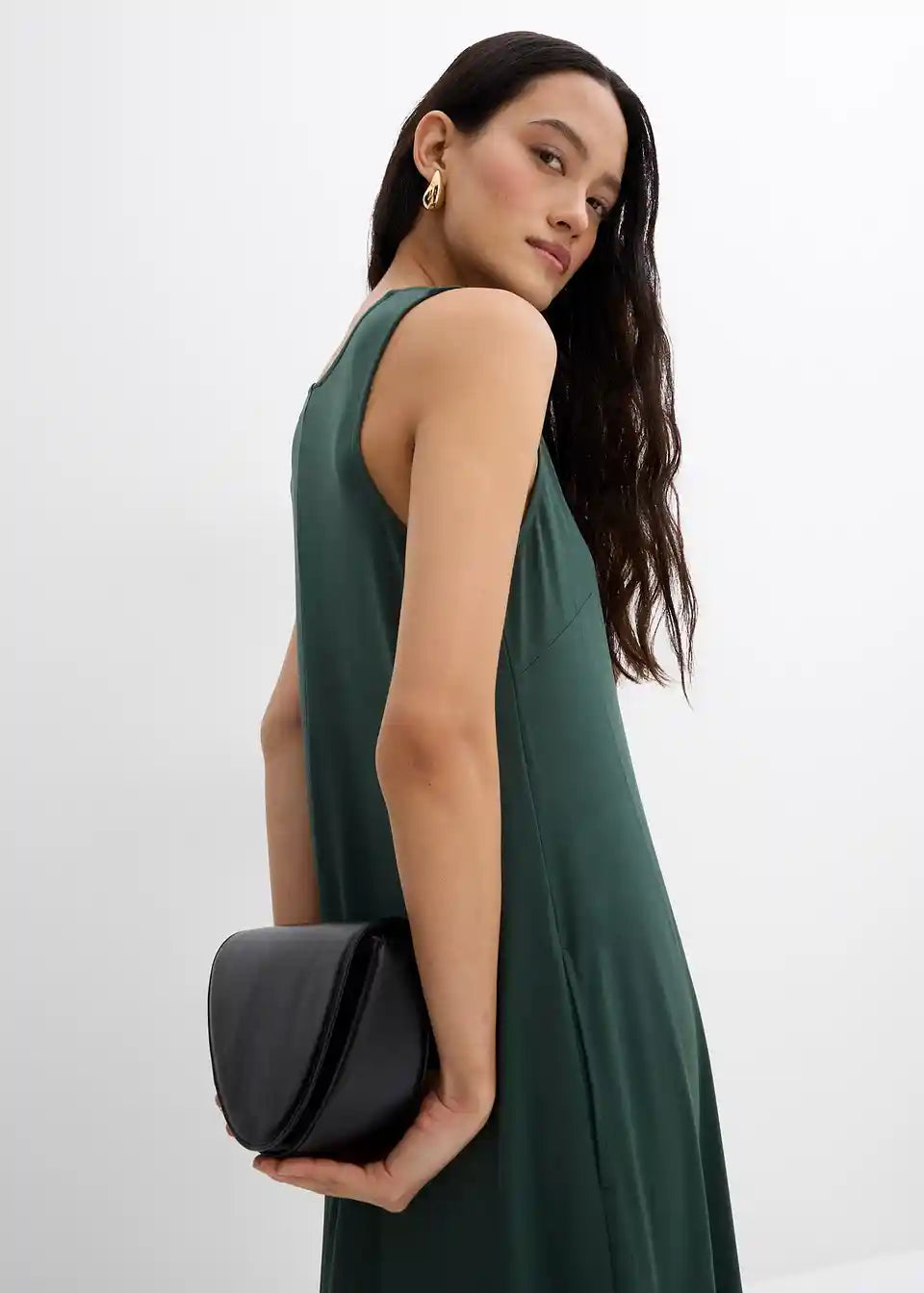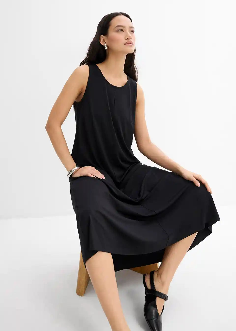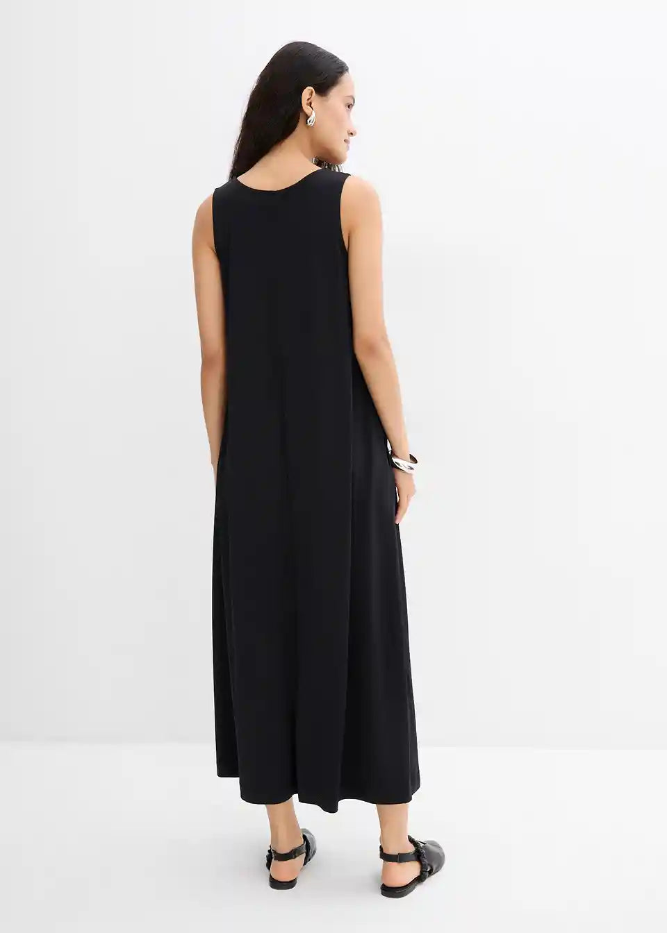 Ausgestelltes ärmelloses Kleid mit Seitentaschen in Midilänge aus knitterarmer Ware, gut geeignet für Reisen