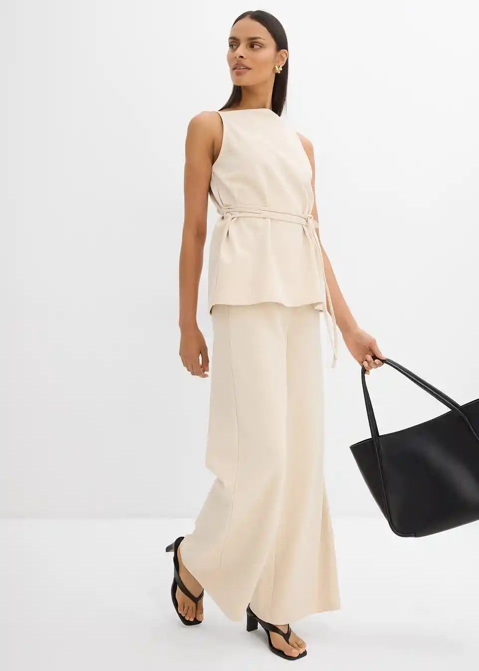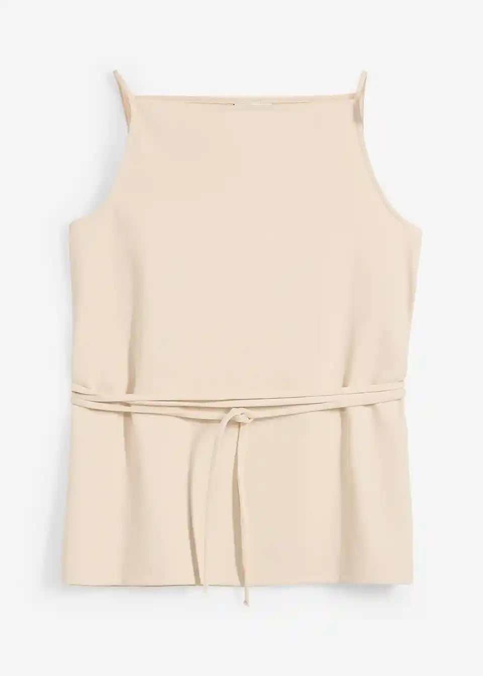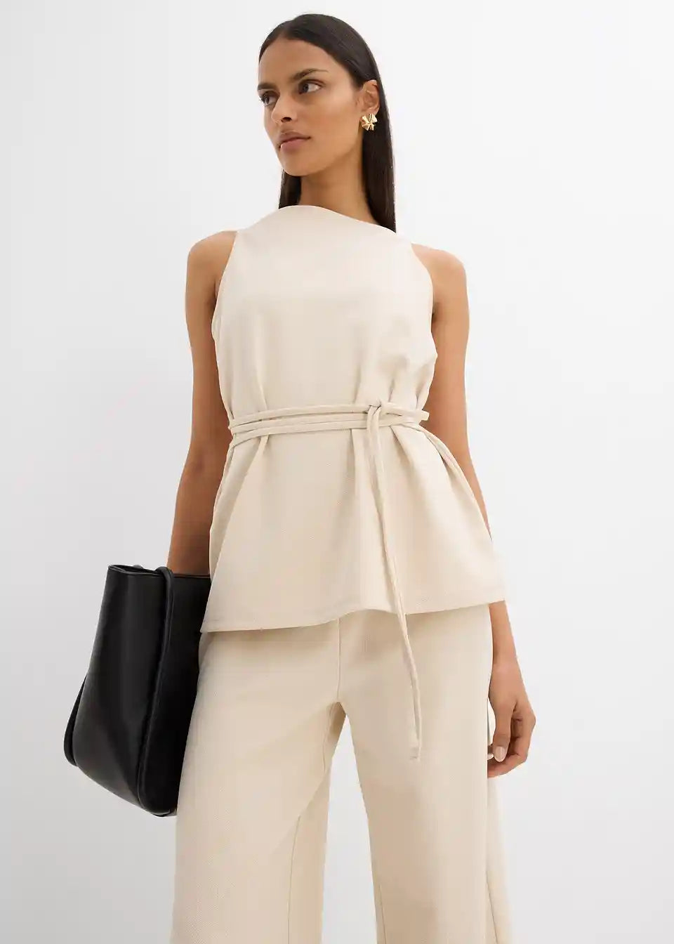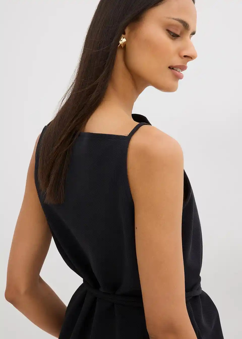Ärmelloses Top mit schmalem Taillengürtel aus Piqué