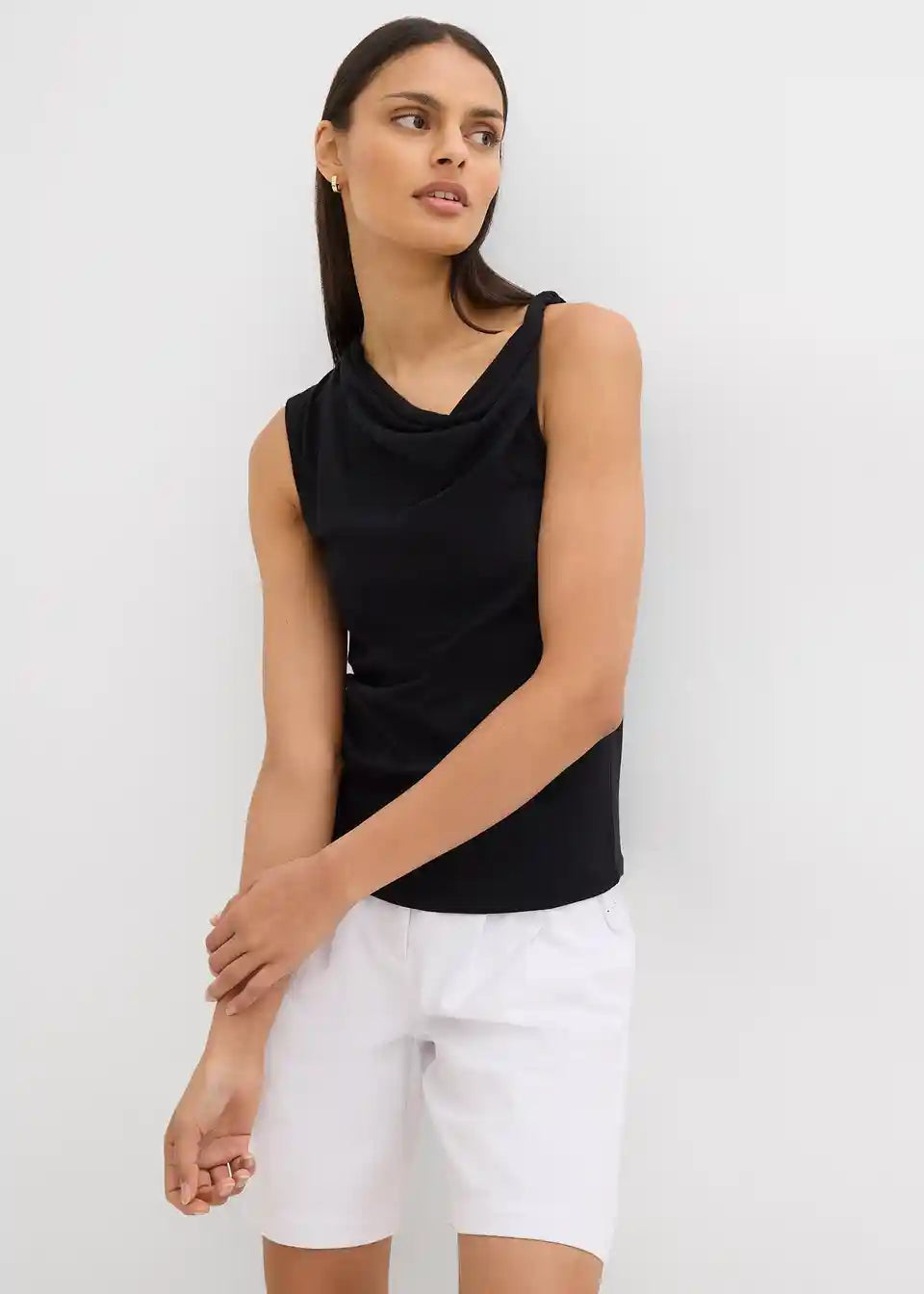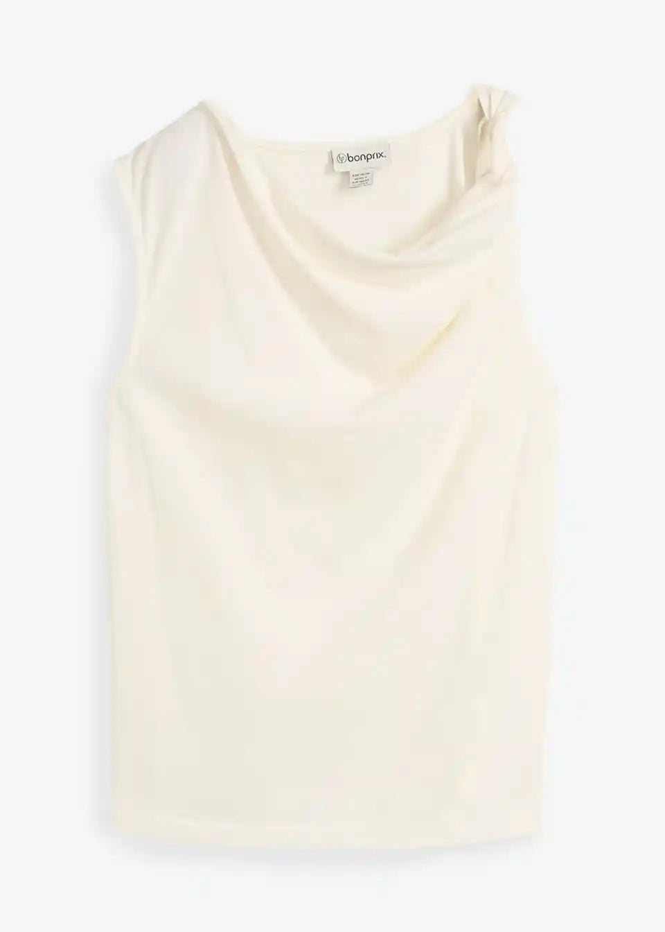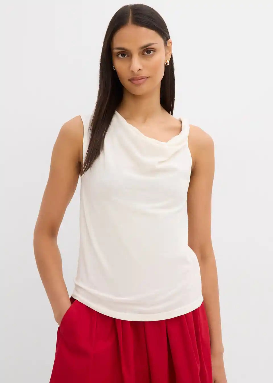 Top mit Wasserfallausschnitt und ärmellosem Design aus leichtem Strick
