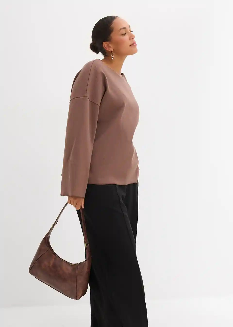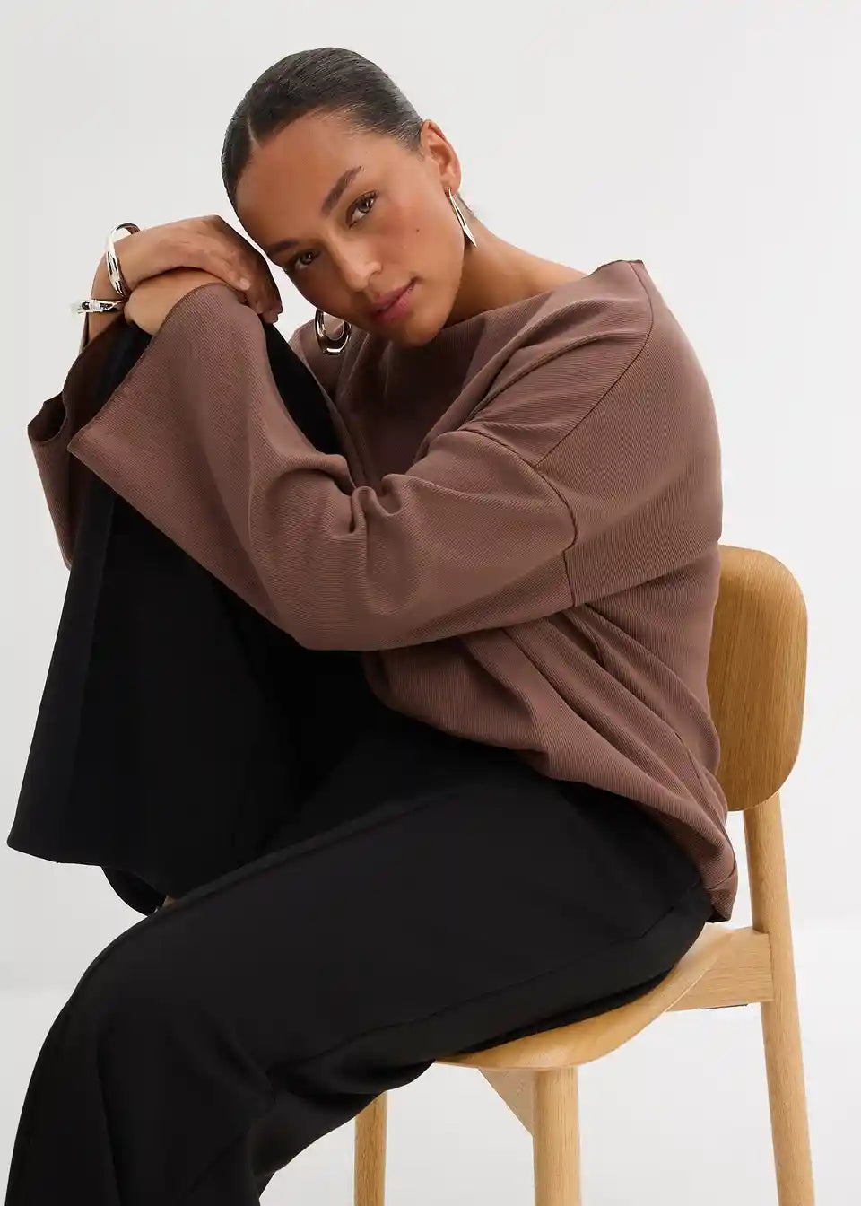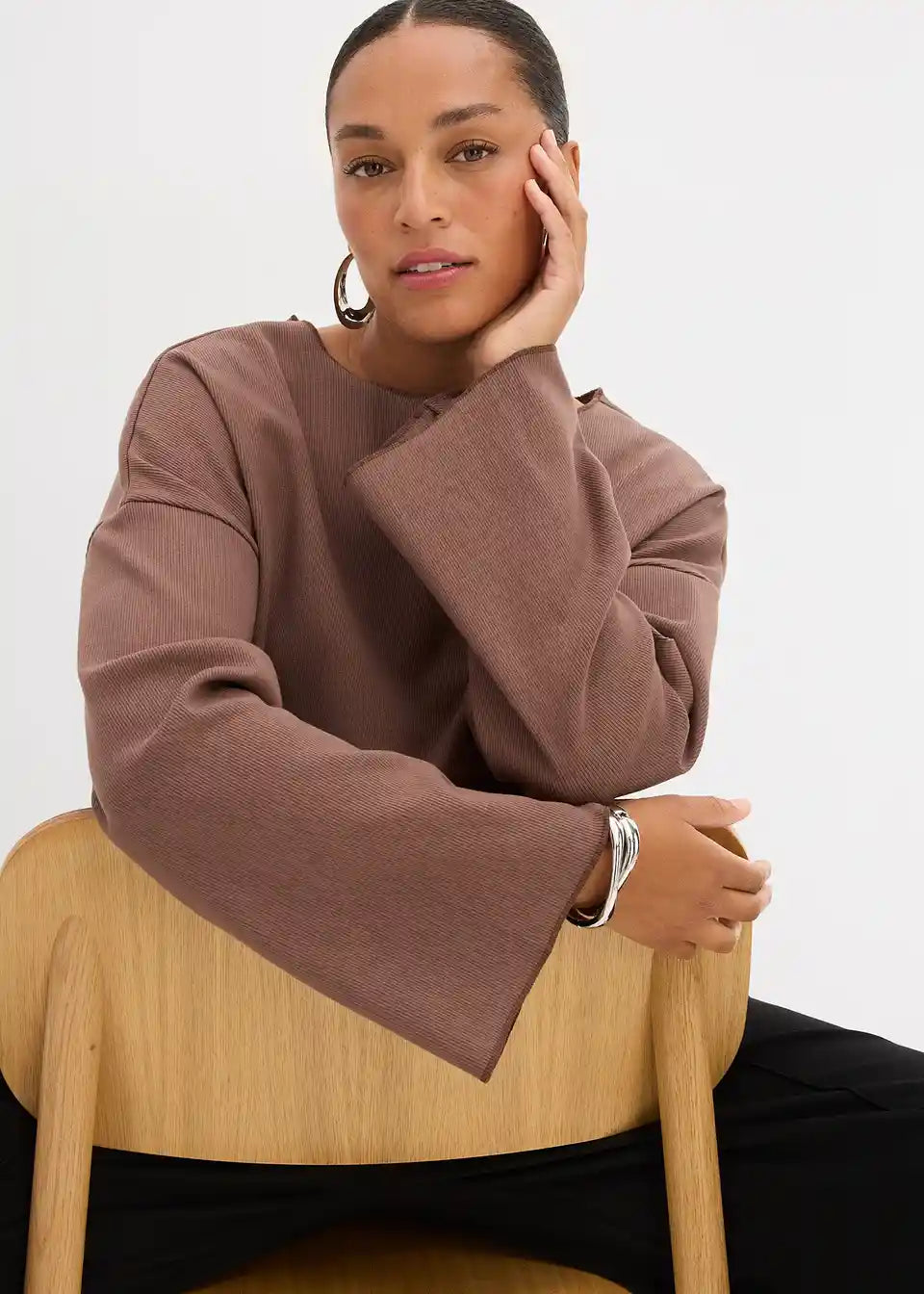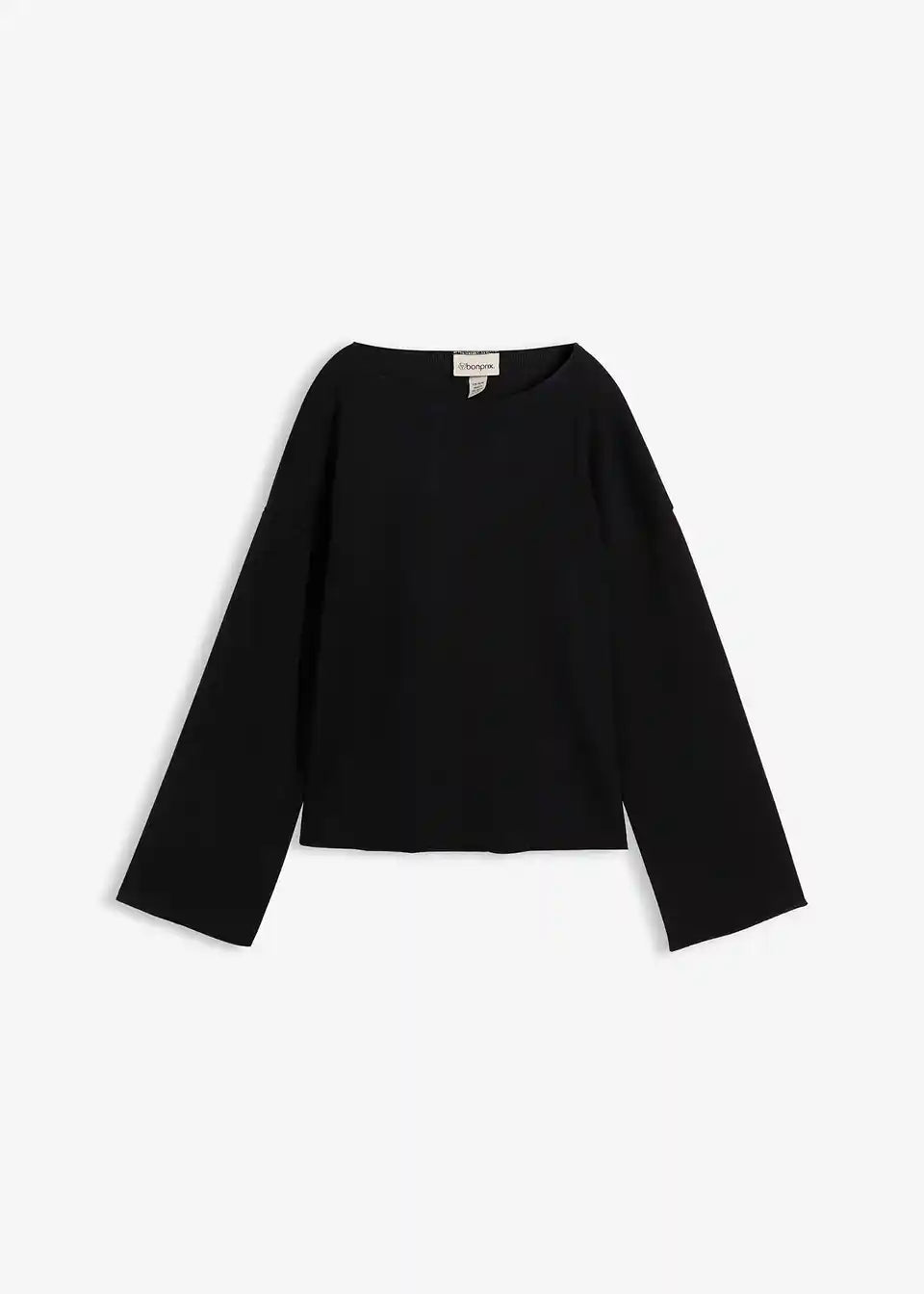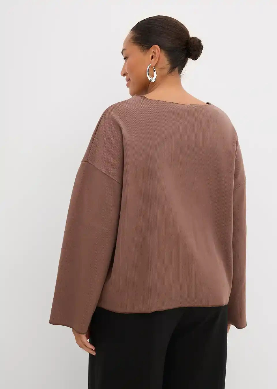 Rippshirt mit U-Boot-Ausschnitt und langen Ärmeln