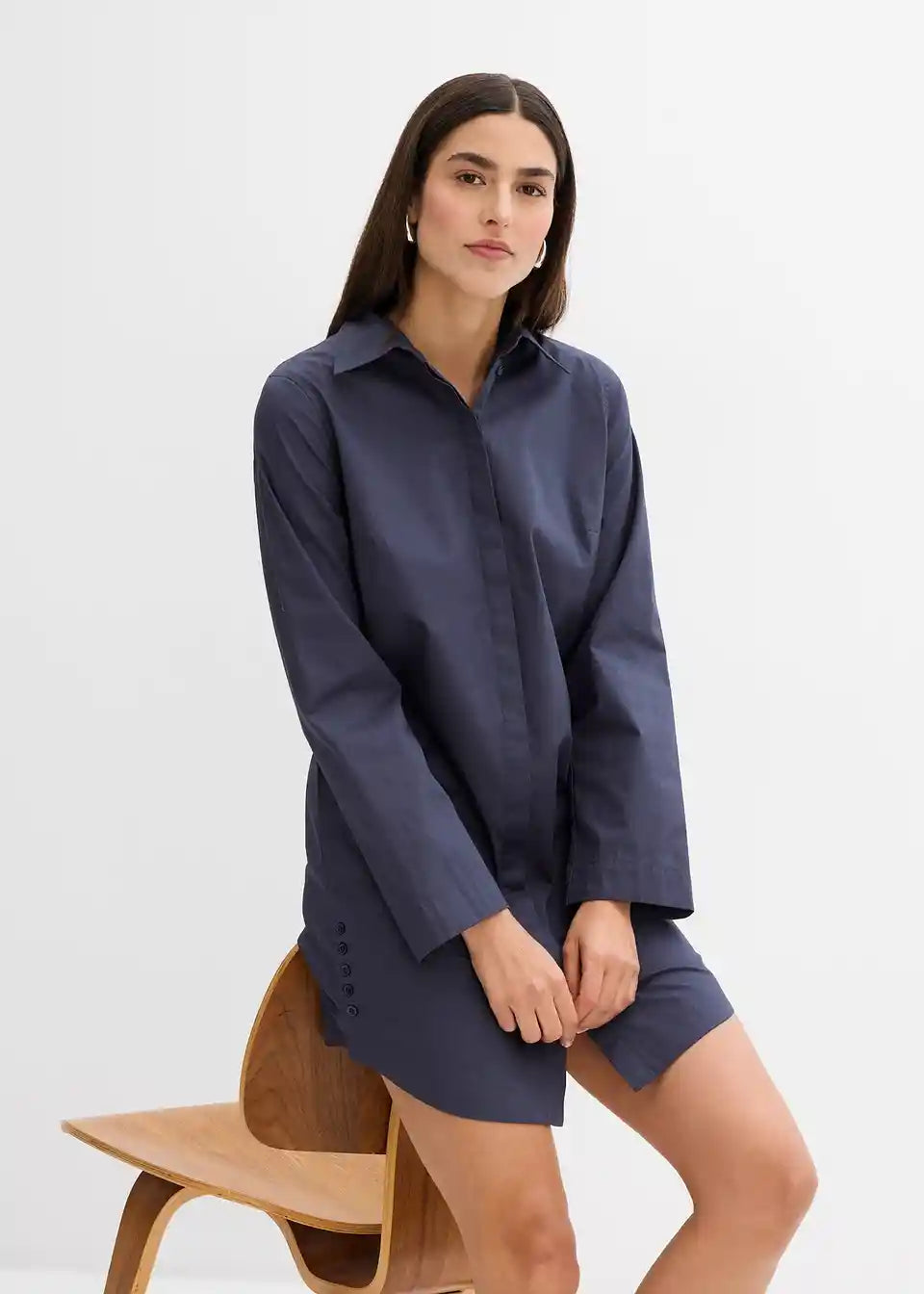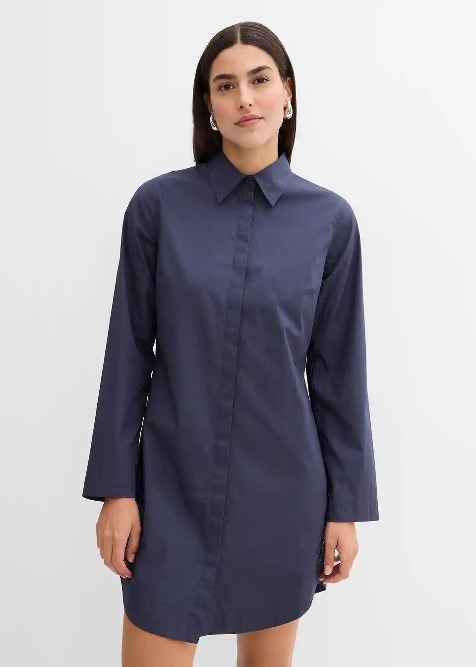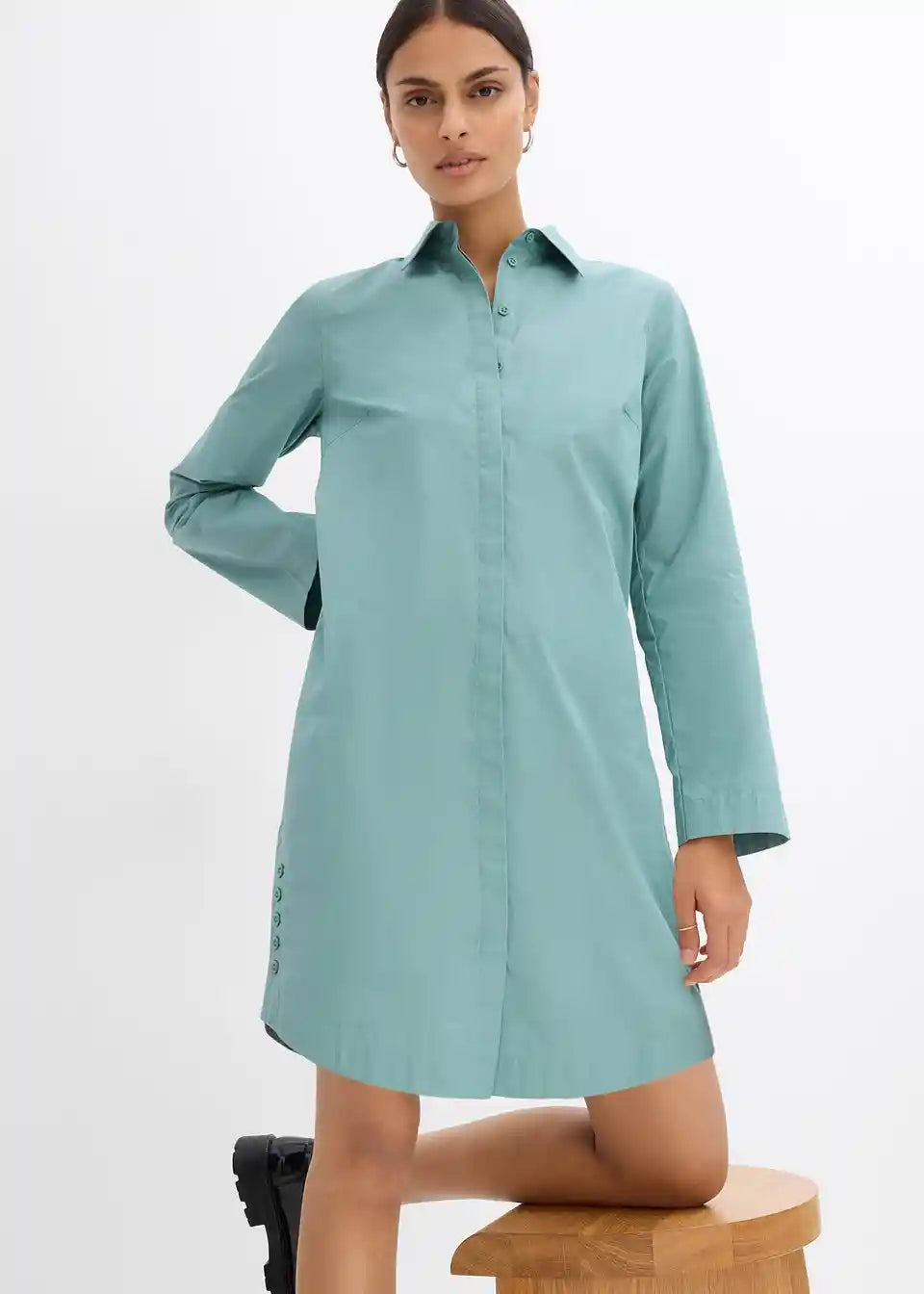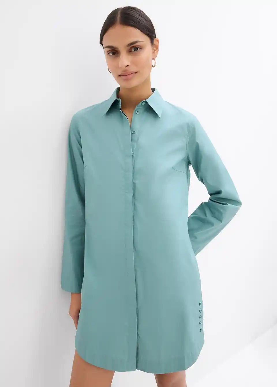 Hemdkleid in Midilänge aus reiner Baumwolle mit voluminösen Silhouette, einem klassischen spitzen Kragen und einem abgerundeten Saum mit seitlichen Knöpfen