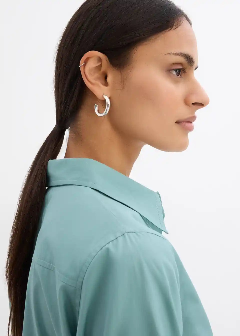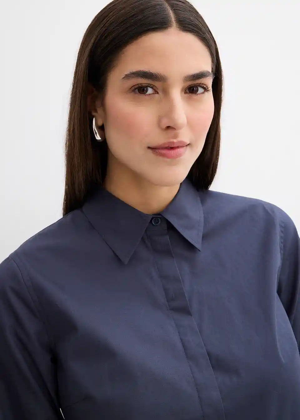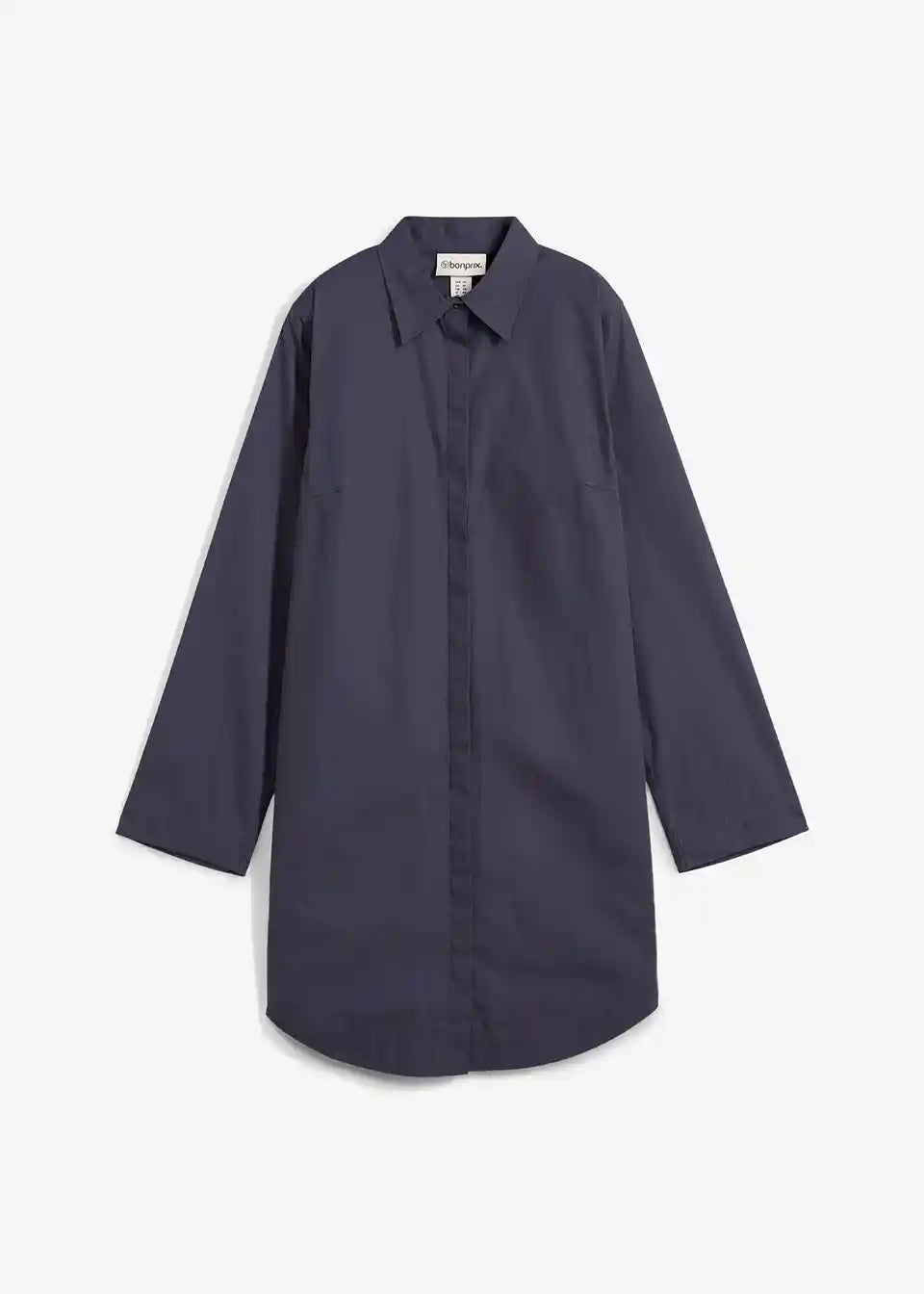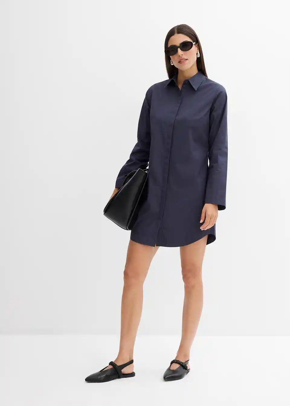 Hemdkleid in Midilänge aus reiner Baumwolle mit voluminösen Silhouette, einem klassischen spitzen Kragen und einem abgerundeten Saum mit seitlichen Knöpfen