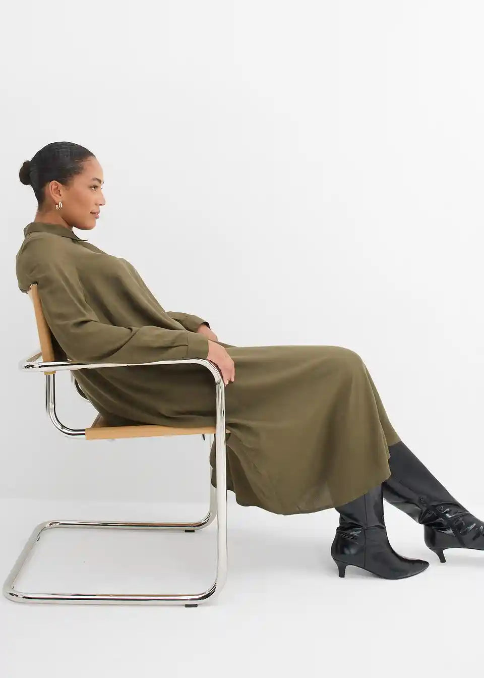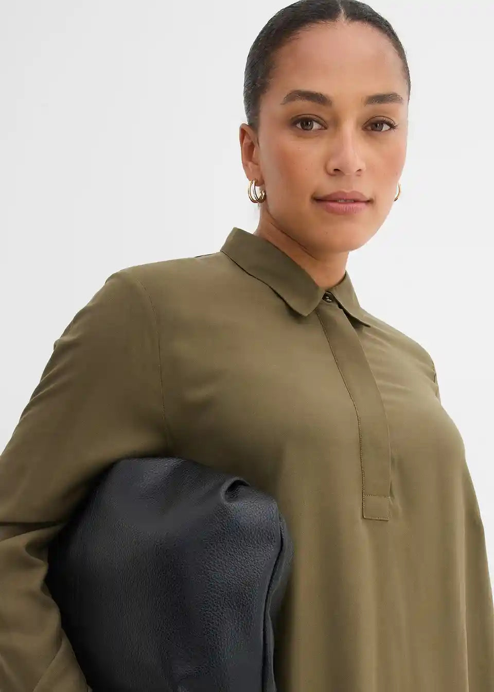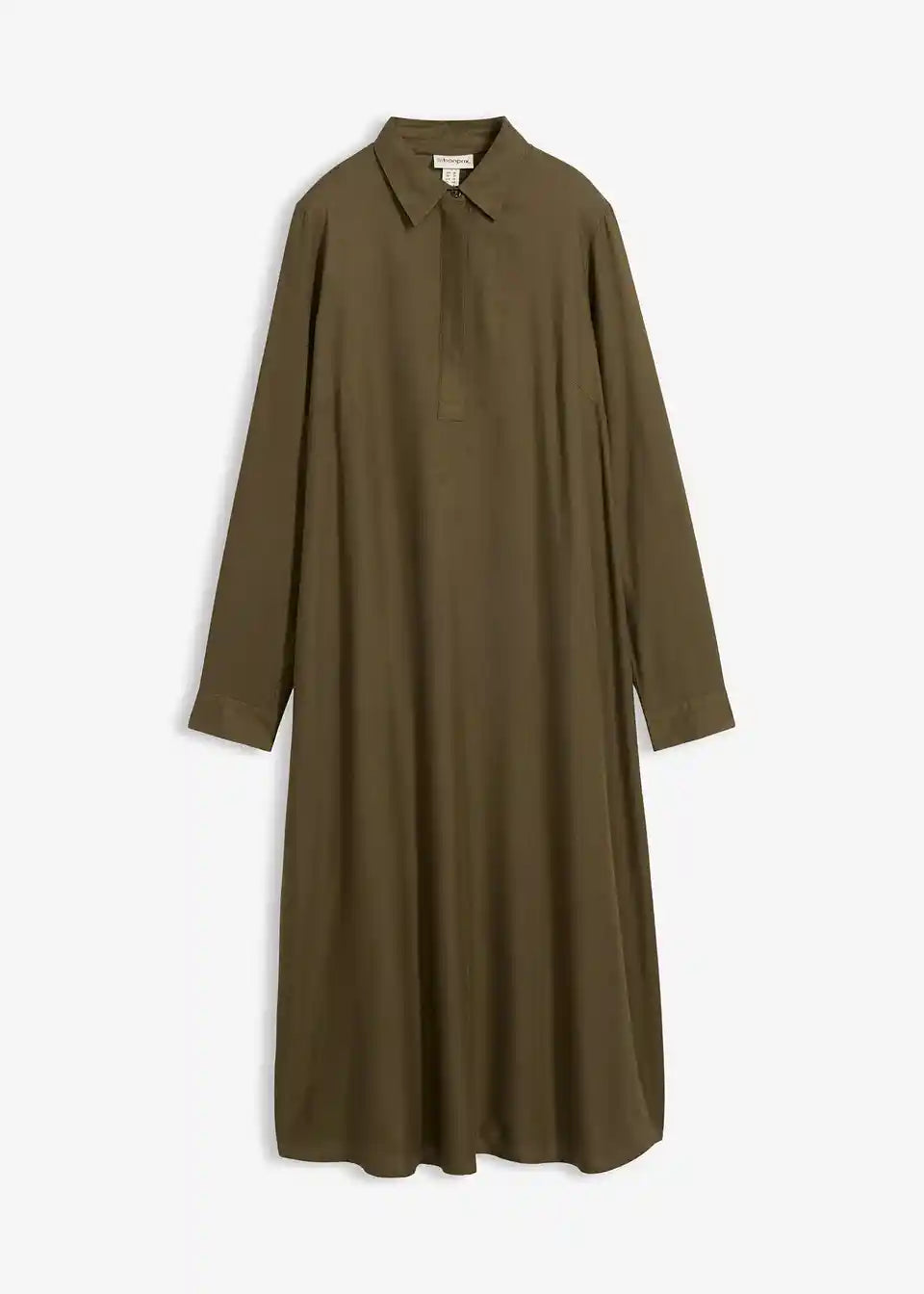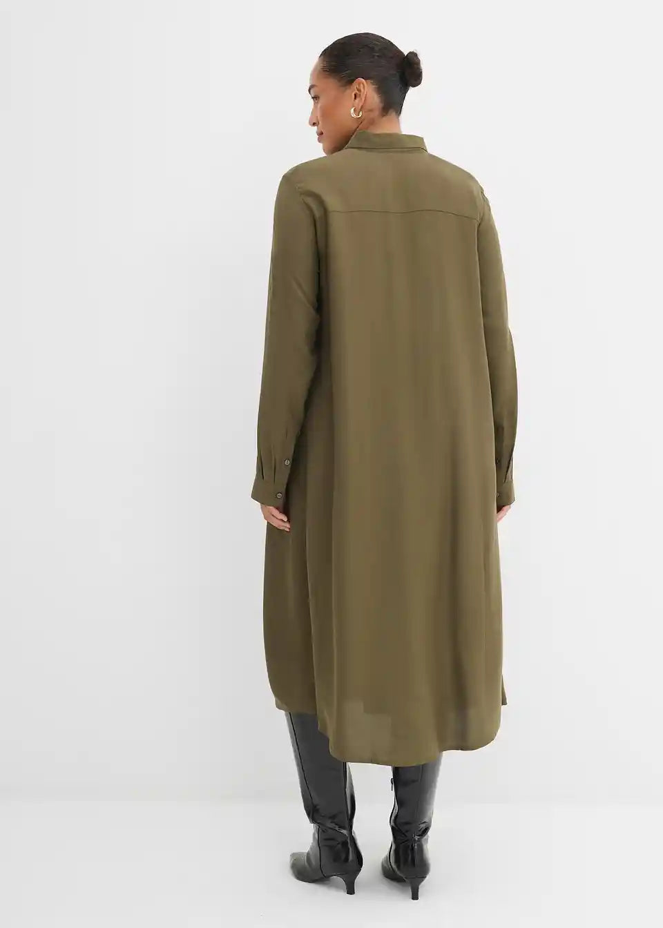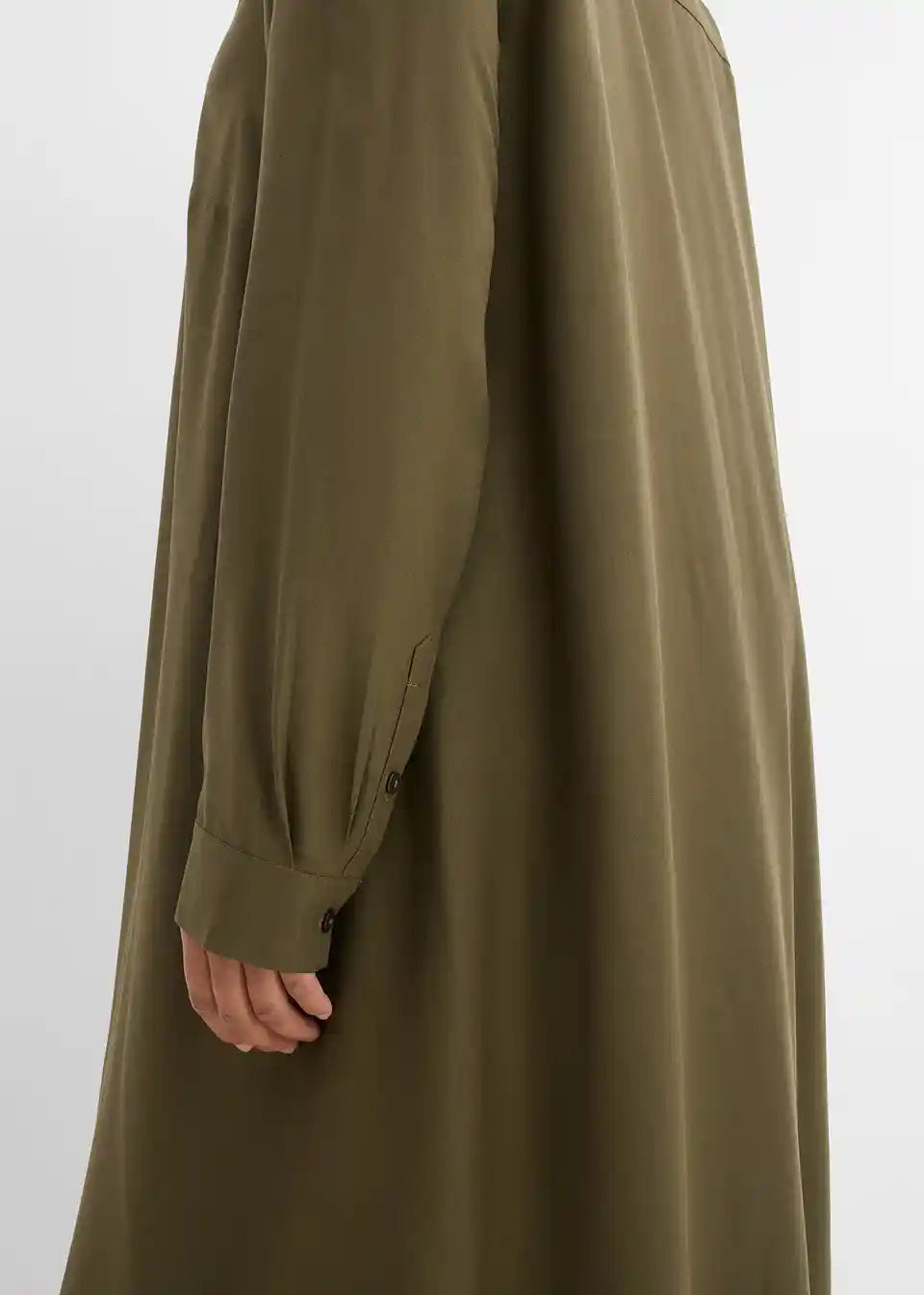 Blusenkleid mit Stehkragen, Knopfleiste an der Vorderseite und abgerundetem Saum