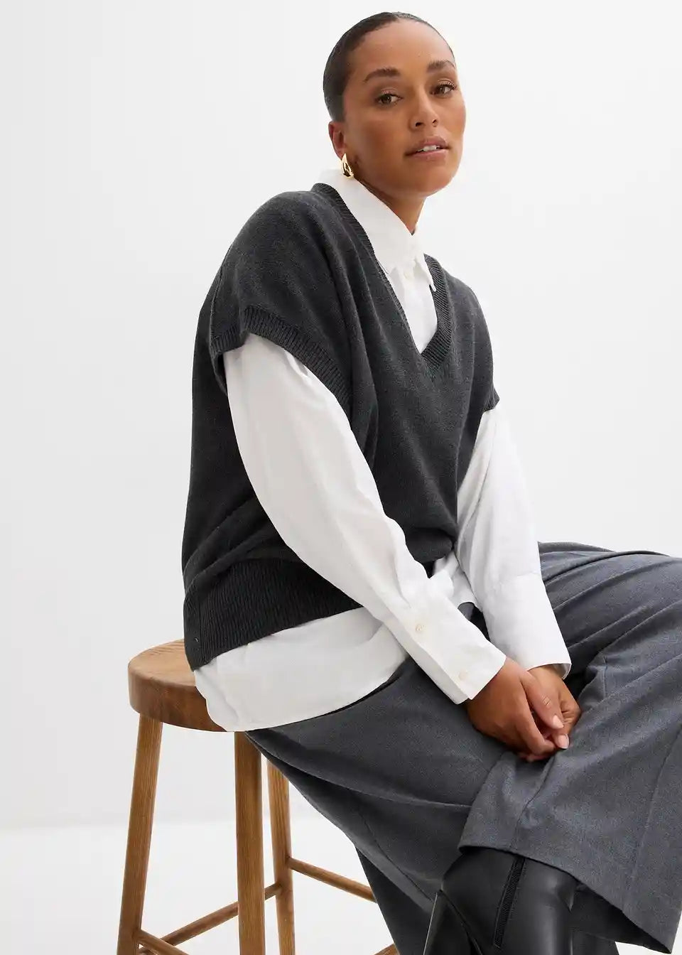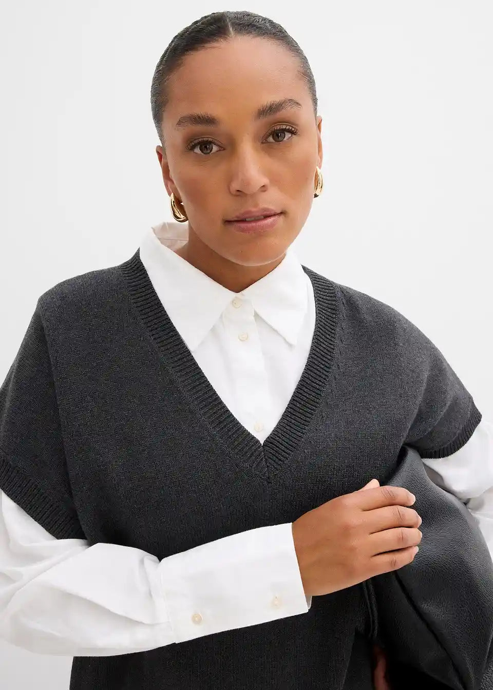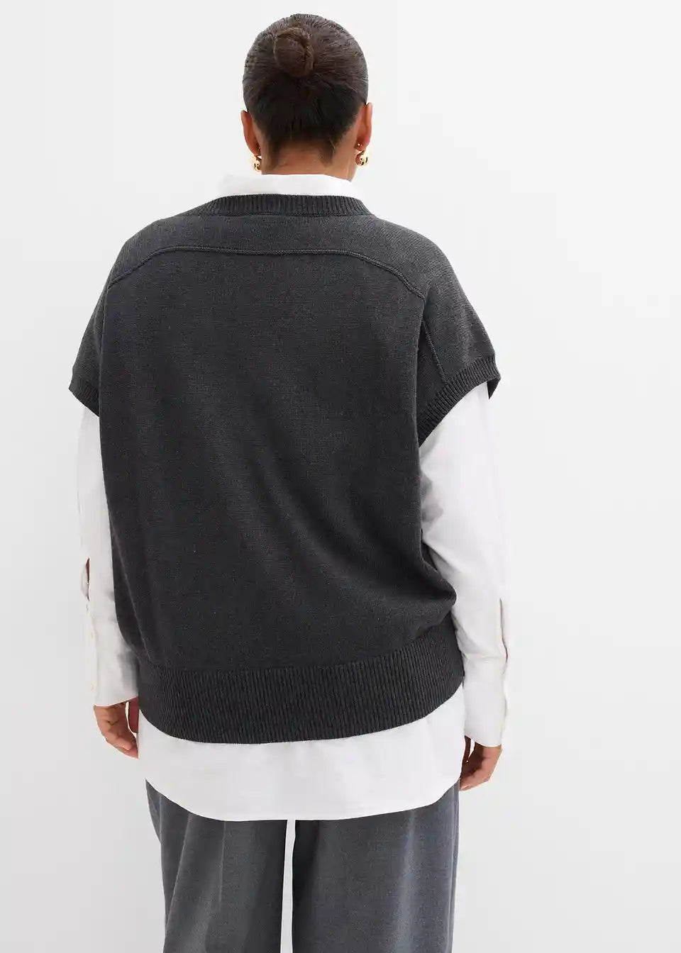 Ärmelloser Oversized-Pullunder mit V-Ausschnitt aus reiner Baumwolle