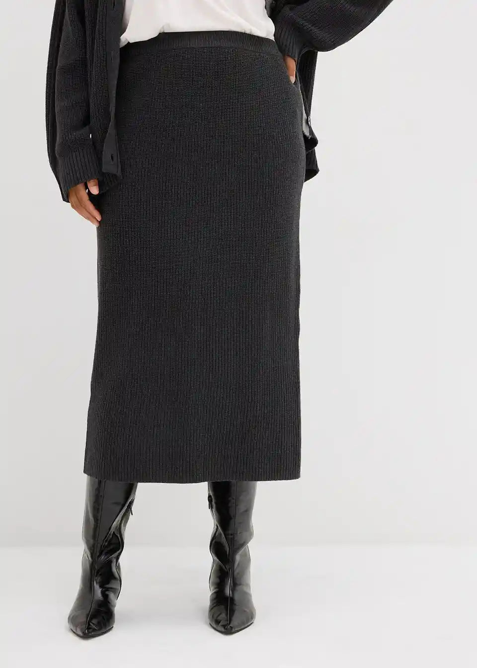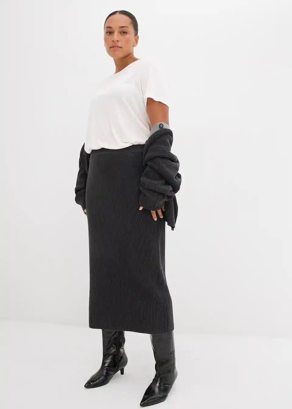 Slim-Fit Maxi-Strickrock mit elastischem Bund aus reiner Baumwolle