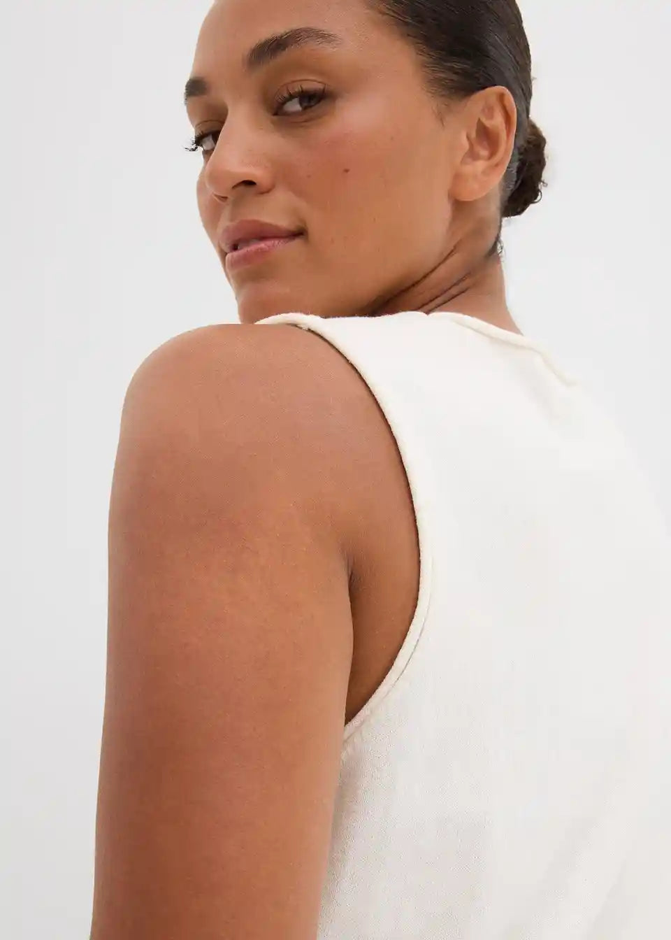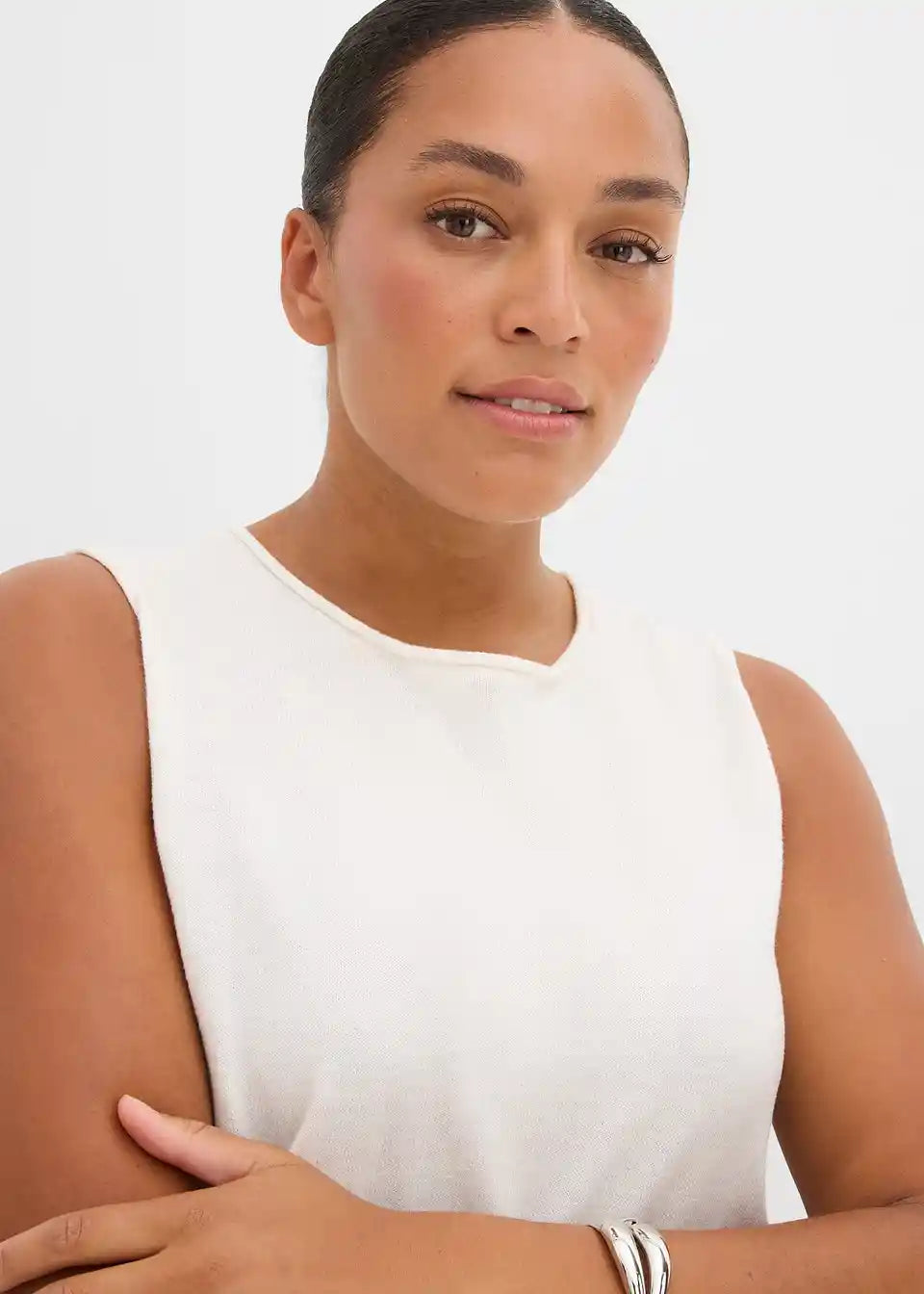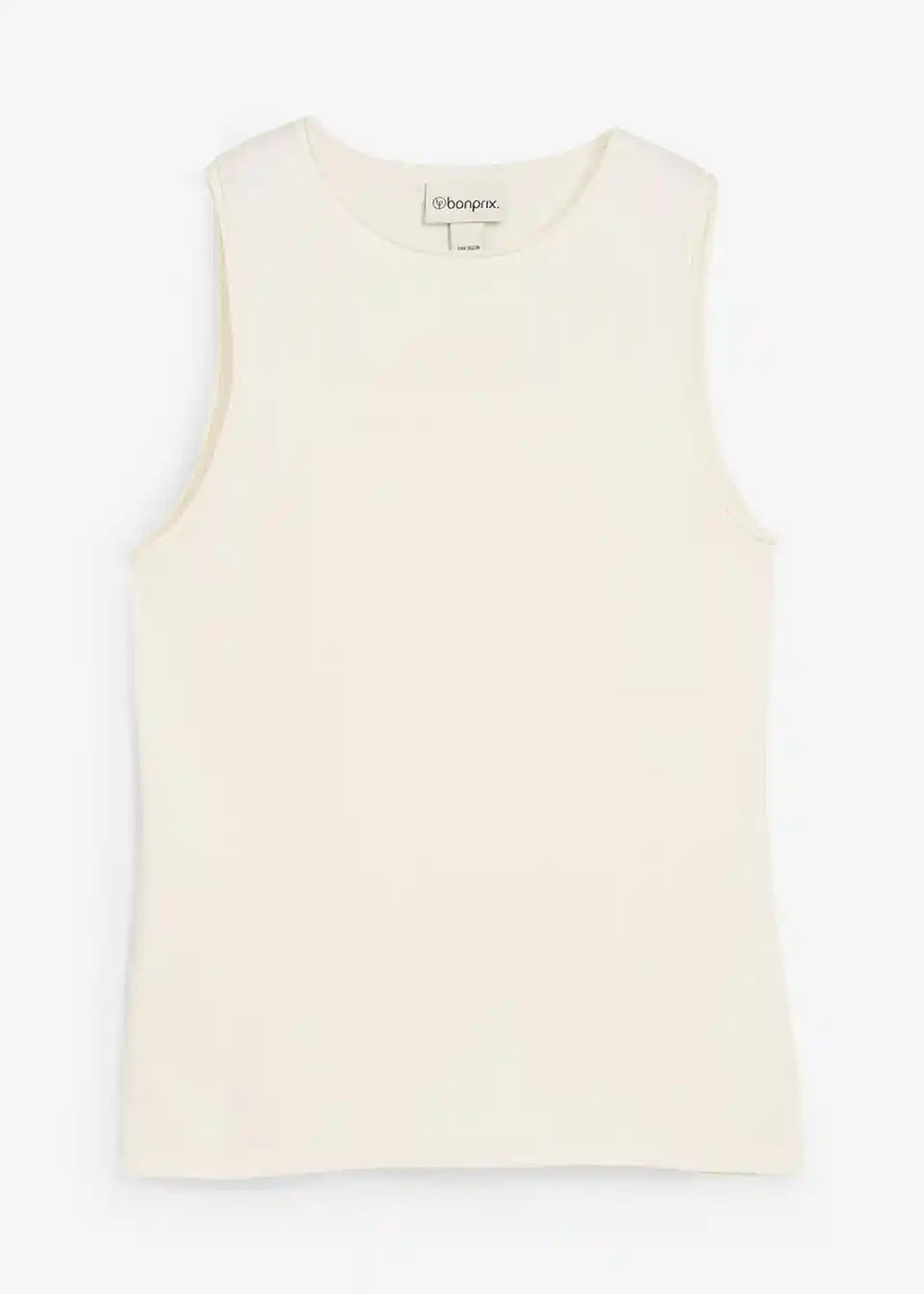 Hochgeschlossenes ärmelloses Stricktop mit Rundhalsausschnitt aus weicher Baumwolle
