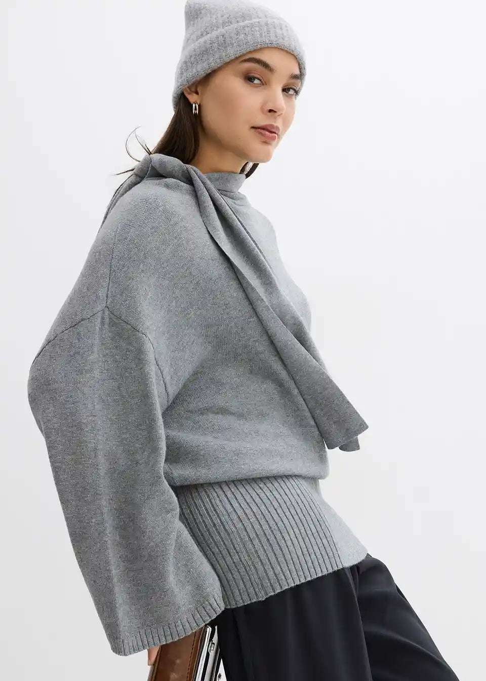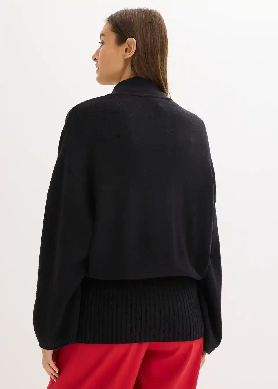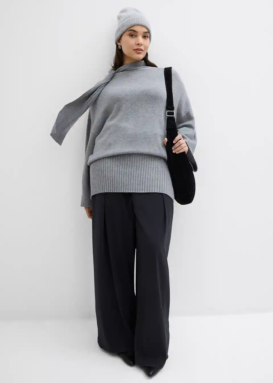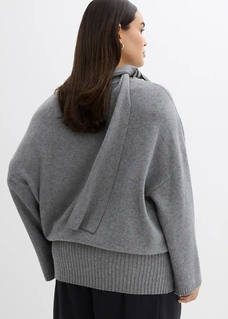 Oversize-Pullover mit breitem Rippbund und Schaldetail am Hals