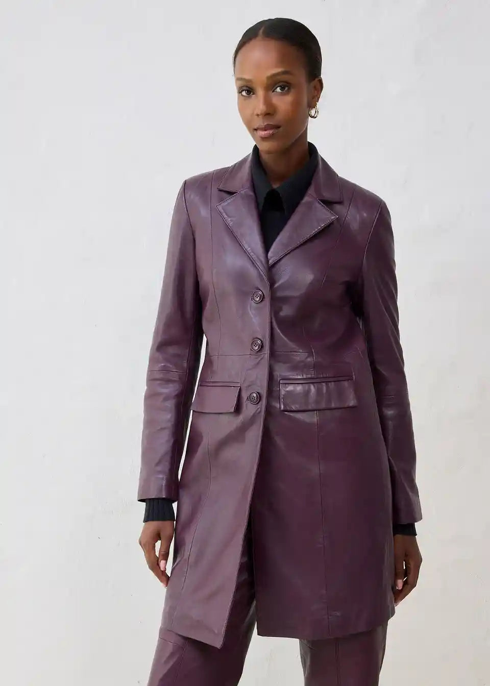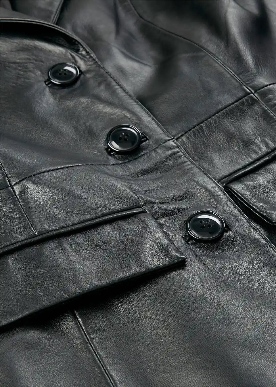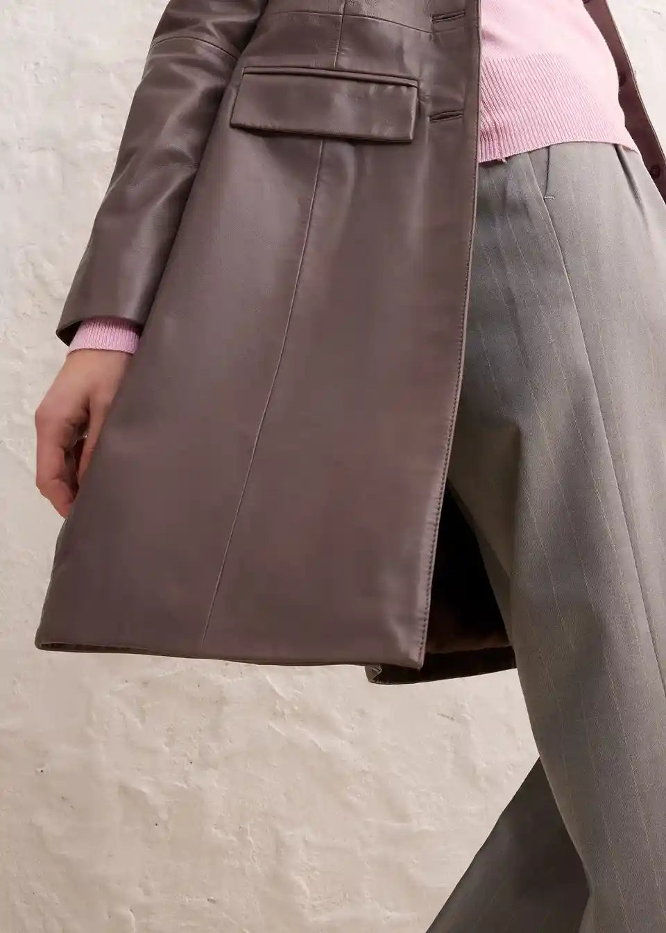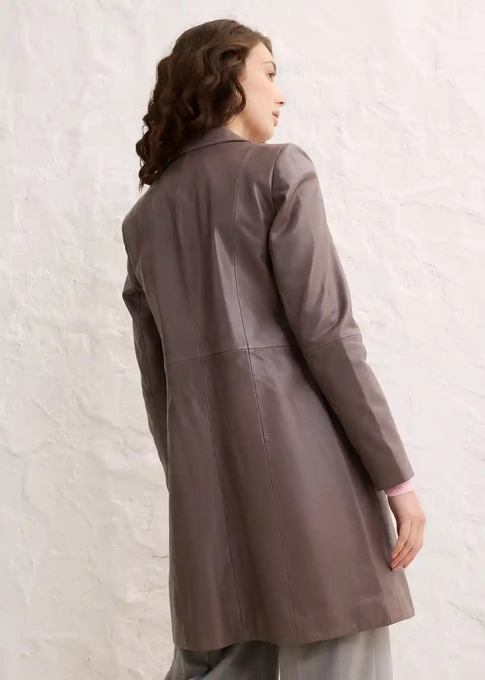 edler Blazermantel aus Leder mit Reverskragen und seitlichen Eingriffstaschen