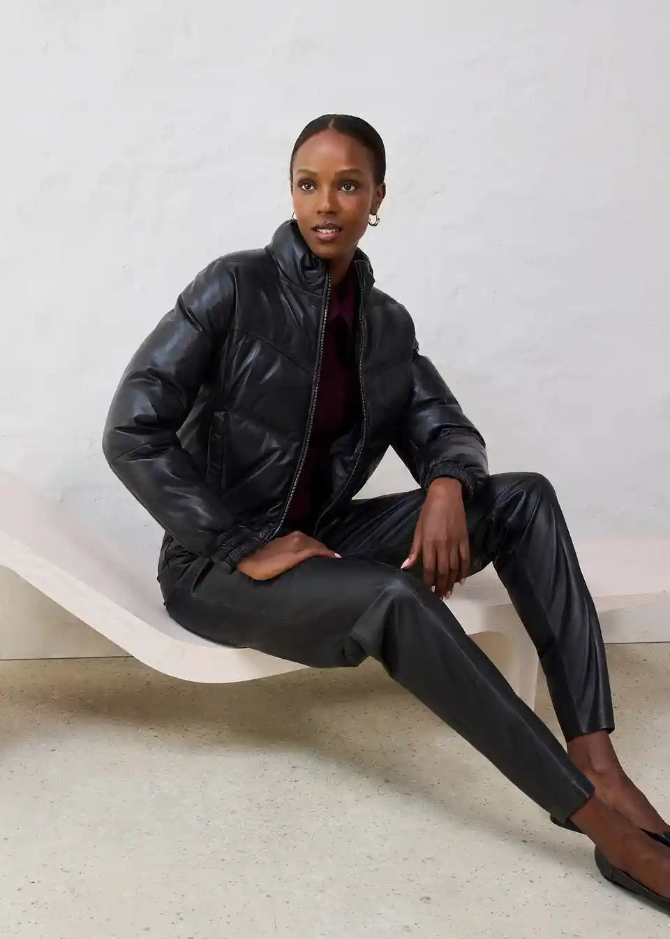 Ideal für den Übergang! Leicht gefütterte Leder-Steppjacke aus hochwertigem Lammnappa,