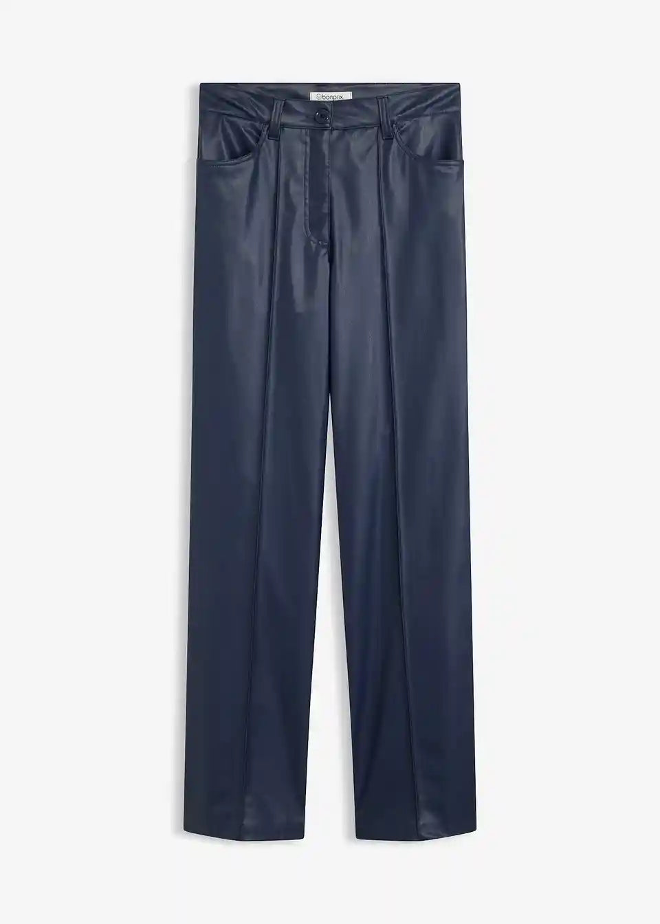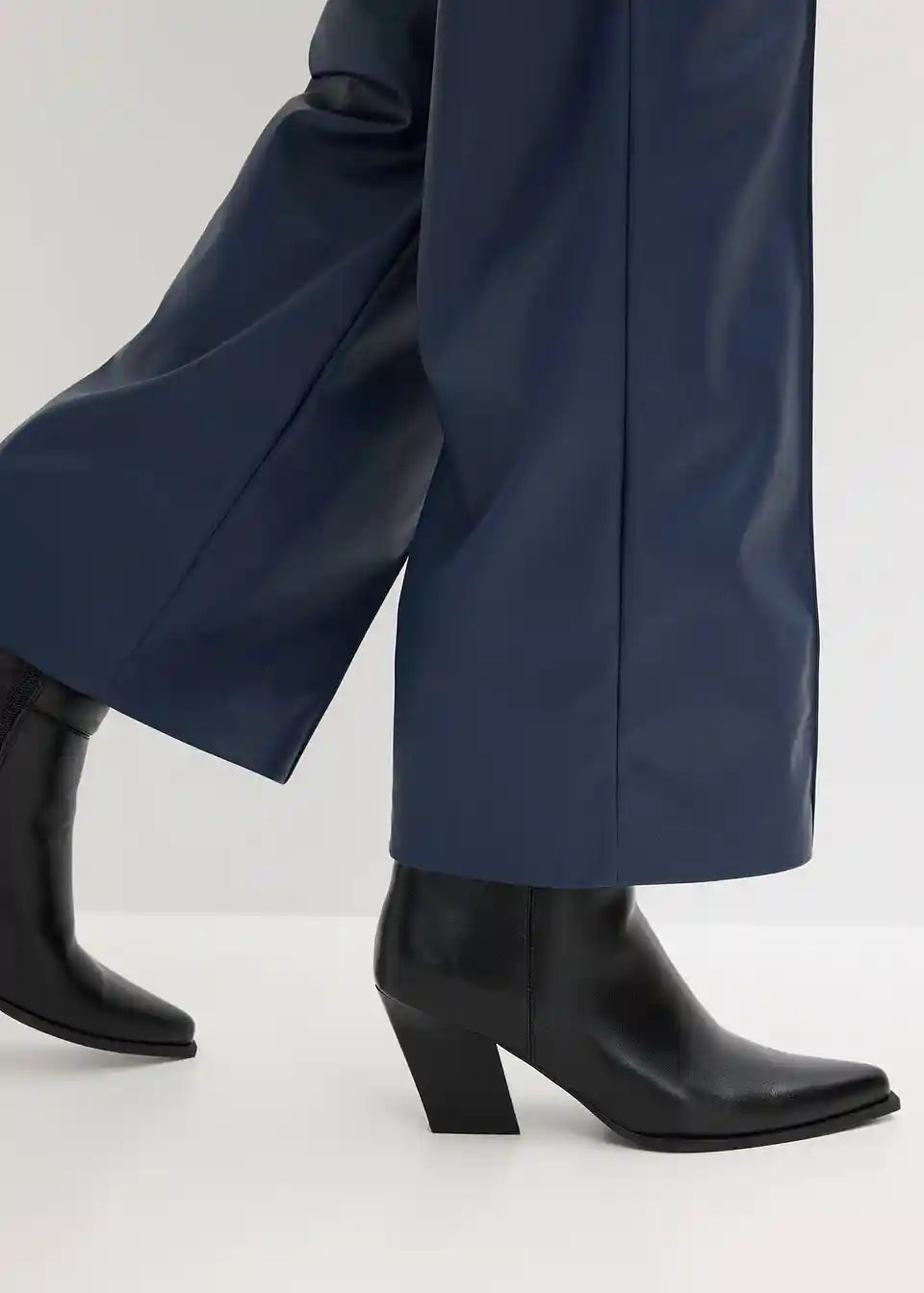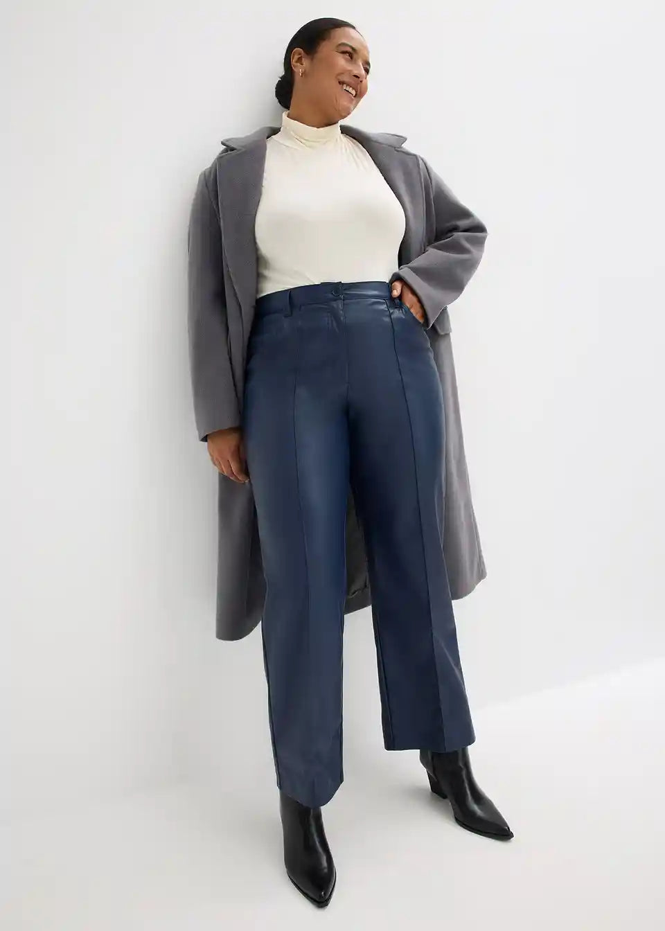 schicke Lederimitat-Wide Leg Hose mit Biese