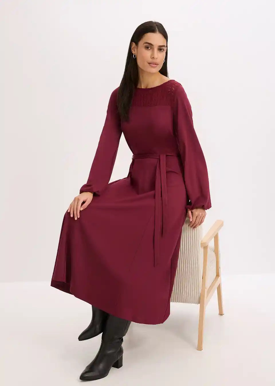 elegantes Punto Kleid mit Spitze