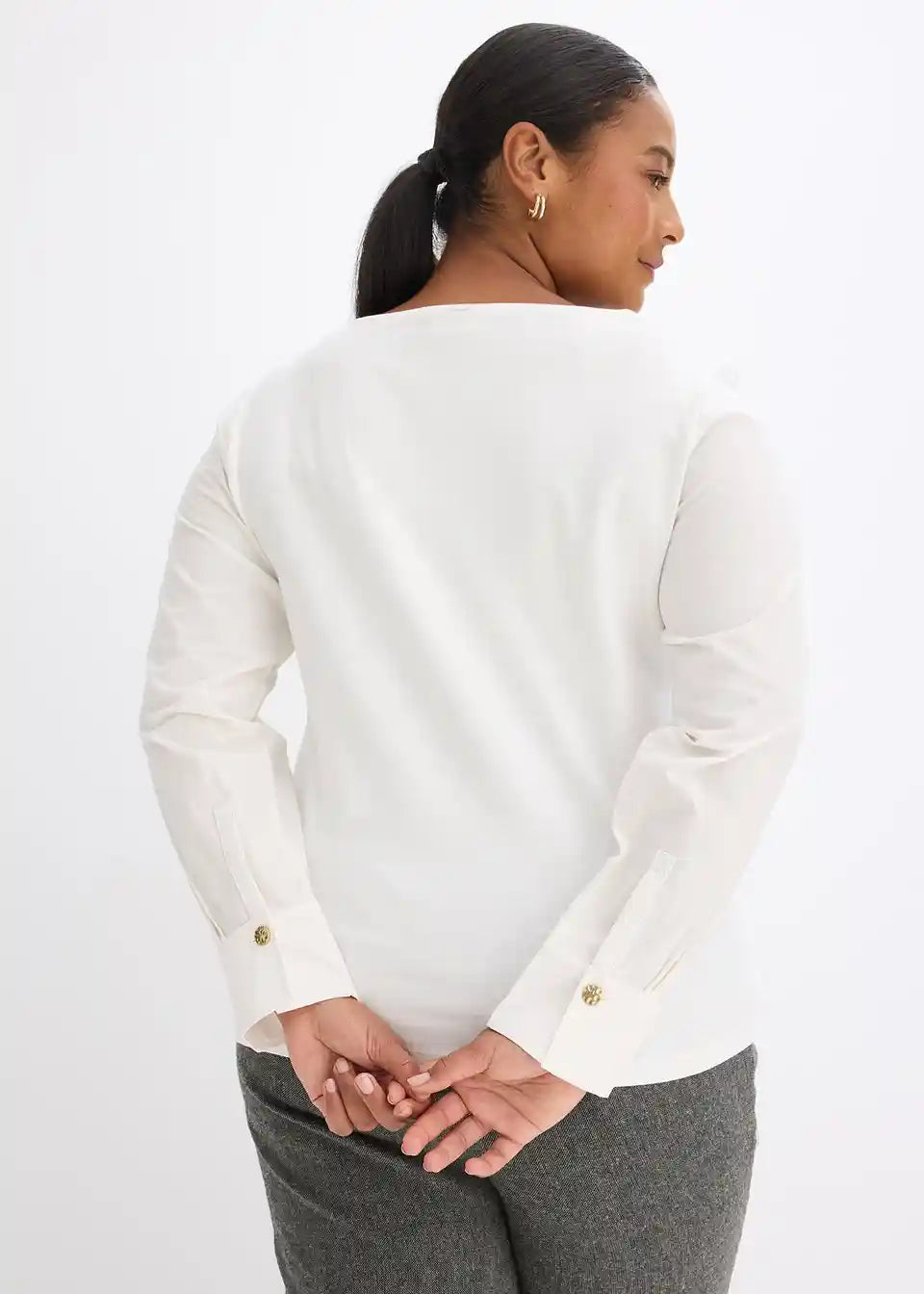 modernes Baumwoll-Langarmshirt mit Ärmeln aus Popeline