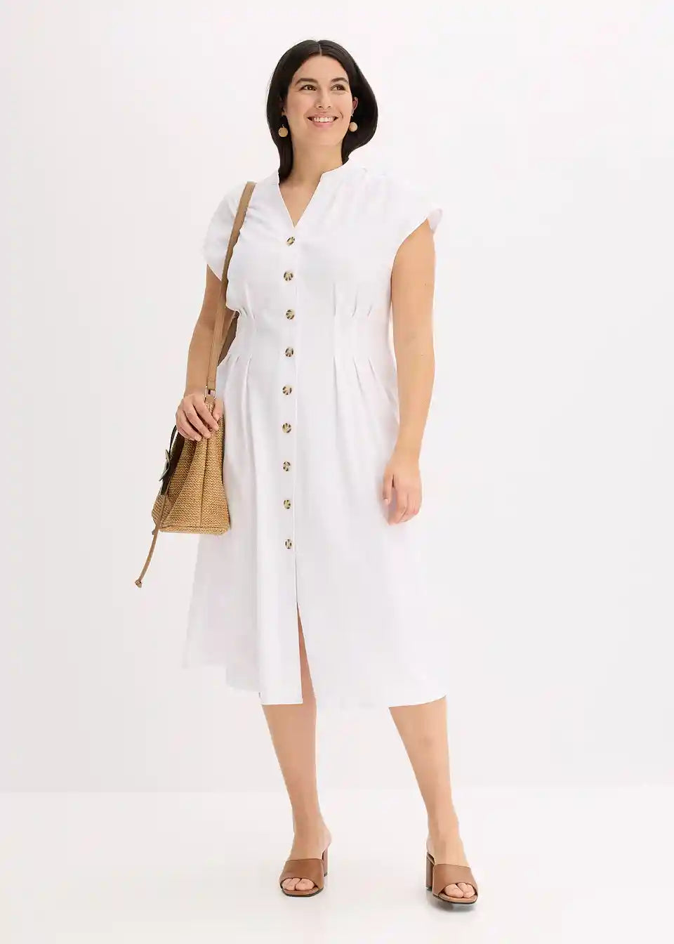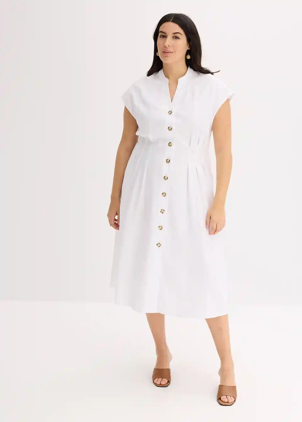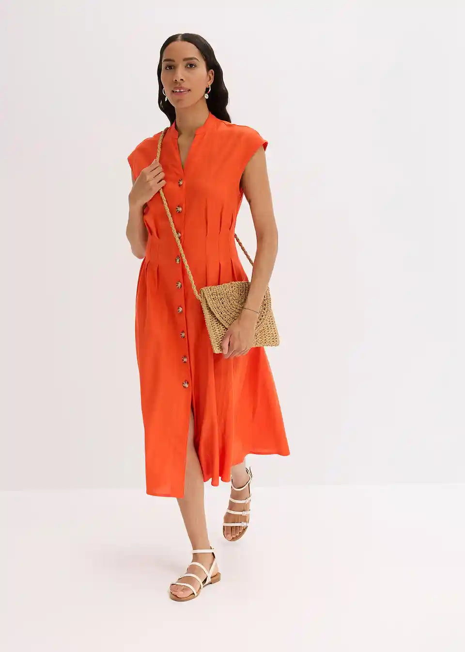 modernes tailliertes Kleid aus luftigem Leinenmix