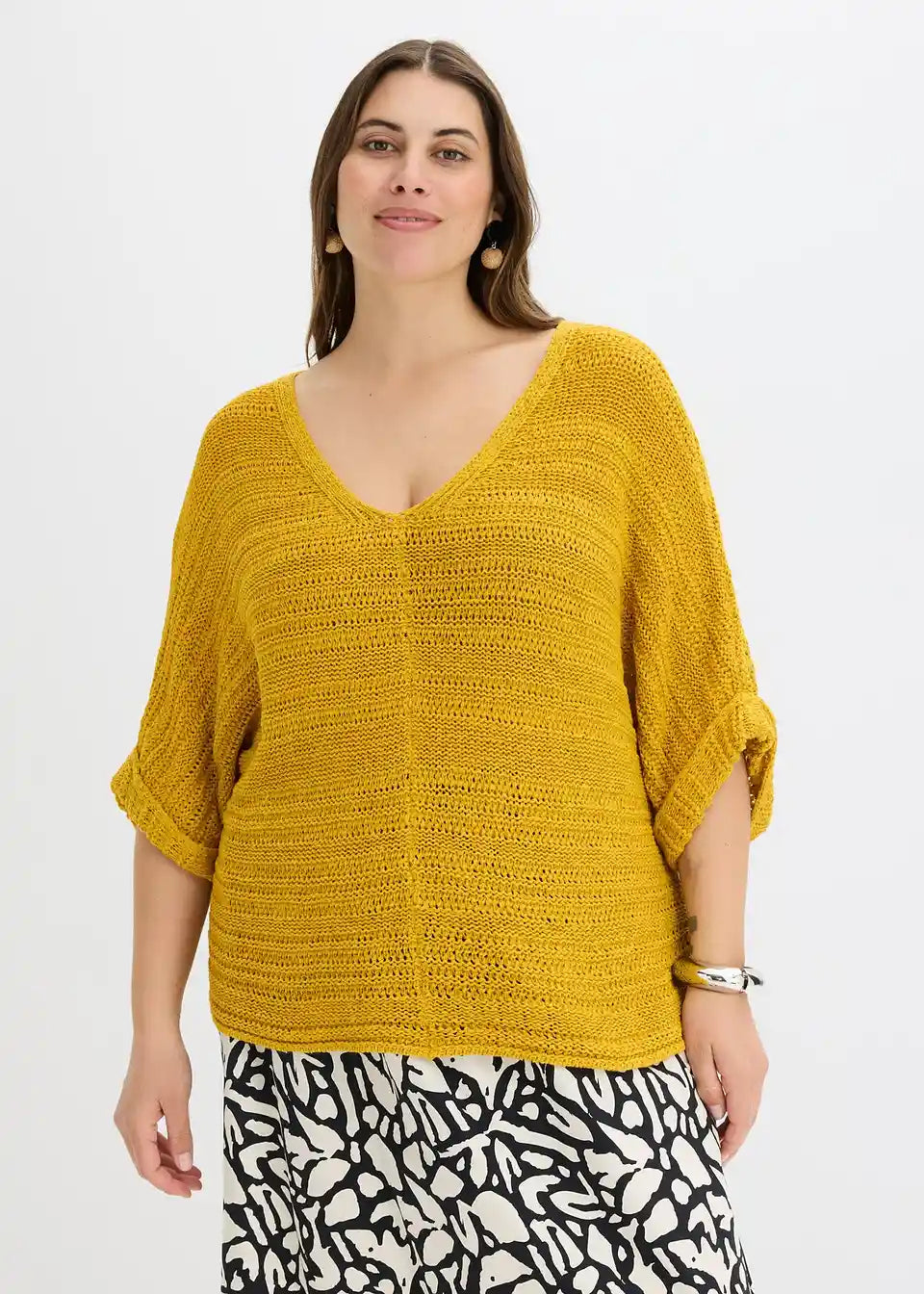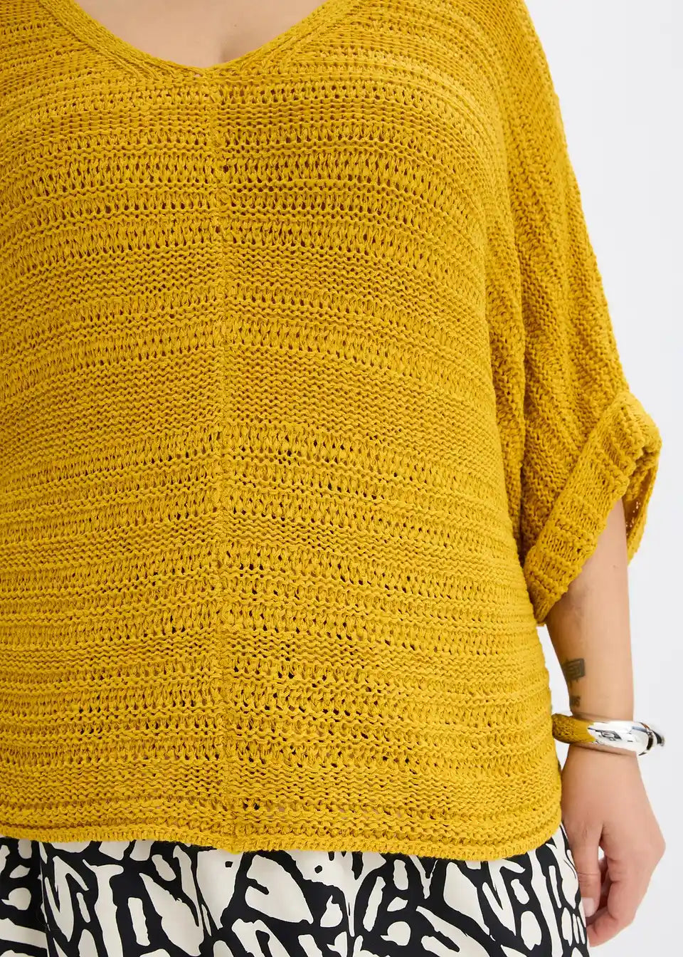 bequemer und weit geschnittener Pullover mit Bändchengarn
