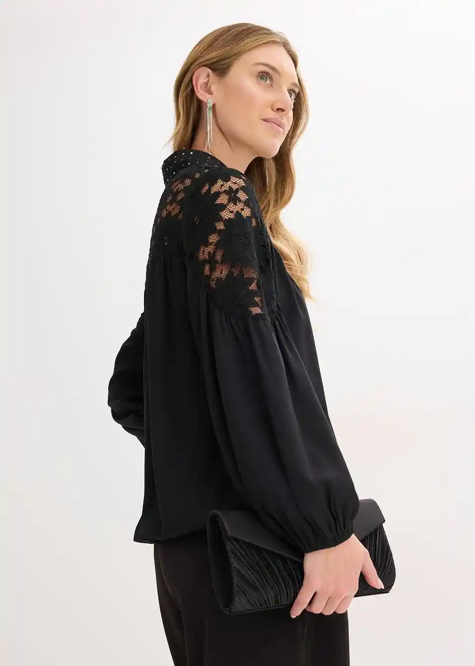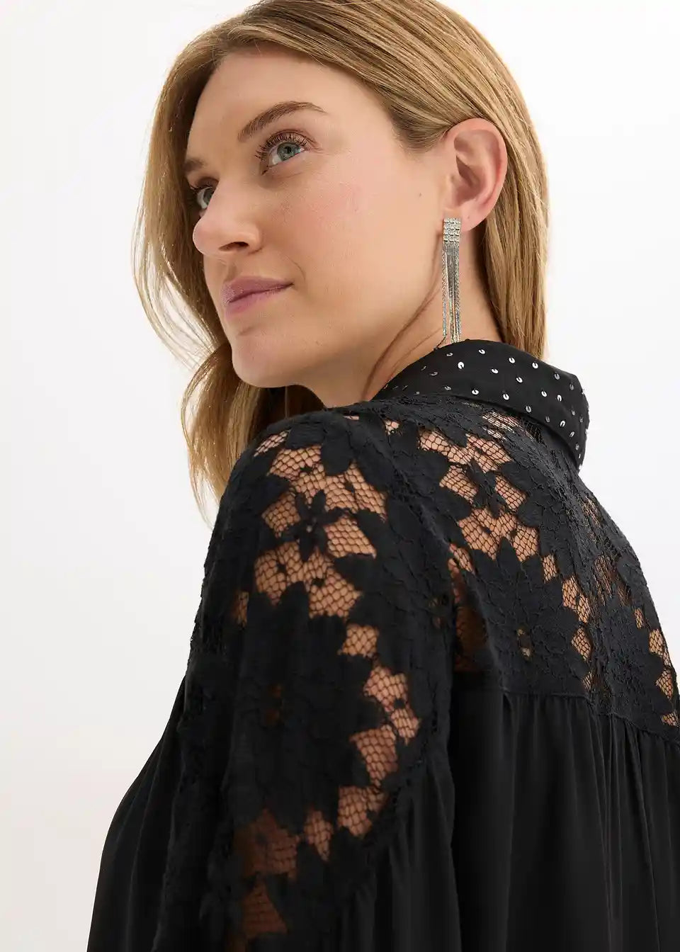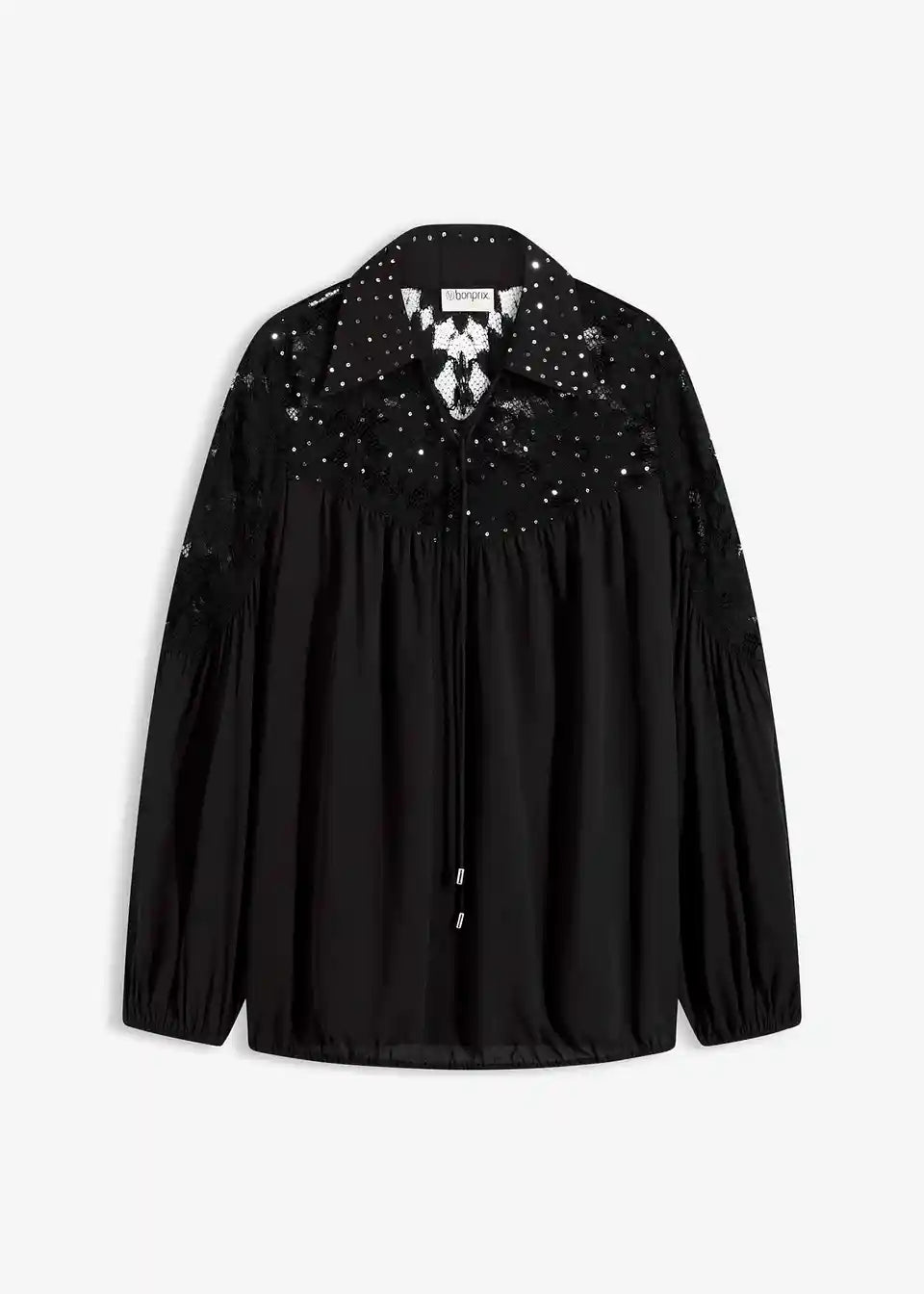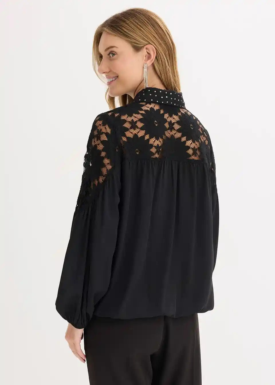 Verspielt und Modern: Bluse mit Spitzen-Einsatz und Schnürung am Kragen
