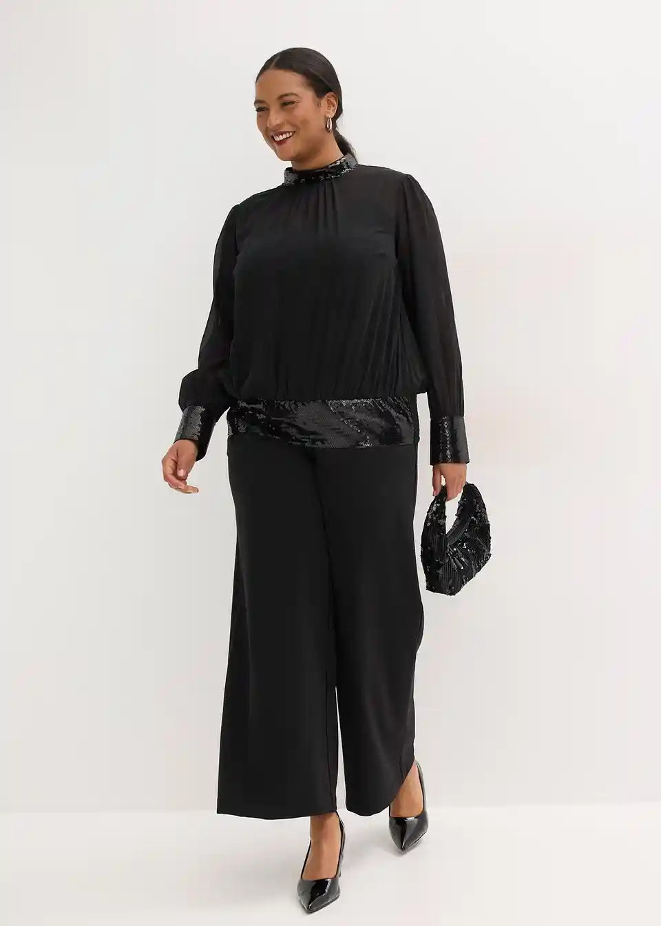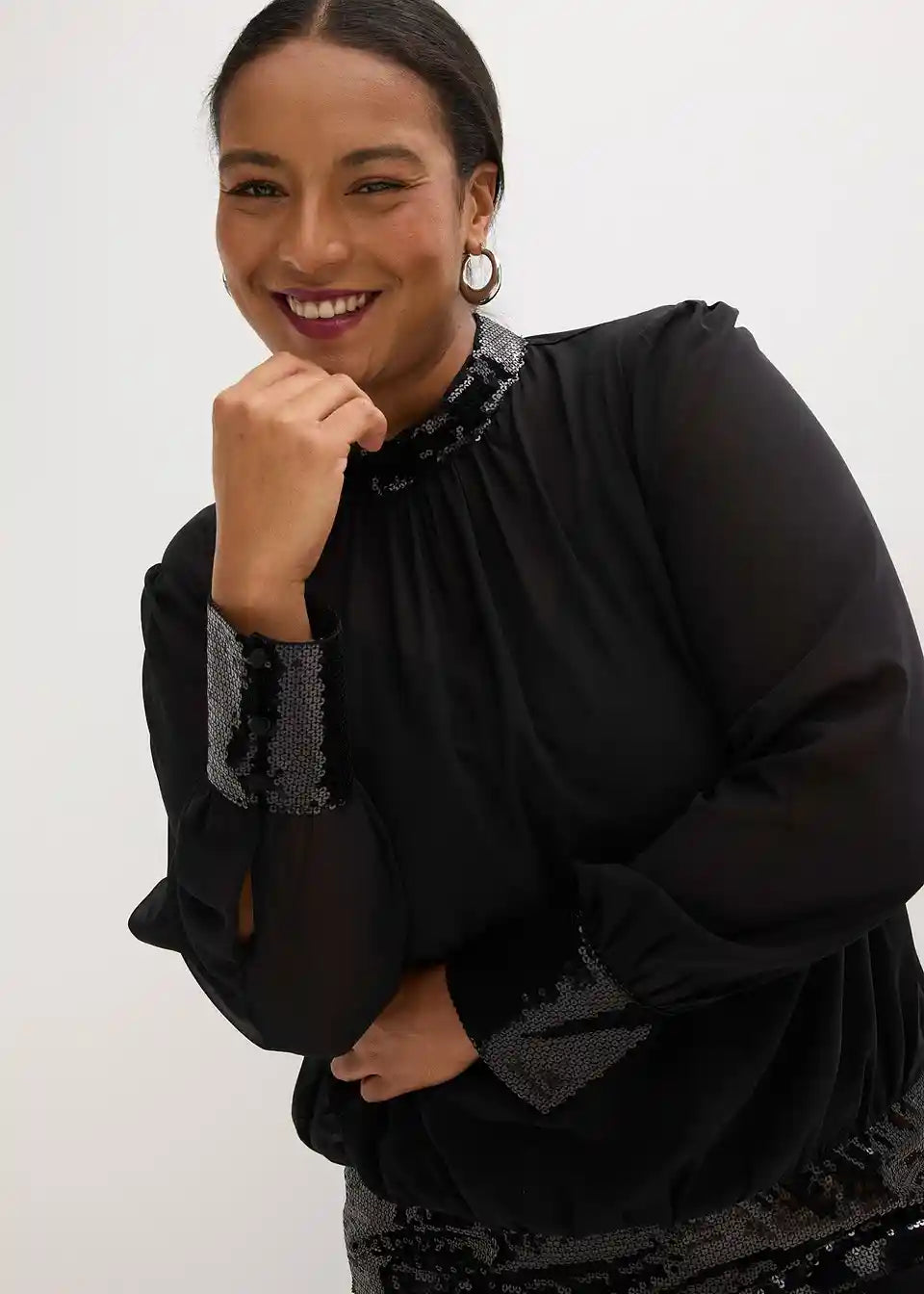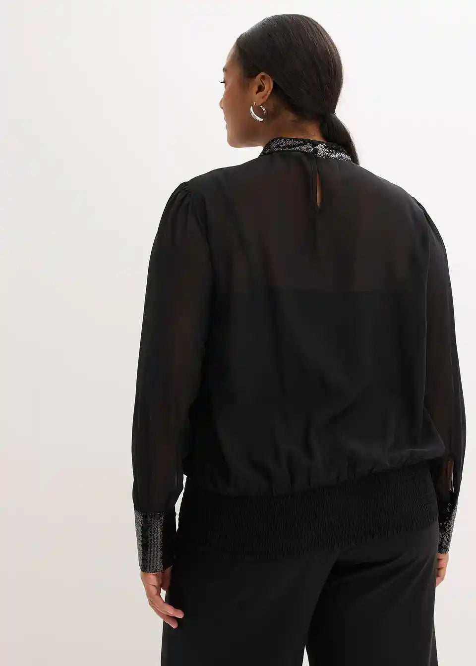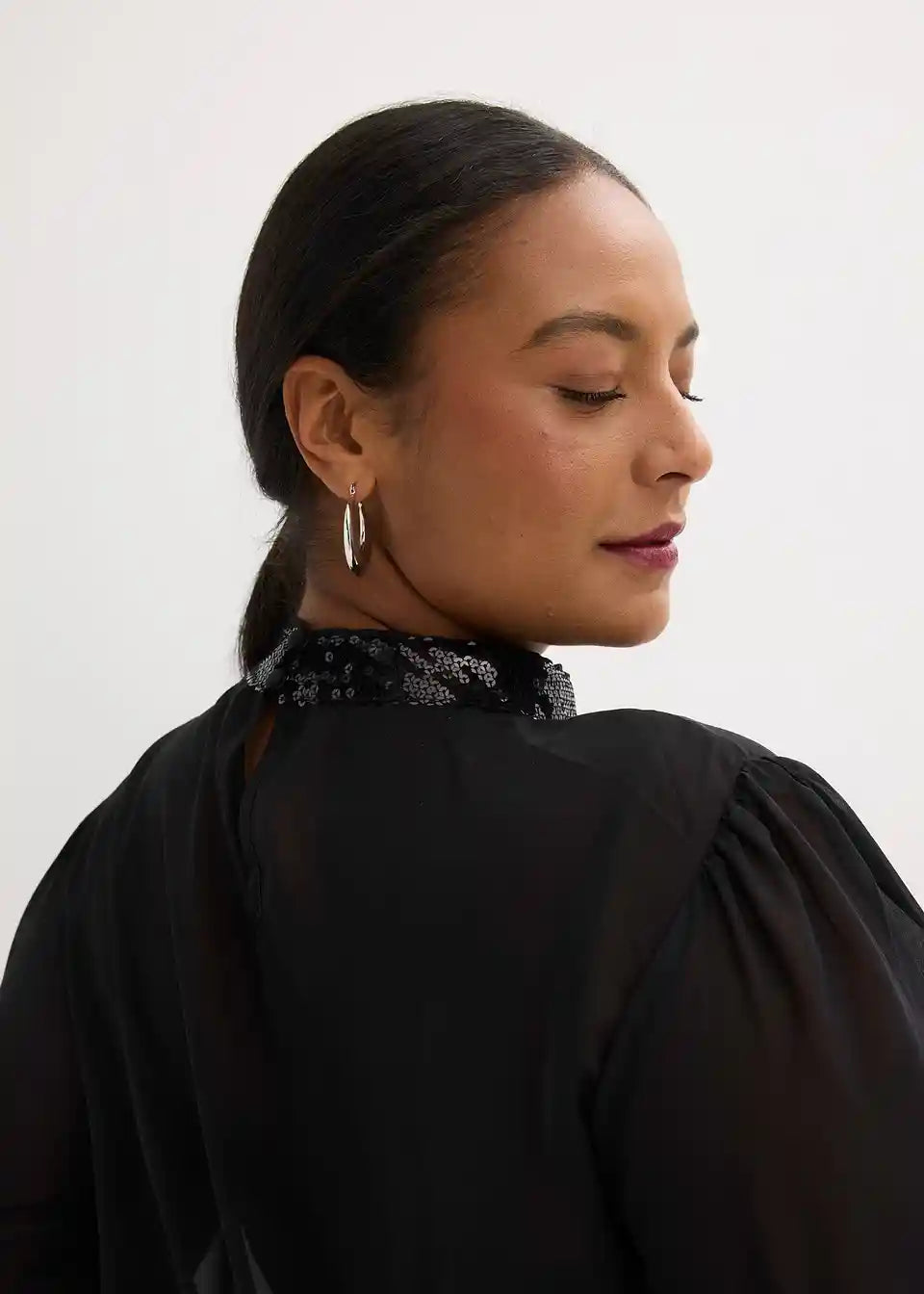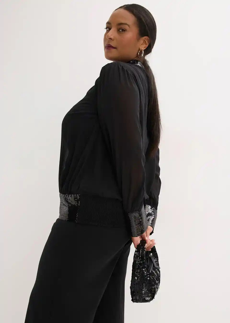 Modern und feminin: Bluse aus feinem Chiffon mit Futter und Pailletten-Einsatz