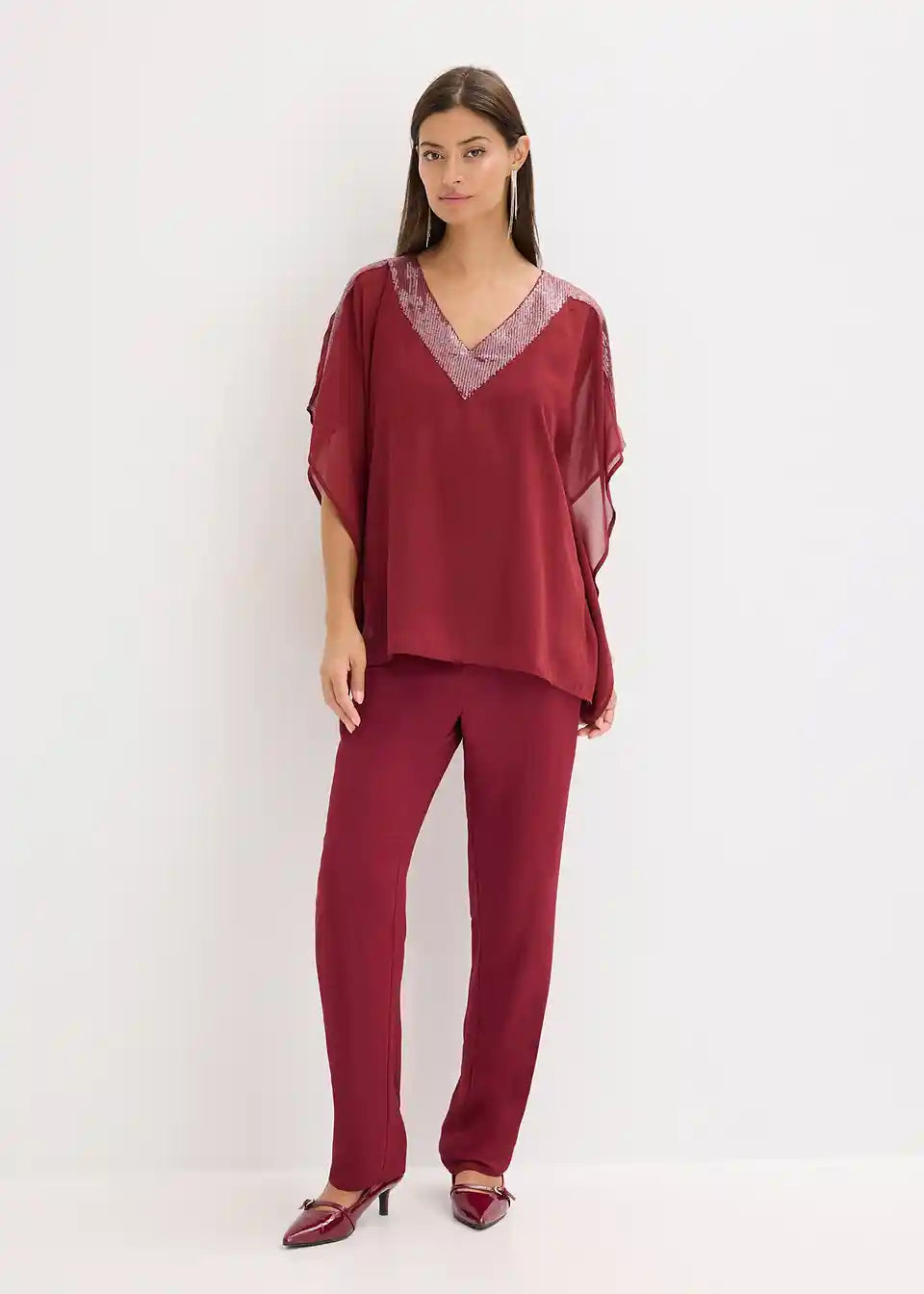 Oversize-Bluse aus feinem Chiffon mit Pailletten-Einsatz