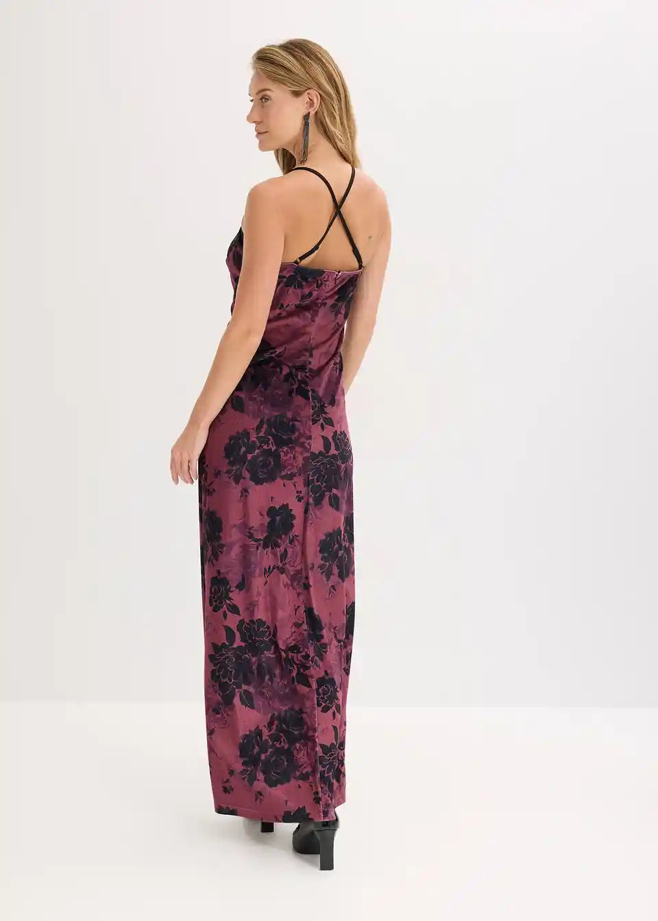 Modern und feminin: Trägerkleid aus glänzendem Samt in Maxi-Länge mit überkreuzten Trägern am Rücken