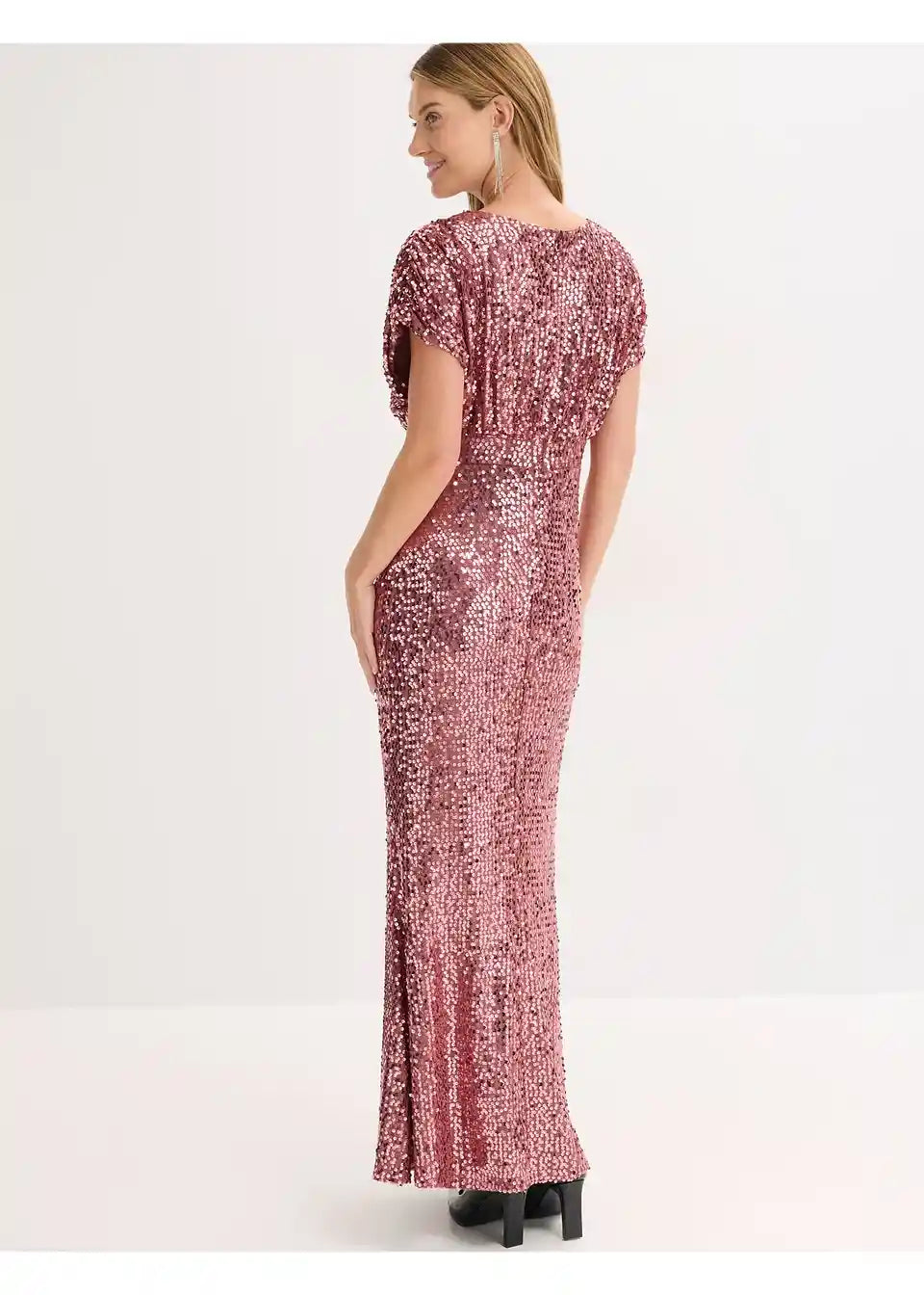 Modern und feminin: Abendkleid mit oversized Oberteil und All Over-Paillettenstickerei