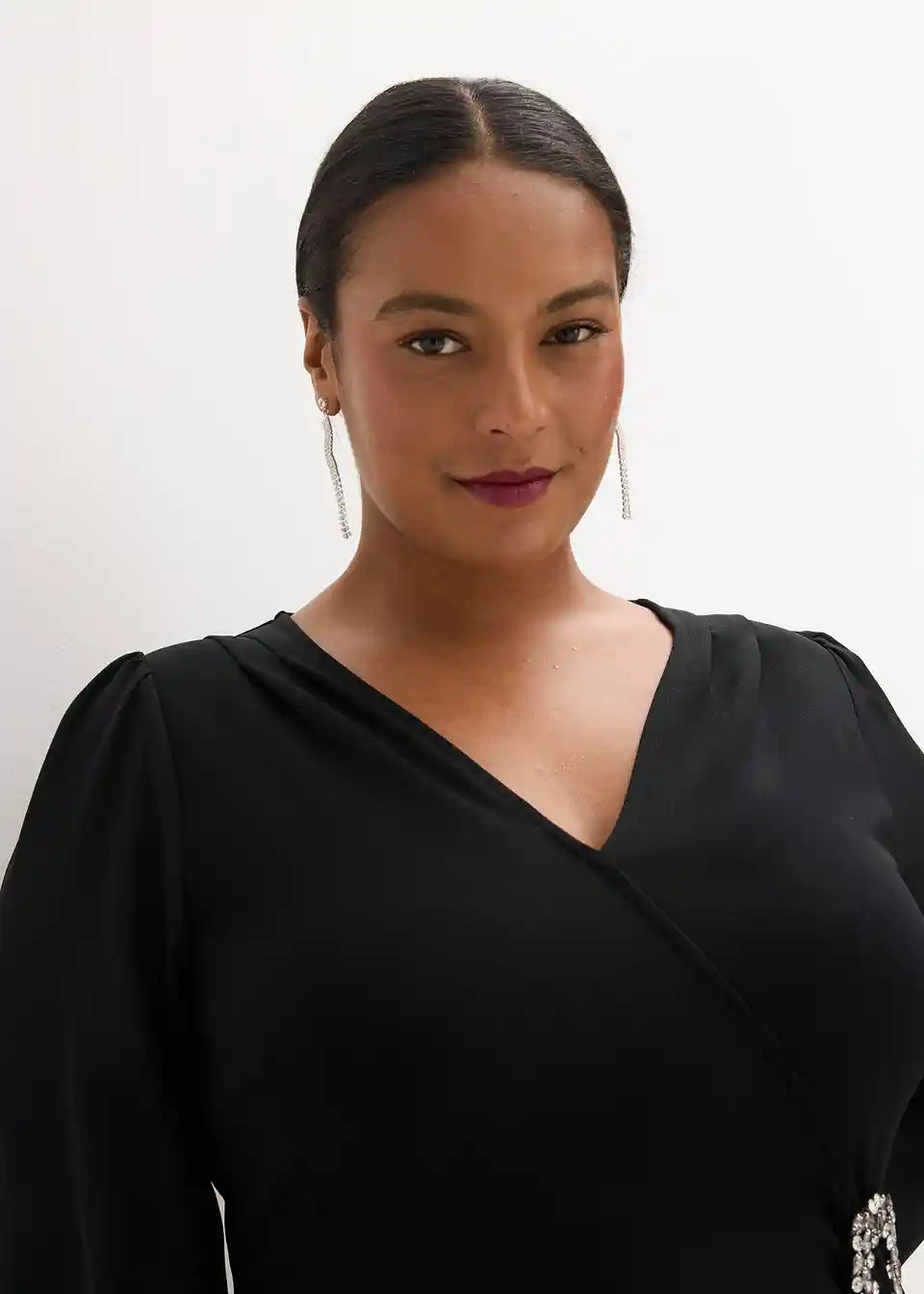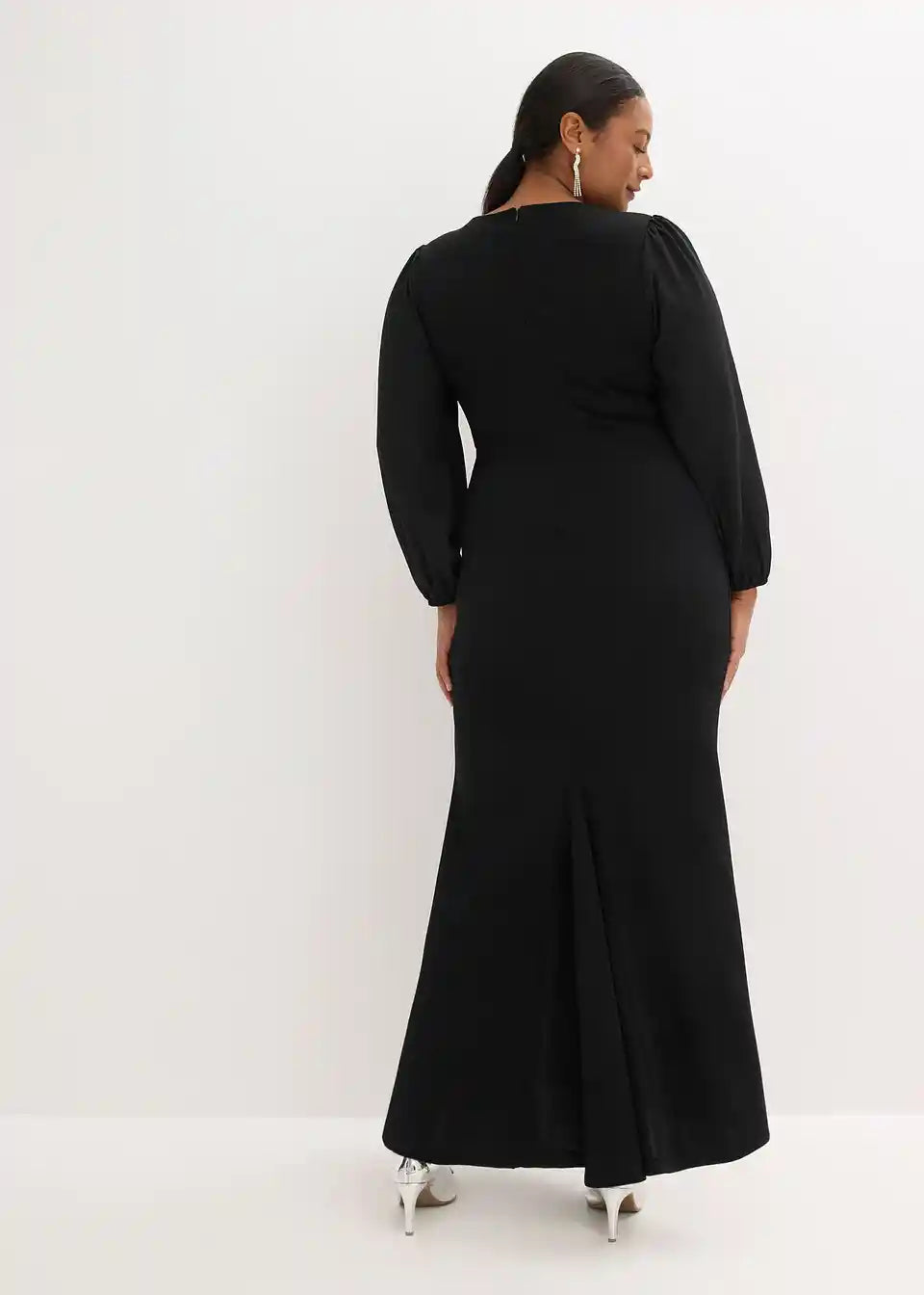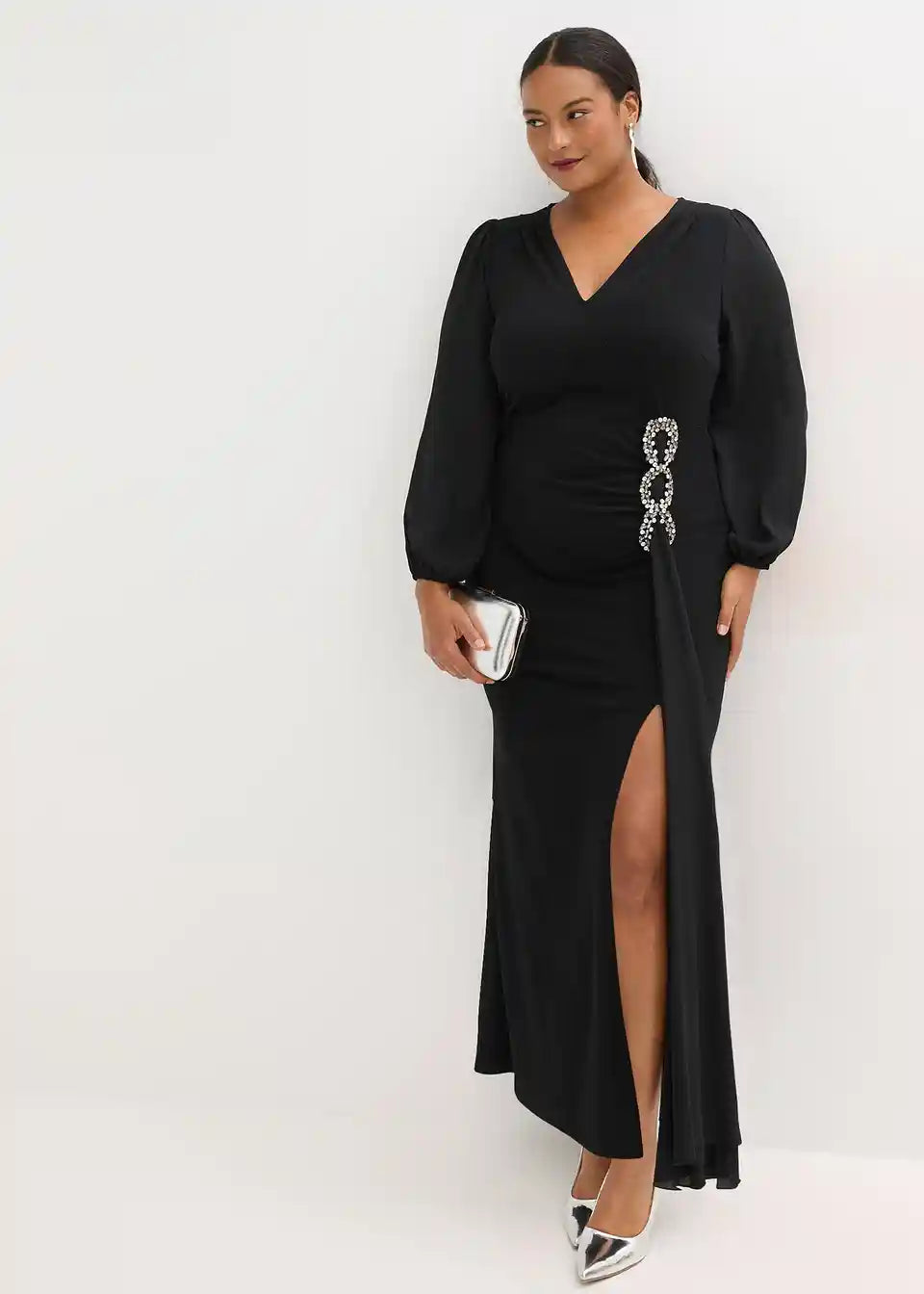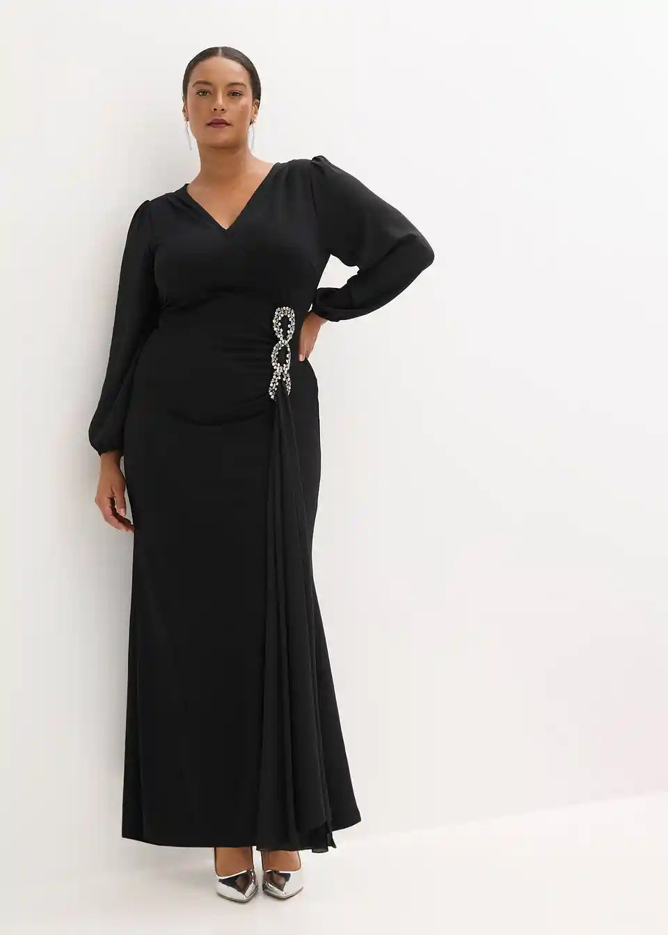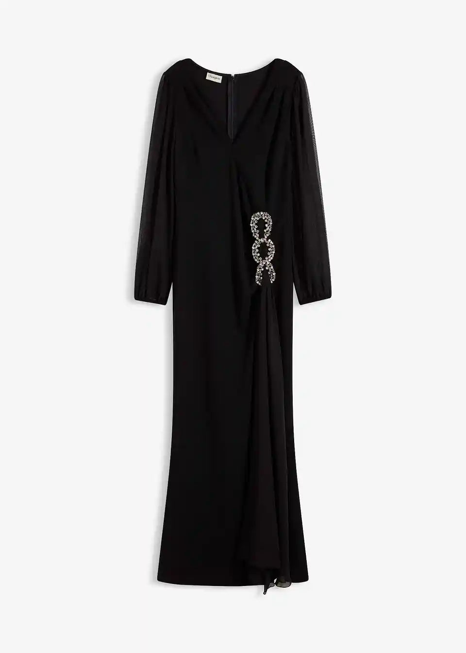 Modern und feminin: Abendkleid mit Ballon-Ärmel und Drapierung mit Strasstein-Applikation
