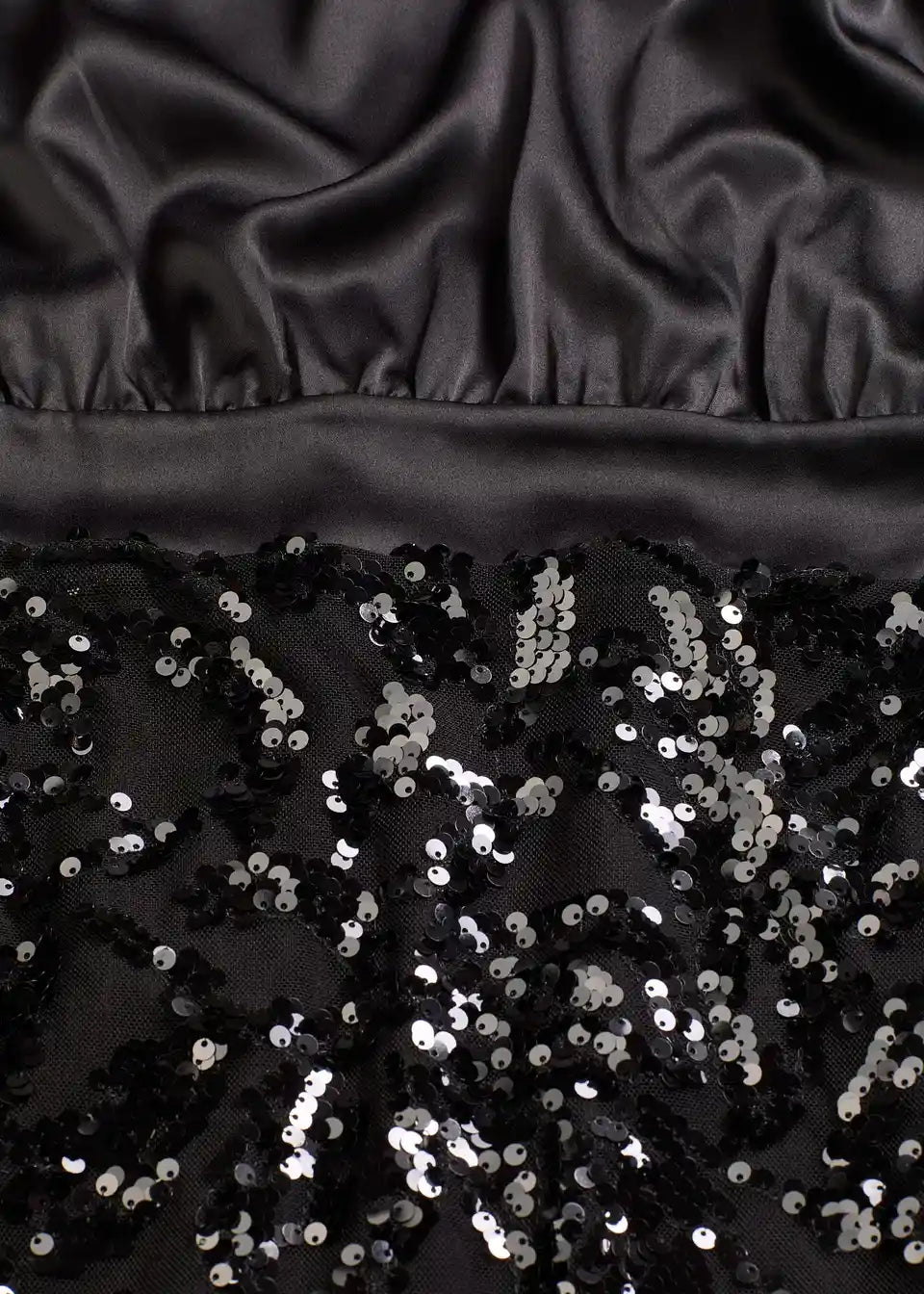 Modern und feminin: Minikleid mit Paillettenstickerei am Rock und glänzendem Oberteil.