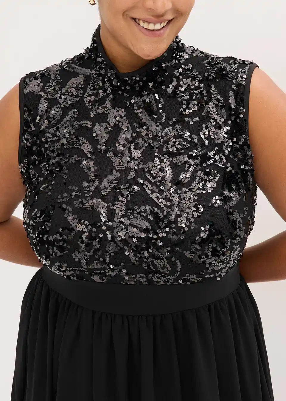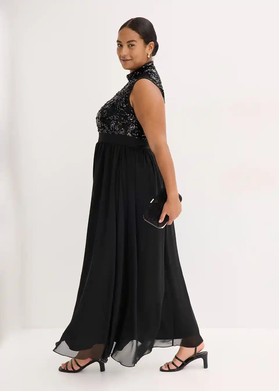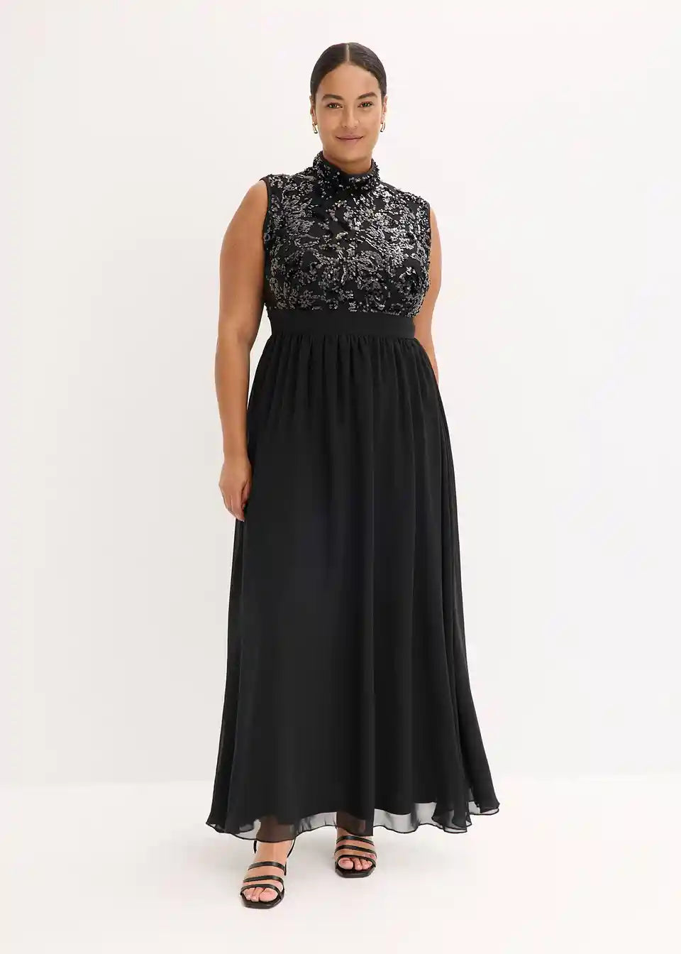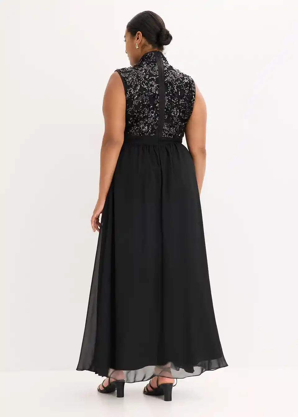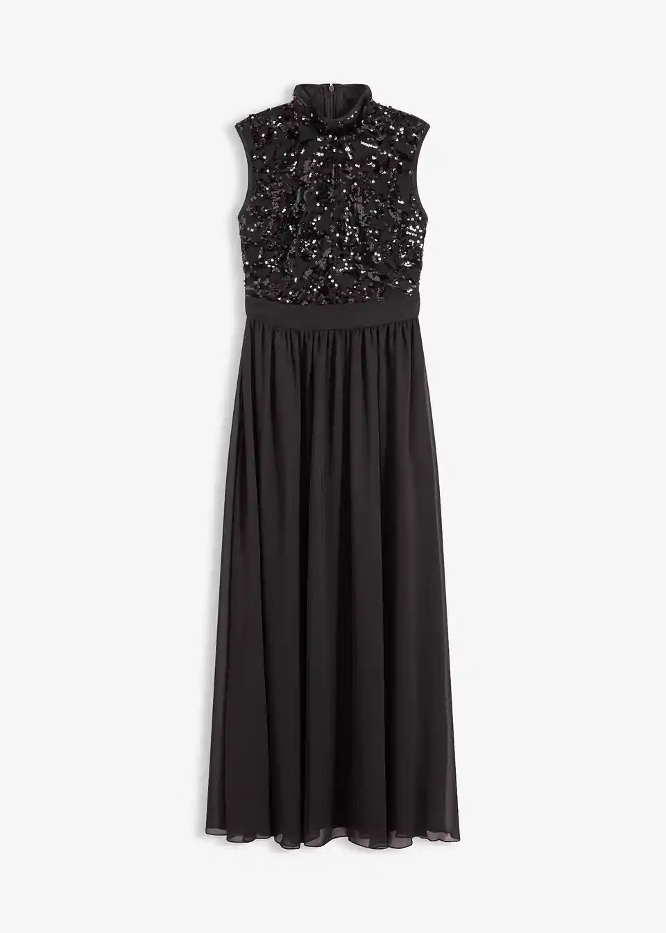 Modern und feminin: Abendkleid aus zartem Tüll mit Stehkragen und Paillettenstickerei im Oberteil